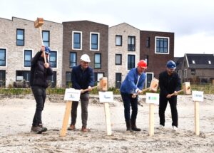 Met het slaan van de symbolische eerste palen luidde wethouder Ferwerda (o.a. Bouwen en Gebiedsontwikkeling) samen met de kopers en betrokkenen de bouw in. “Het is mooi te kunnen vaststellen dat ook bij dit prachtige project gezorgd wordt voor doorstroming van bewoners in het Westland.”