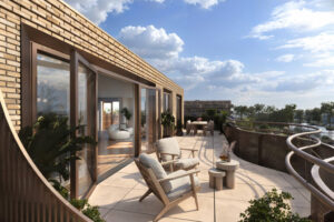 Kopers hebben de keuze uit één- en tweeslaapkamerappartementen, allemaal met toegang tot een ruime fietsenstalling.