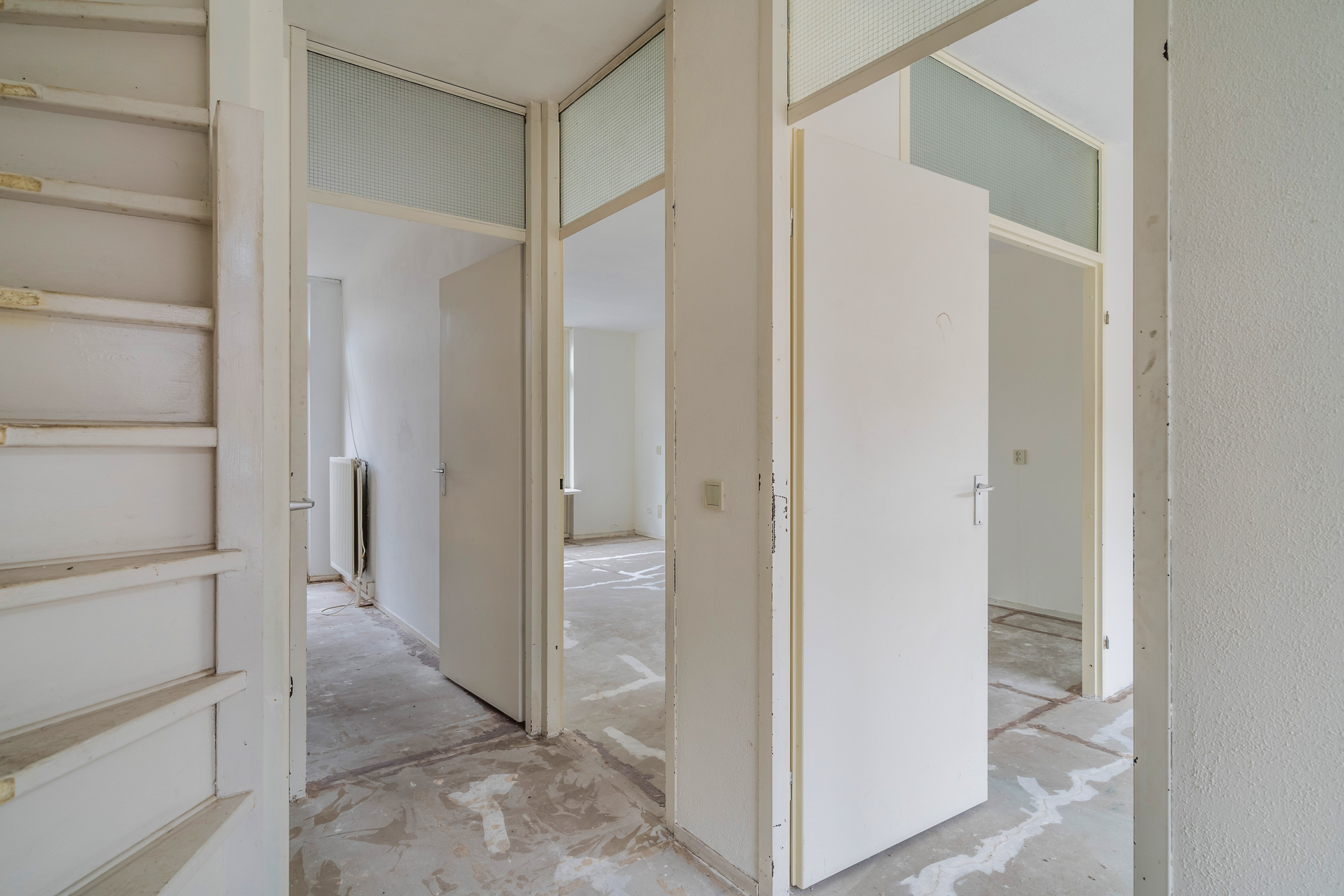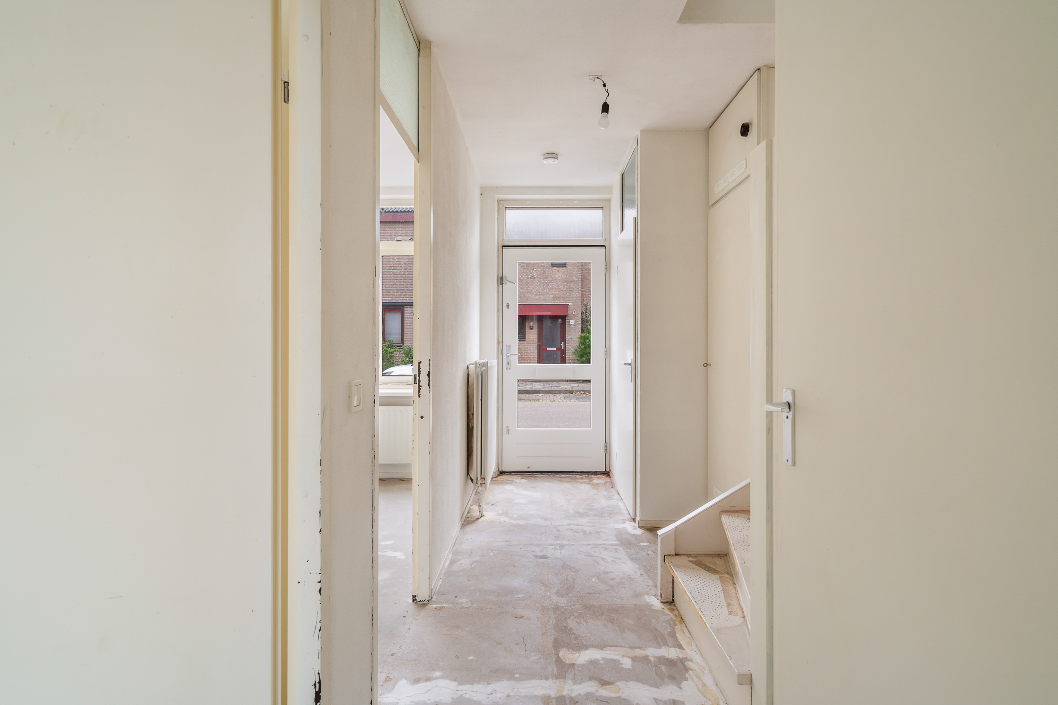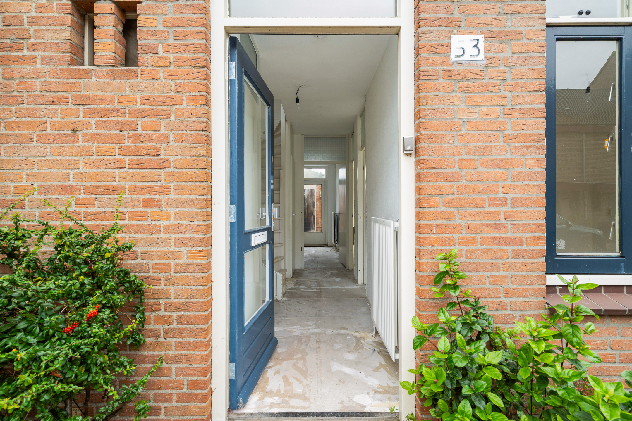 - Entree; Ruime hal met meterkast, toilet met fonteintje, trapkast en trap naar 1e verdieping;