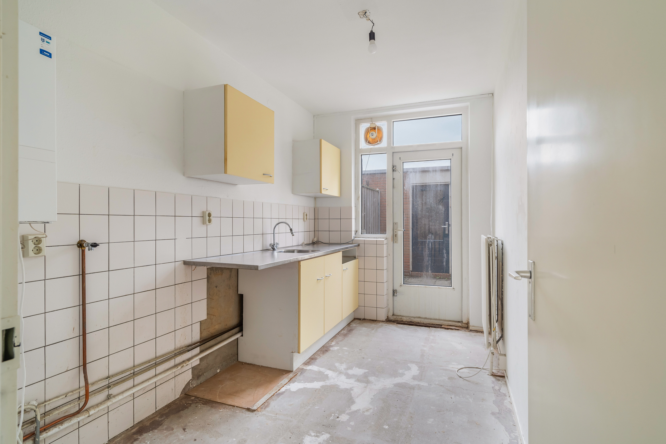 - Dichte keuken (ca. 3,83 x 2,10 m) met opstelplaats C.V.-ketel en deur naar de achtertuin;