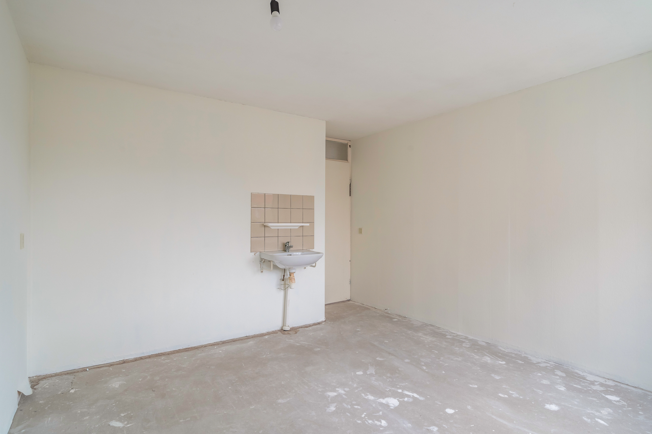 - Badkamer (ca. 2,14 x 2,54 m) met douche, toilet, wastafel en wasmachineaansluiting.