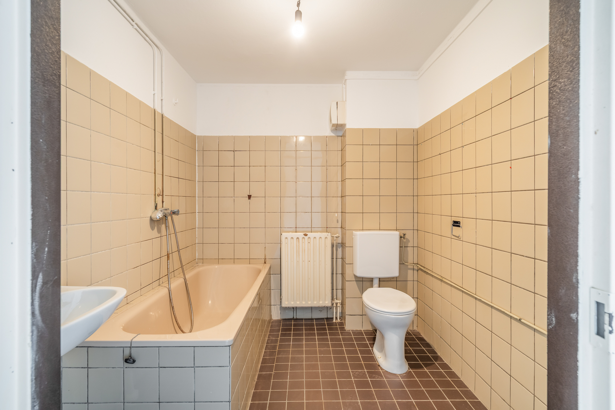 - Badkamervoorzieningen Ligbad, toilet, wastafel, wasmachineaansluiting