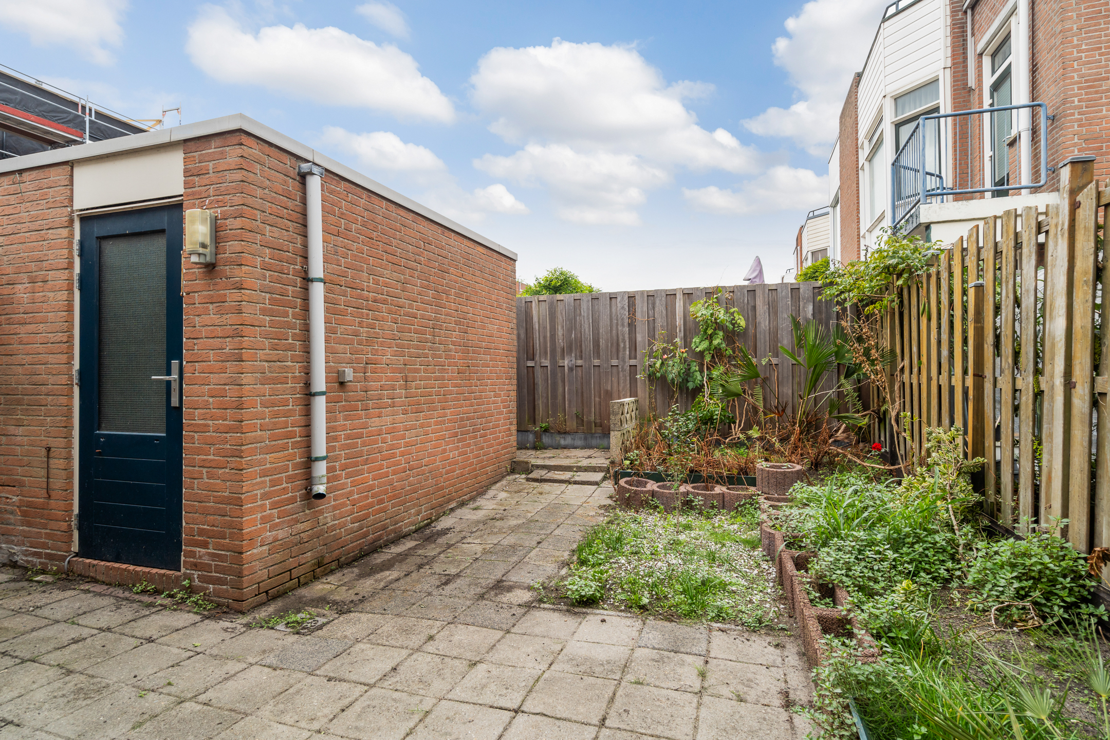 - Ruime achtertuin gelegen op het westen met stenen berging (ca. 3,43 x 1,92 m) en achterom;