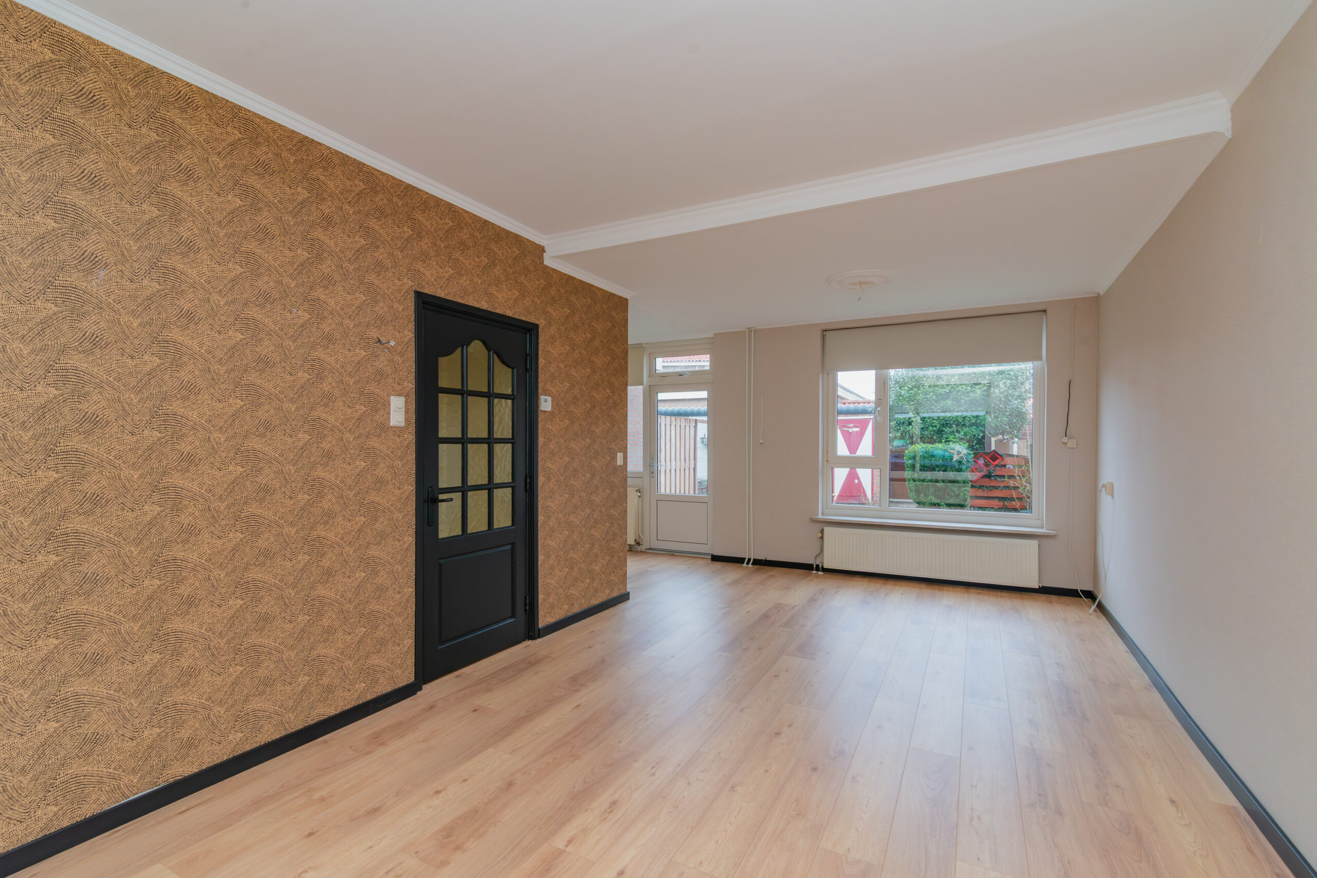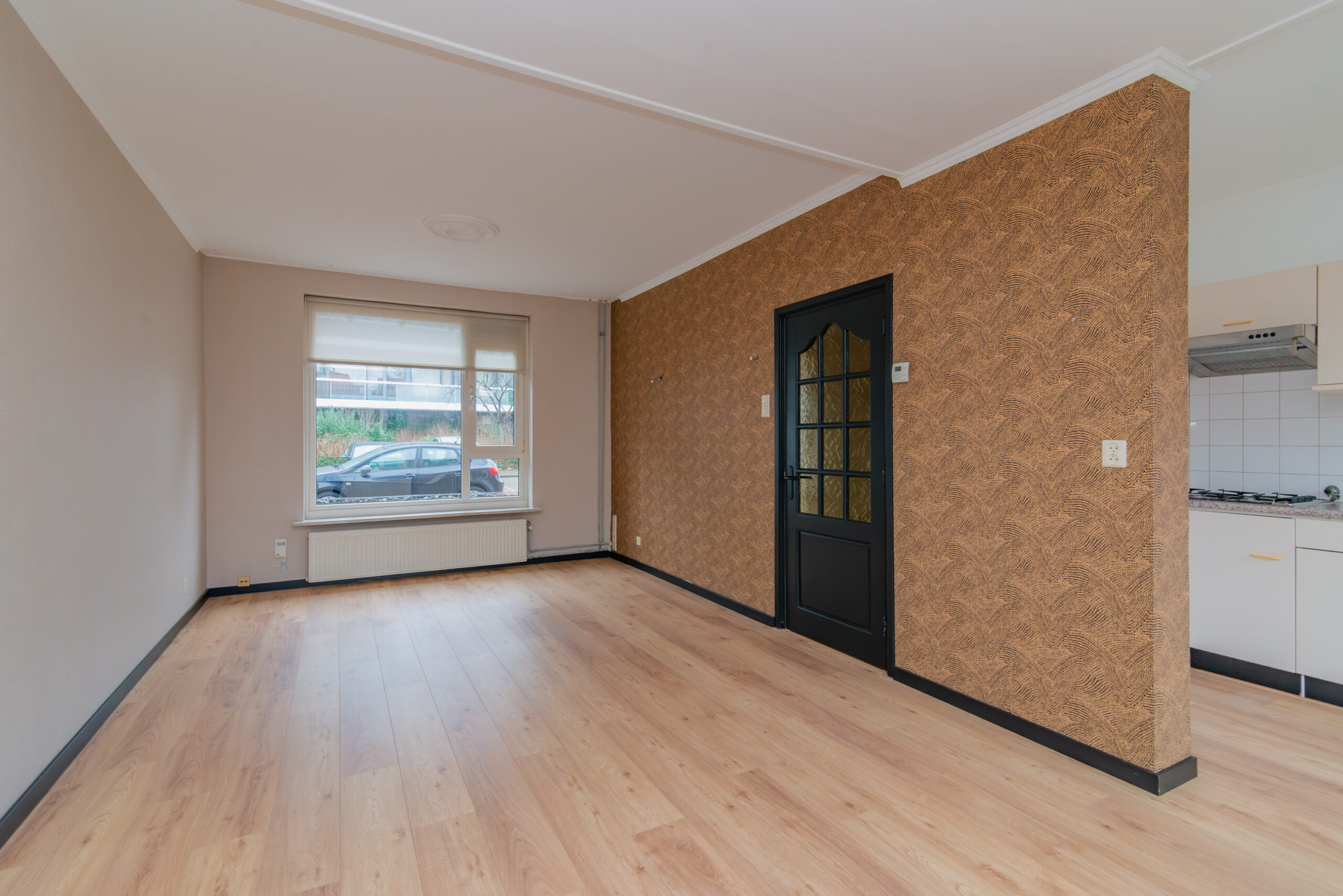 - Lichte woonkamer voorzien van laminaatvloer met grote raampartijen.