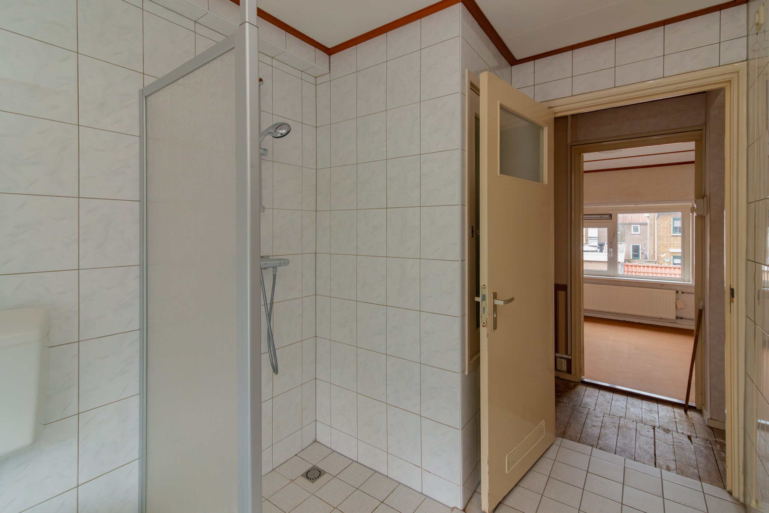 - Ruime geheel betegelde badkamer gelegen aan de voorzijde voorzien van douchehoek, 2e toilet, wastafel en raam.