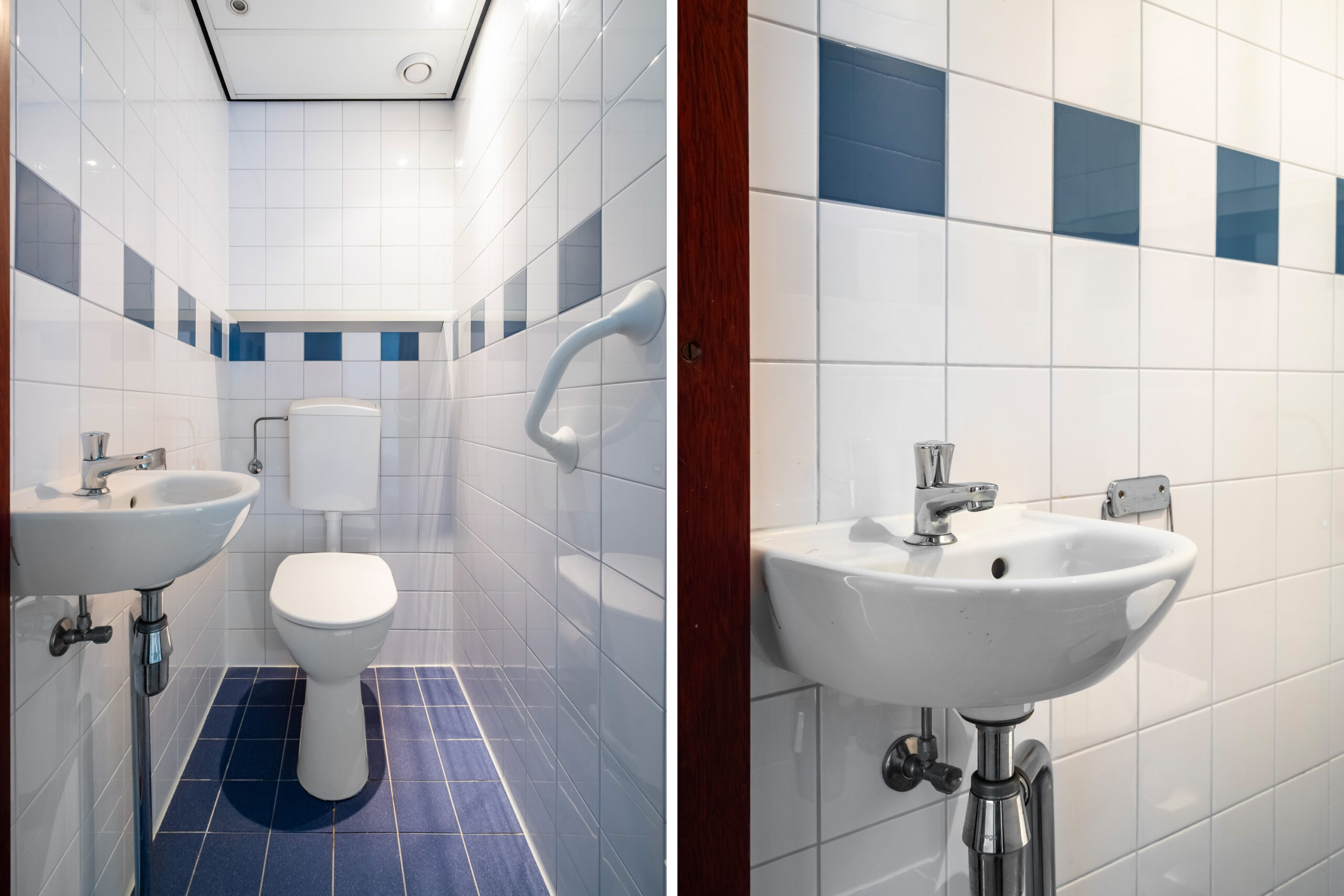 - Modern geheel betegeld separaat toilet met fonteintje.