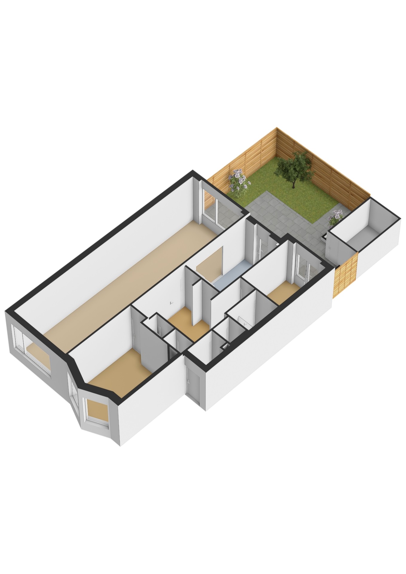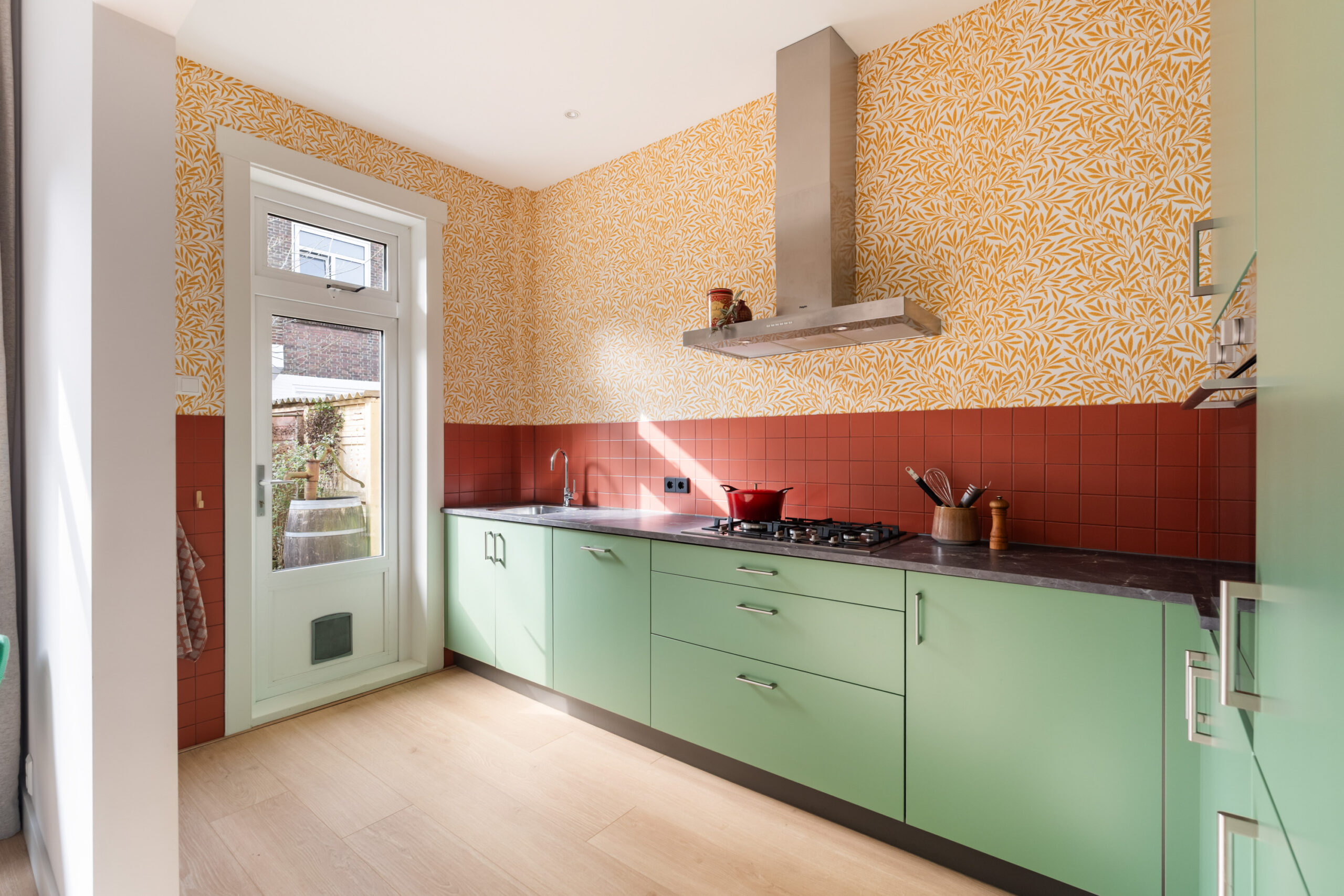 - Vanuit de keuken en de woonkamer is de zonnige en gezellige achtertuin toegankelijk;