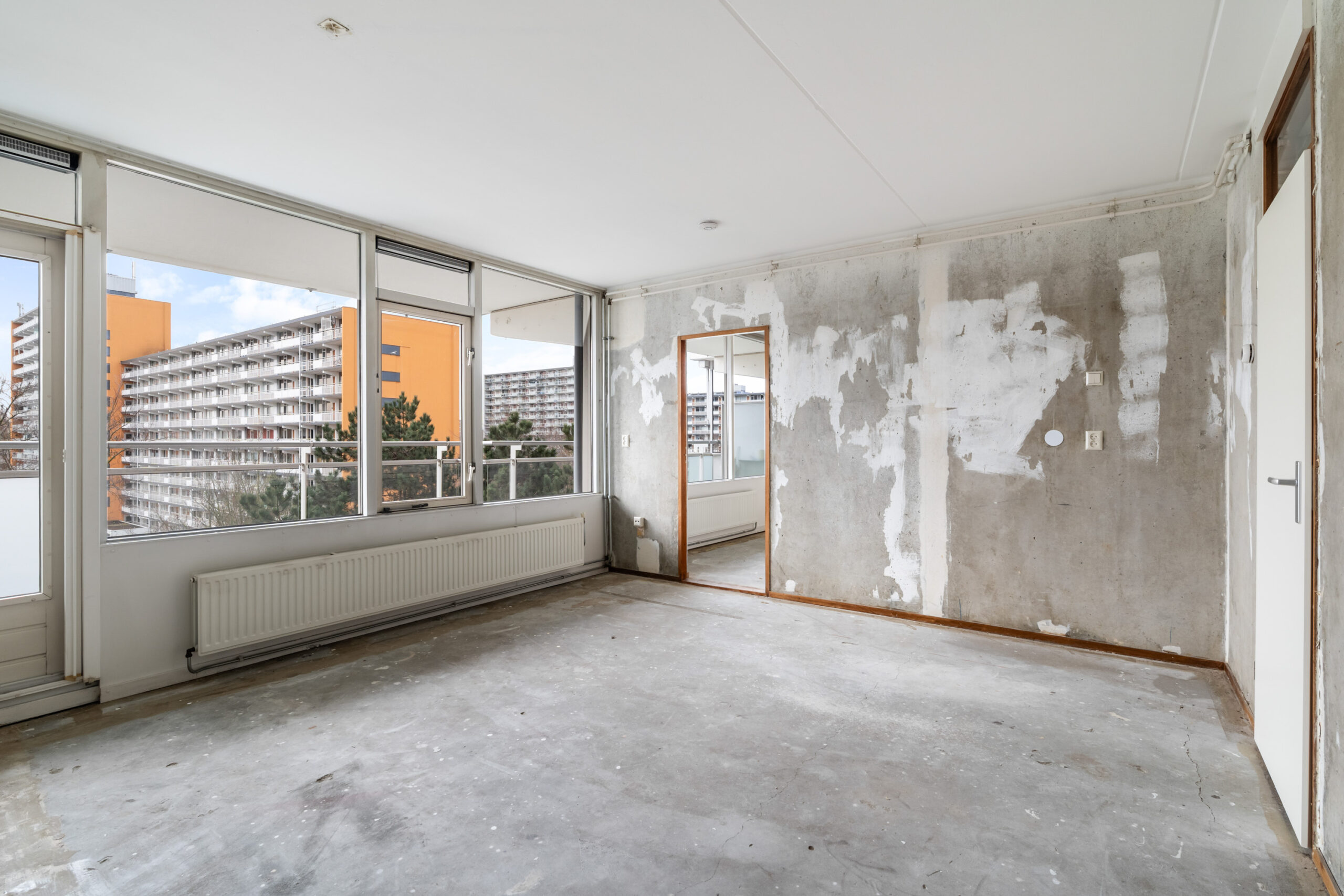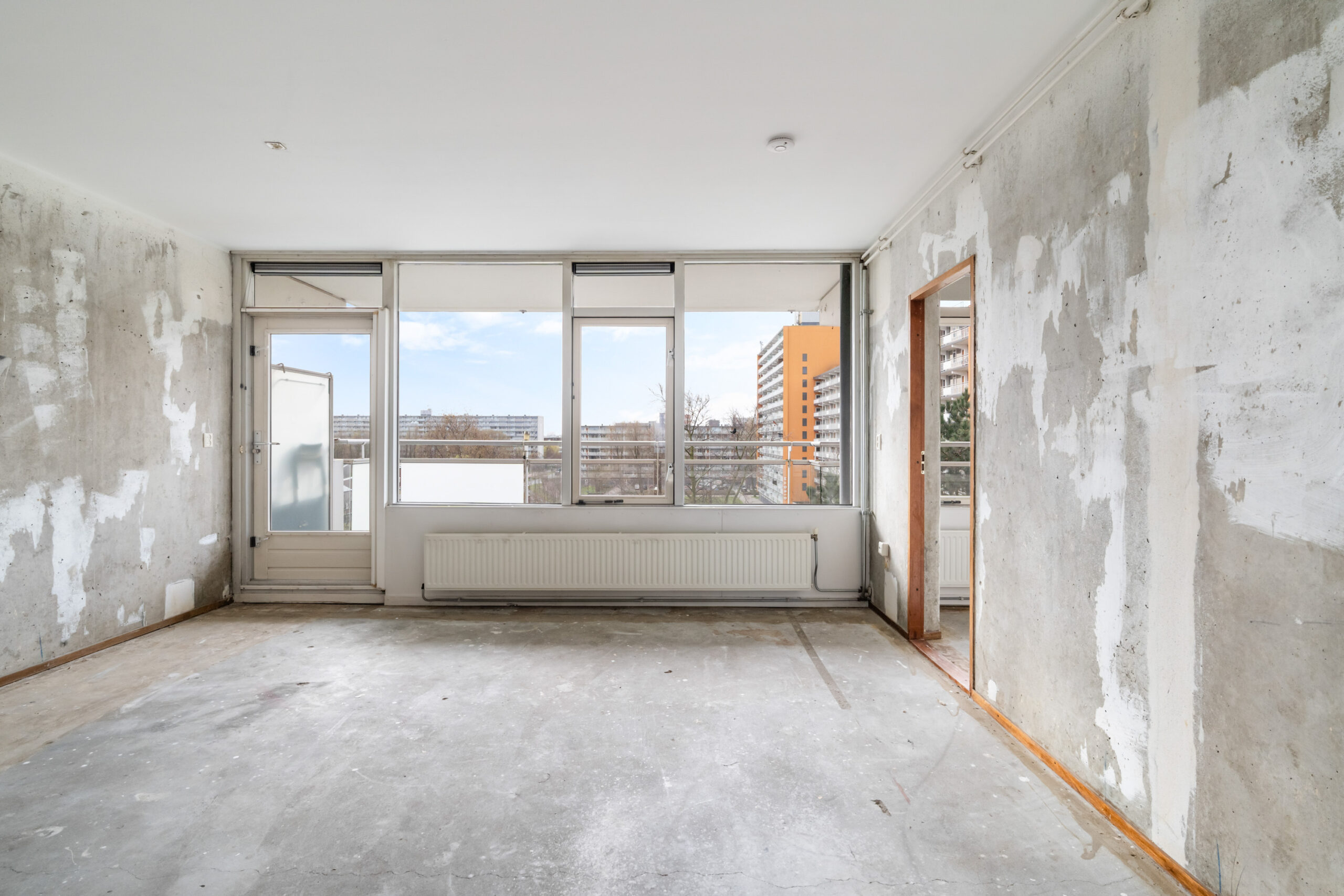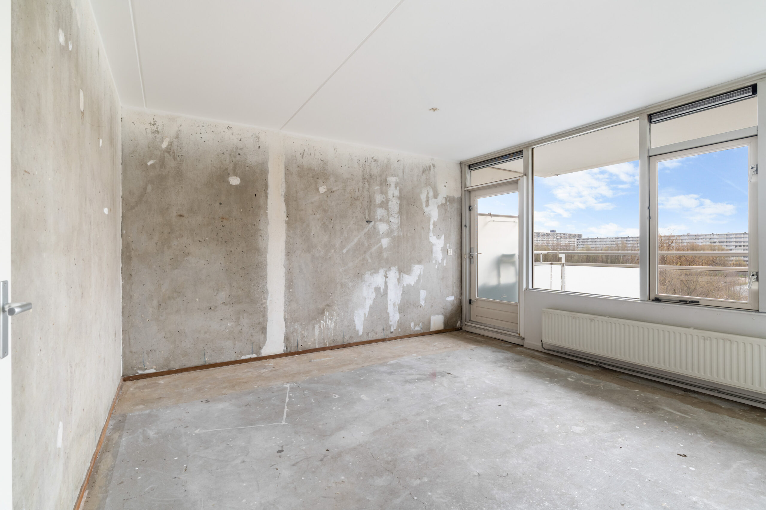 - Ruime en lichte woonkamer met toegang tot het zonnige balkon over de gehele breedte gelegen.