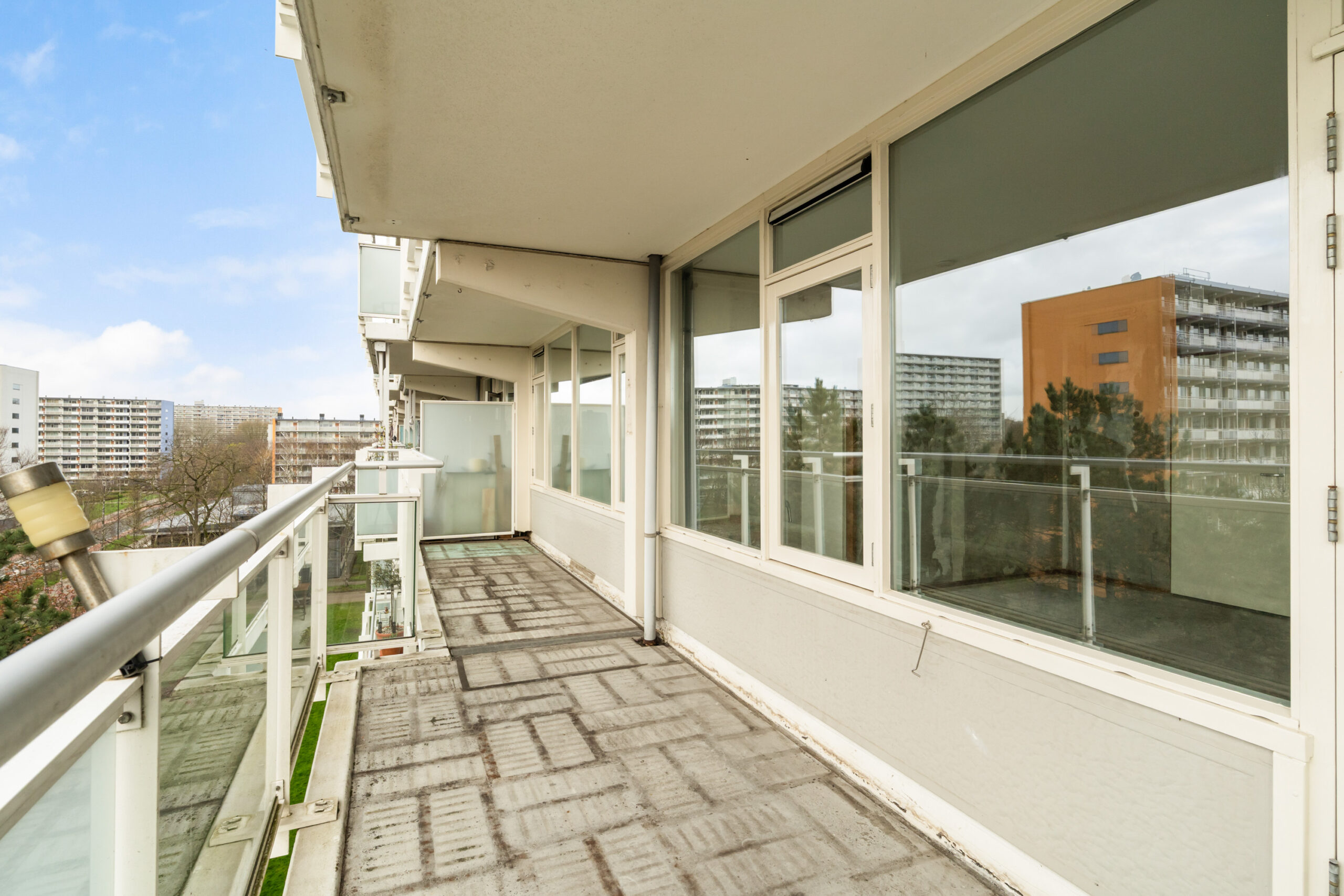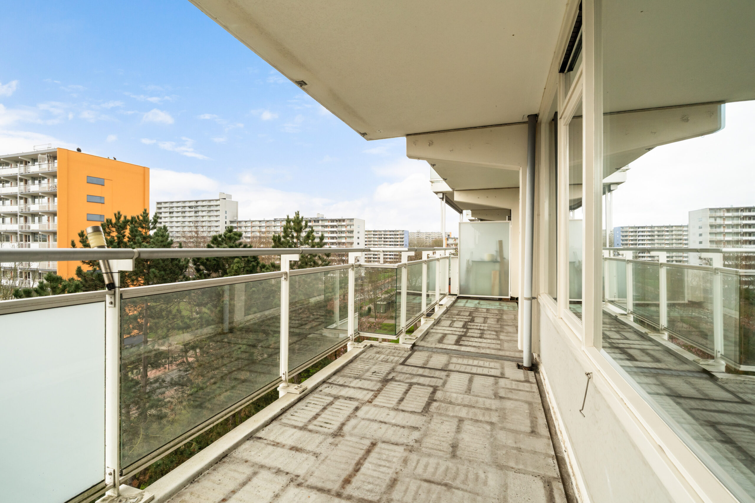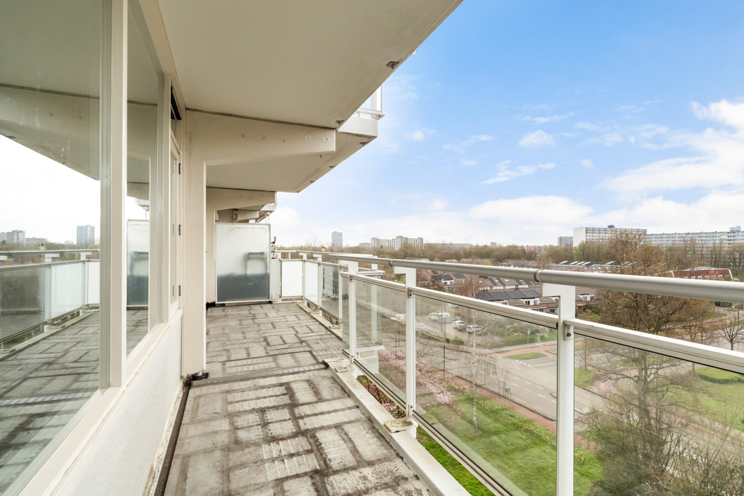 - Ruime en lichte woonkamer met toegang tot het zonnige balkon over de gehele breedte gelegen.