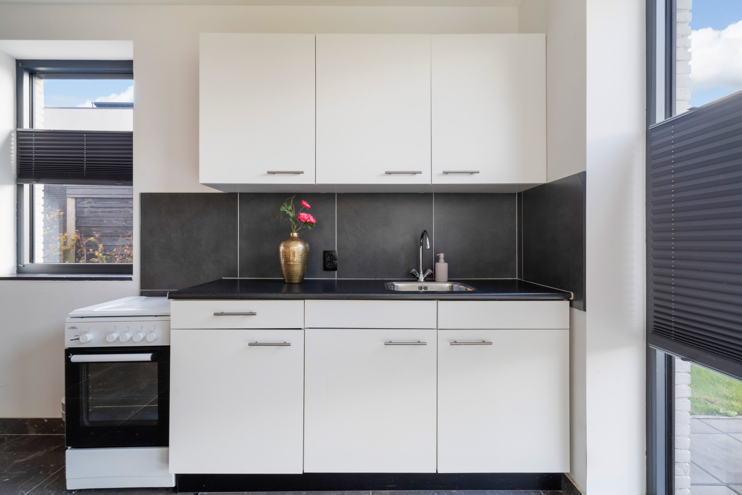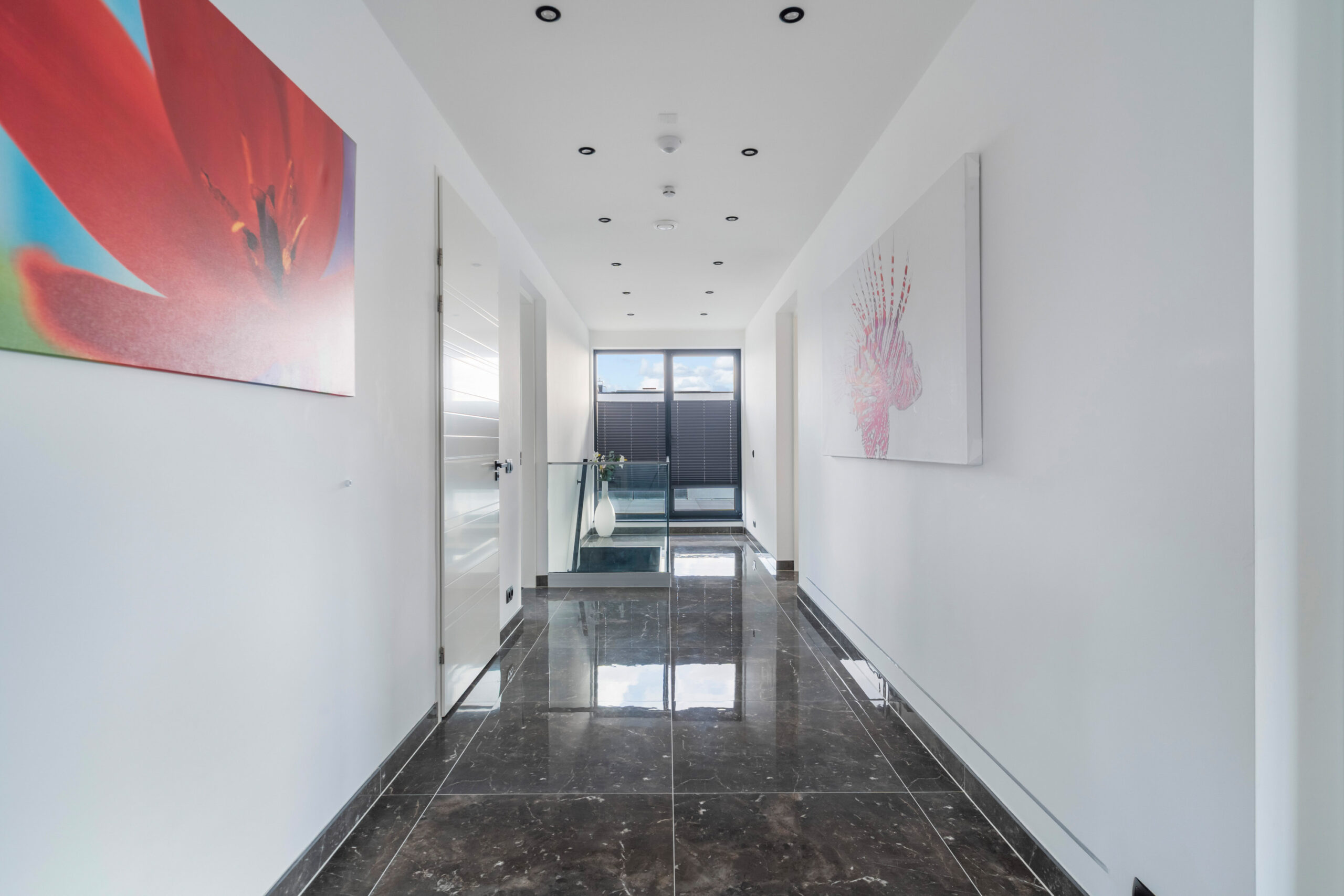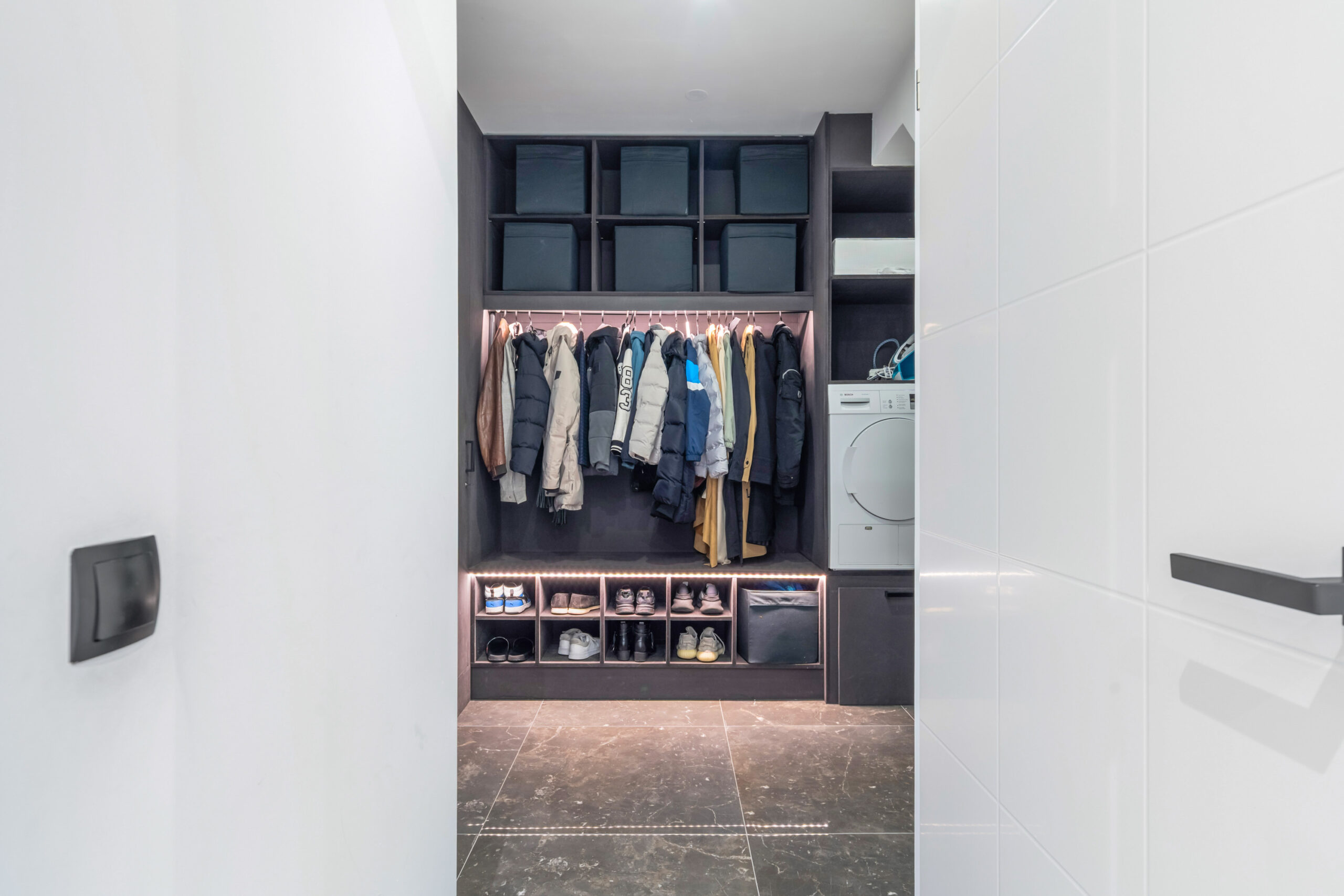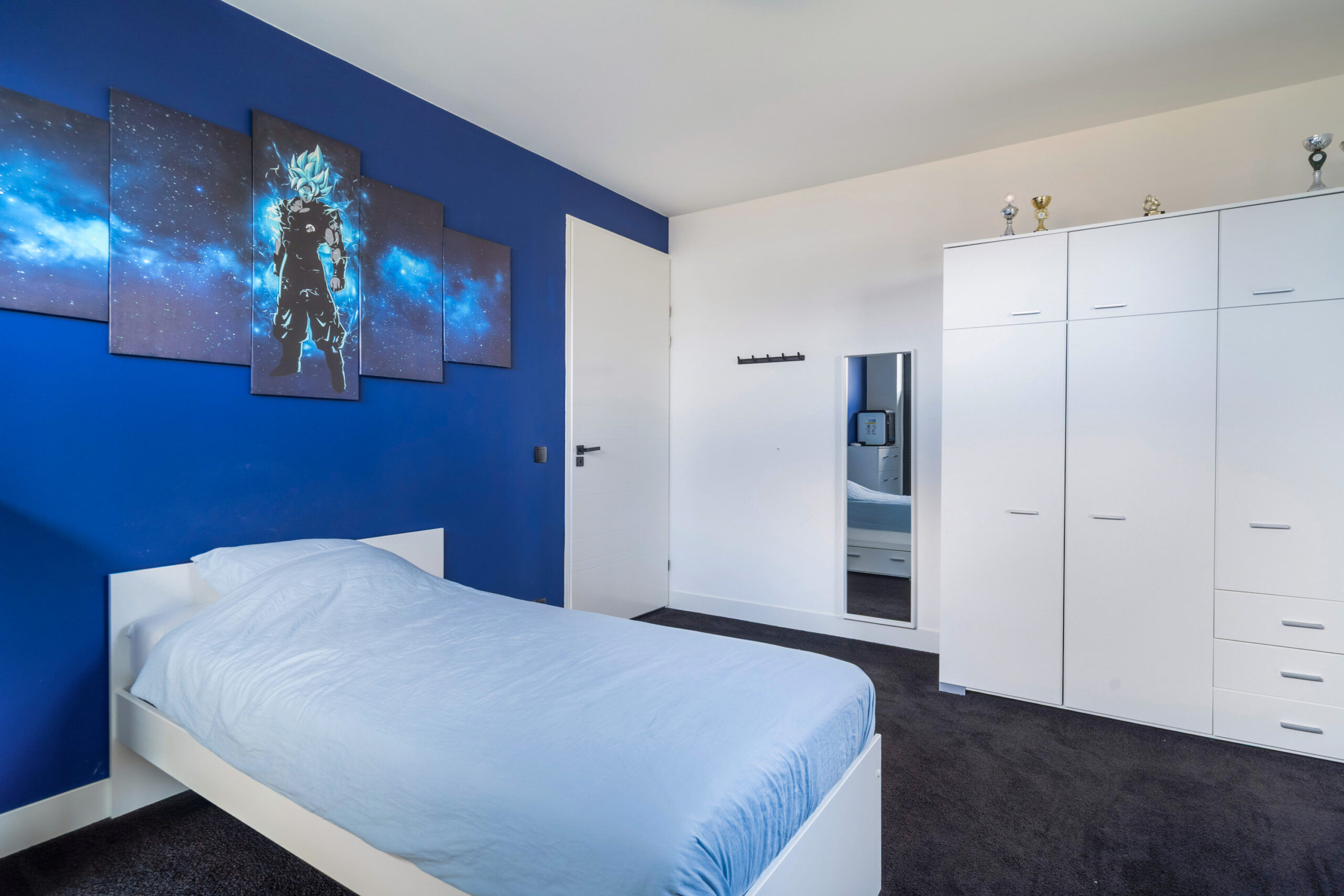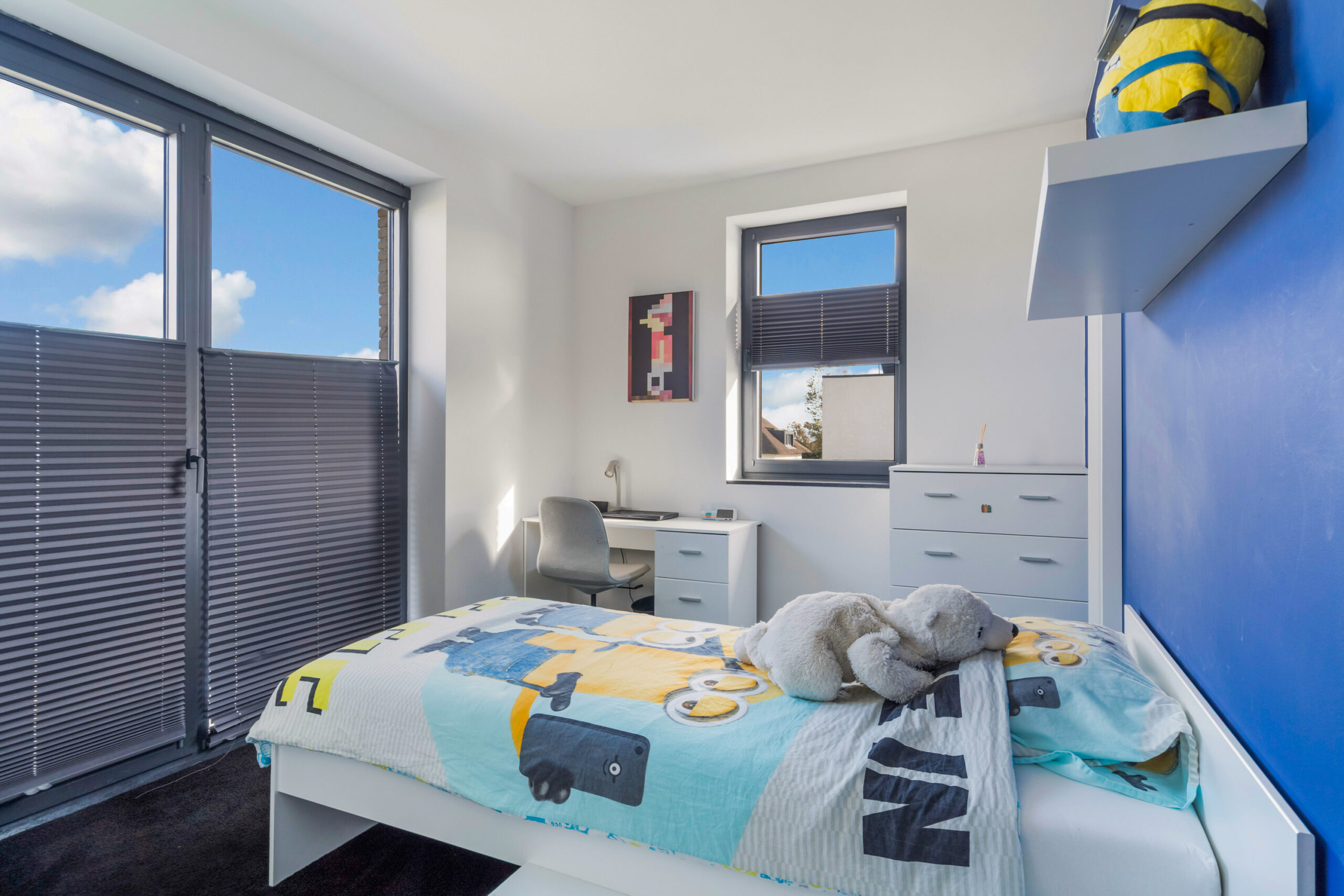 -Via de trap vanuit de hal bereikt u de slaapverdieping. Vanuit de hal (met vloerverwarming) is een heerlijk groot dakterras bereikbaar.