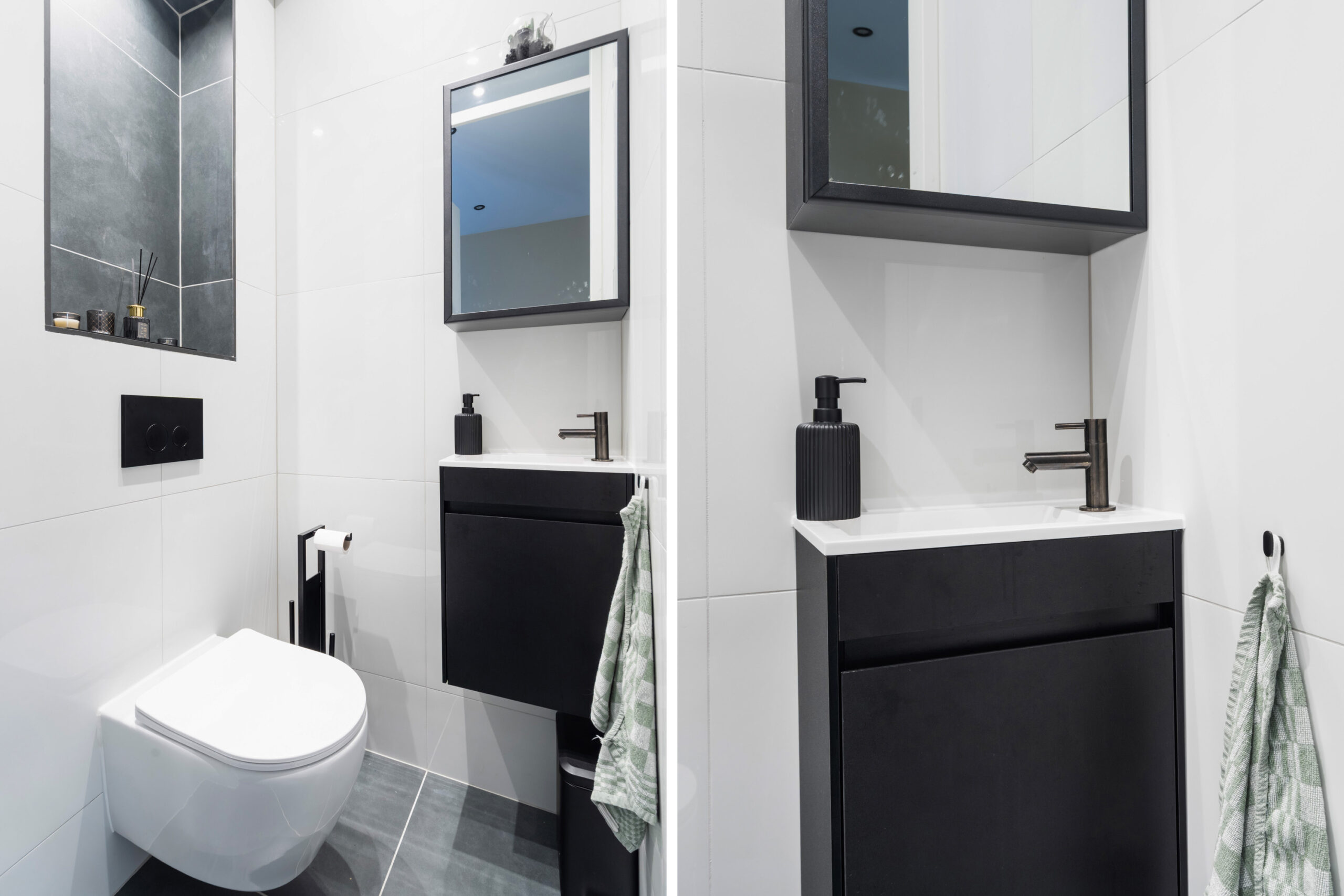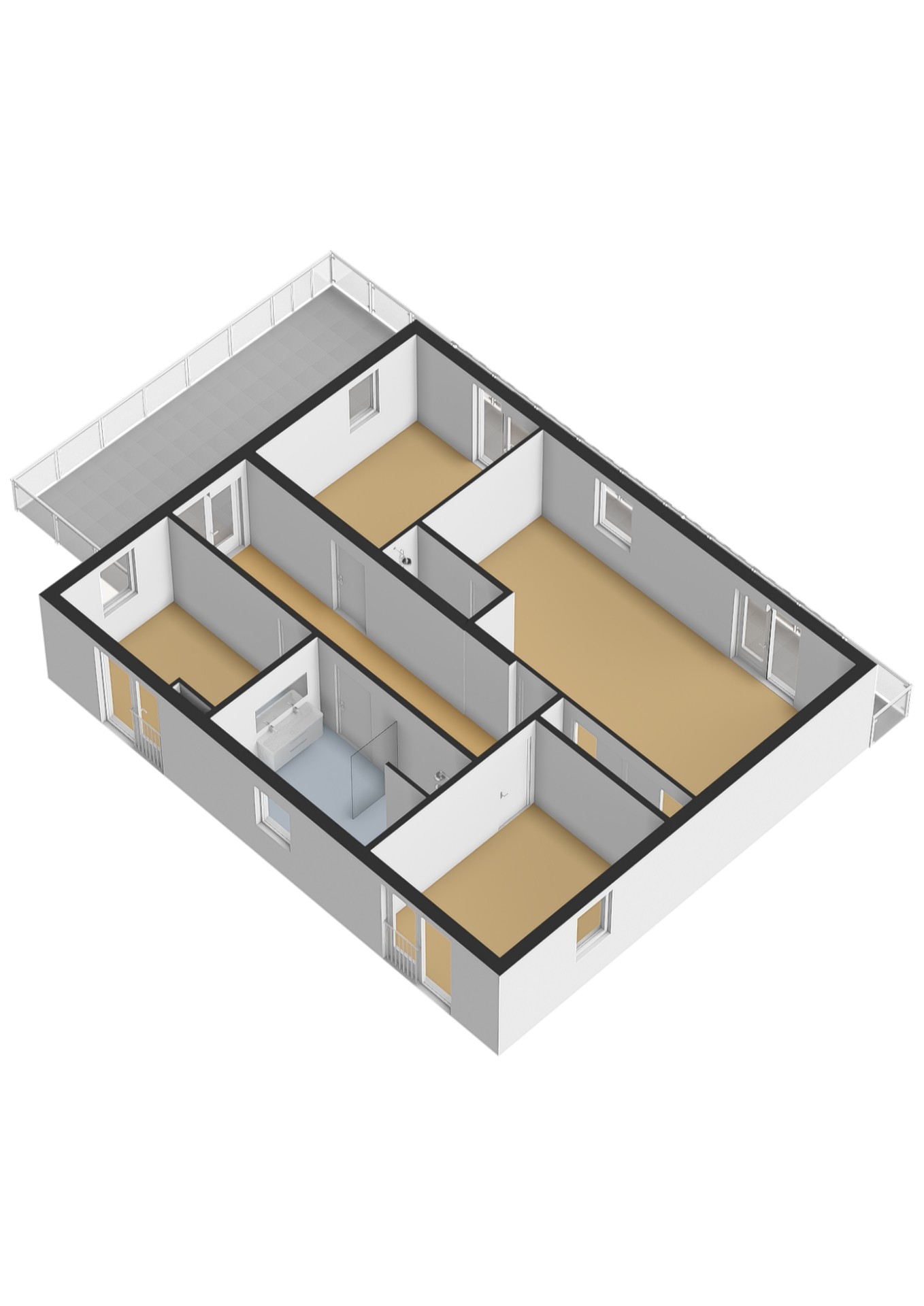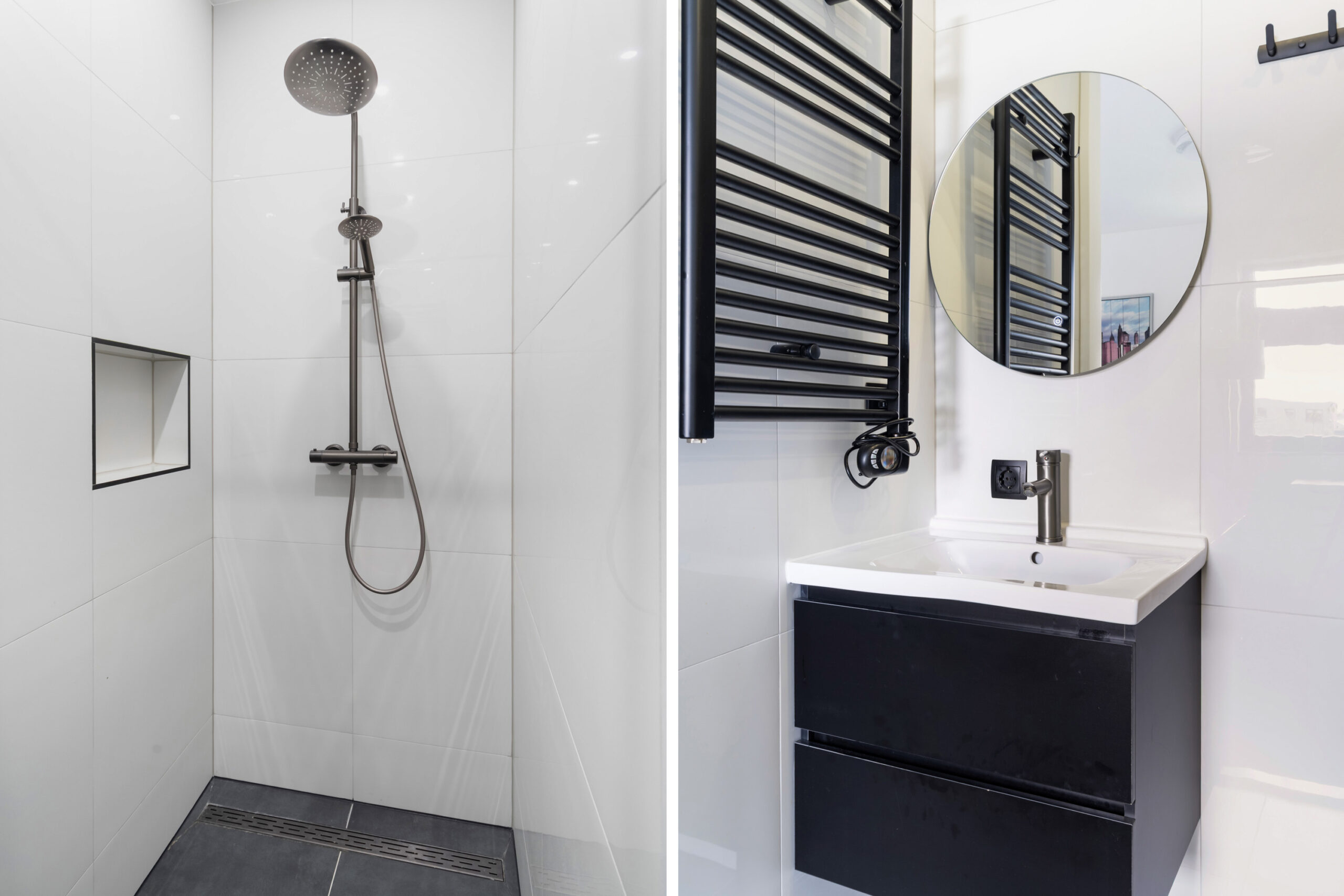 - Badkamervoorzieningen Ligbad, toilet, douche, dubbele wastafel, douche, wastafel, toilet, douche