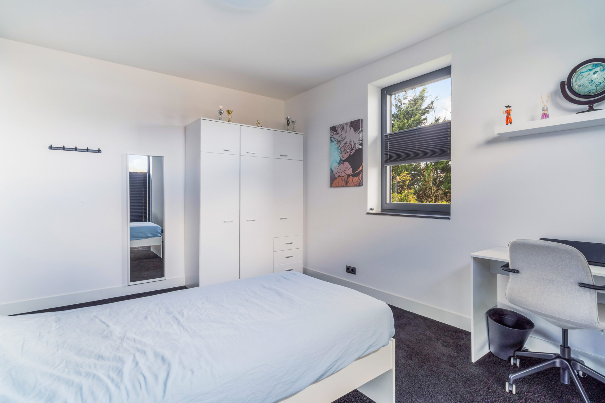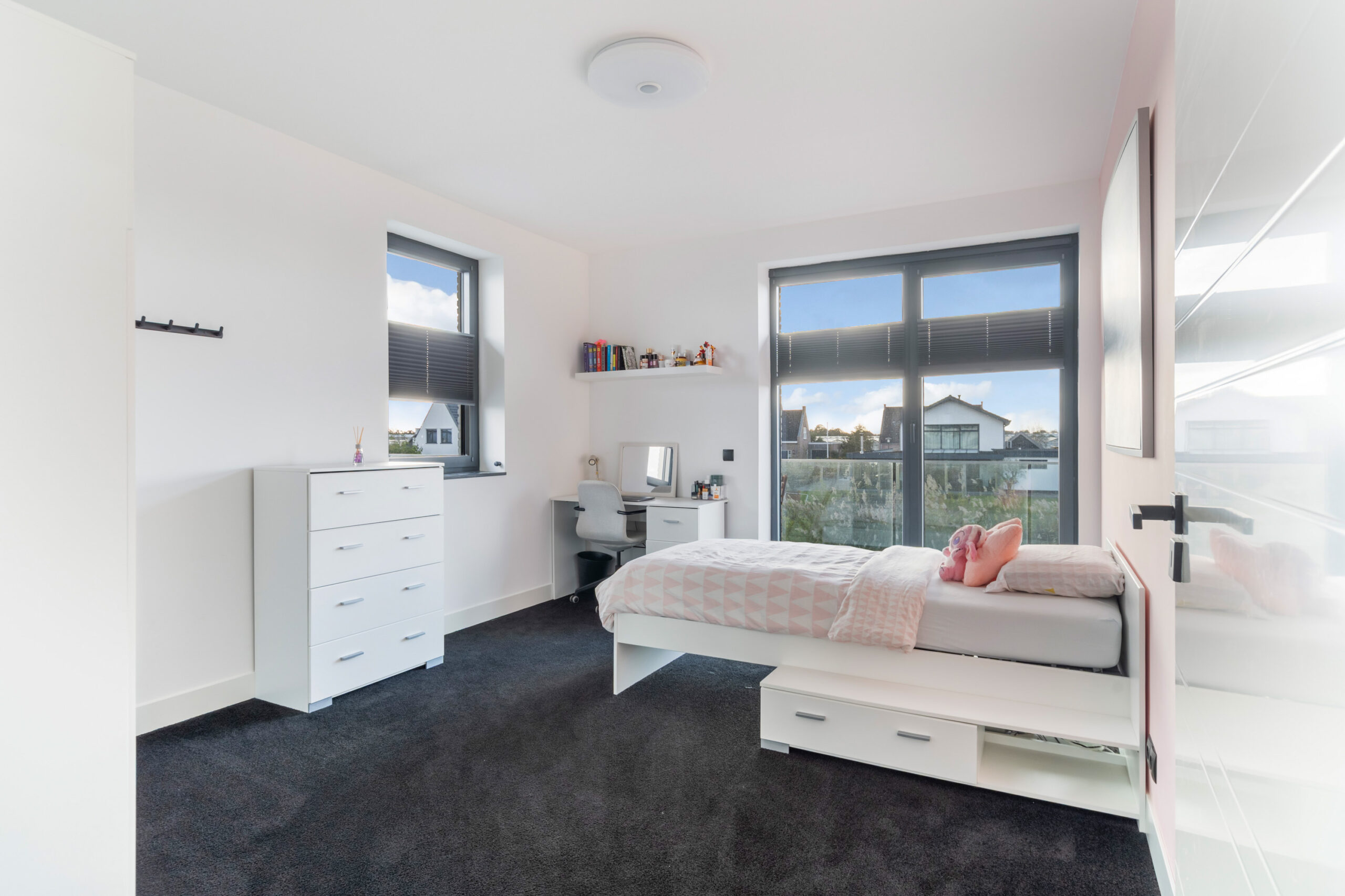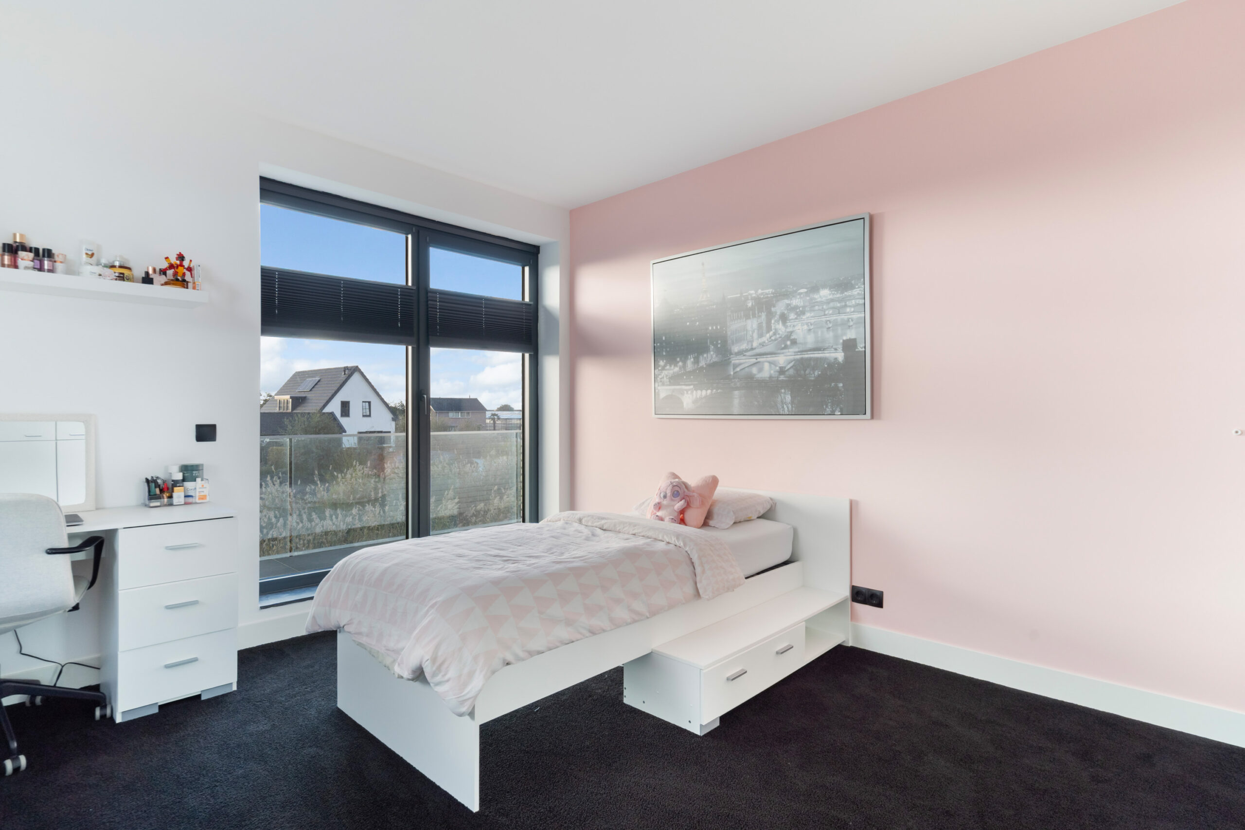 -Hier zijn een viertal slaapkamers aanwezig met vloerbedekking. De ouderslaapkamer is voorzien van eigen doucheruimte met wastafel. Deze kan ook gesplitst worden in twee kamers. Twee kamers zijn voorzien van dakterras.