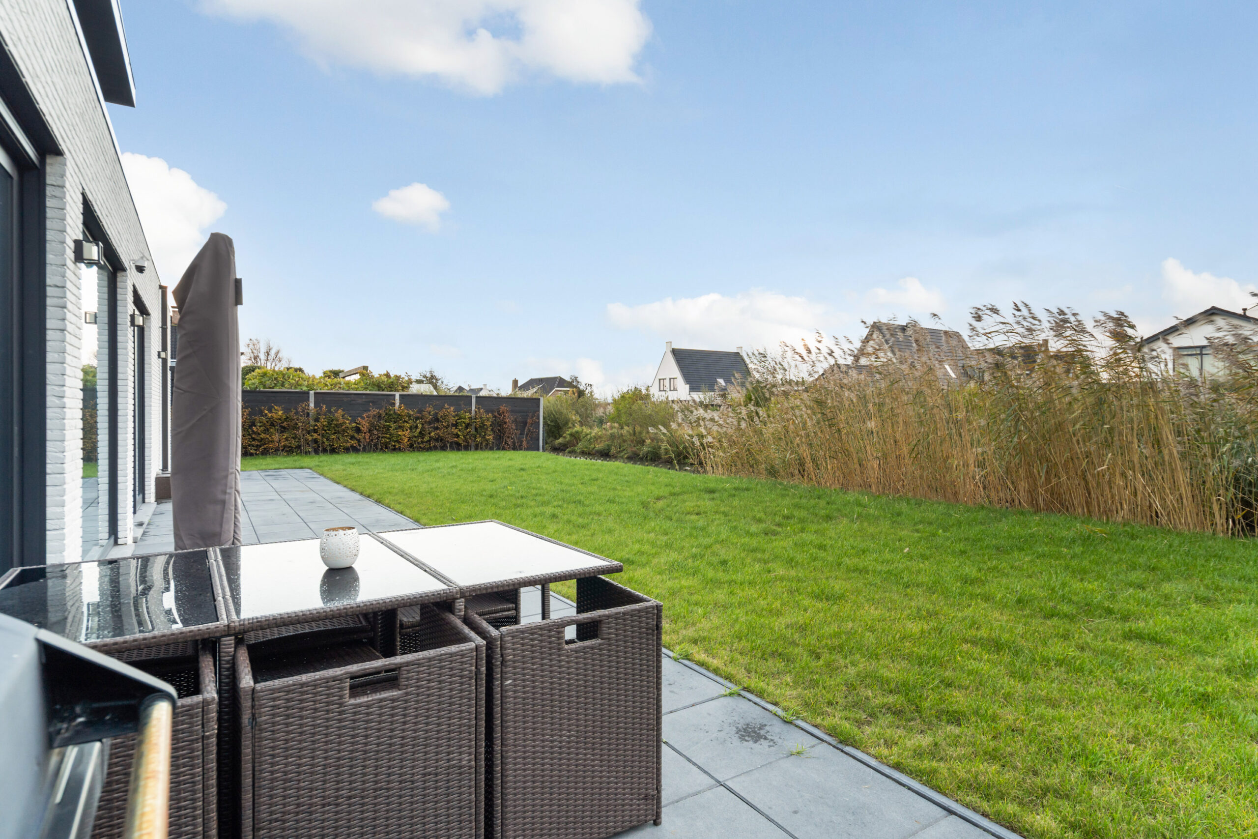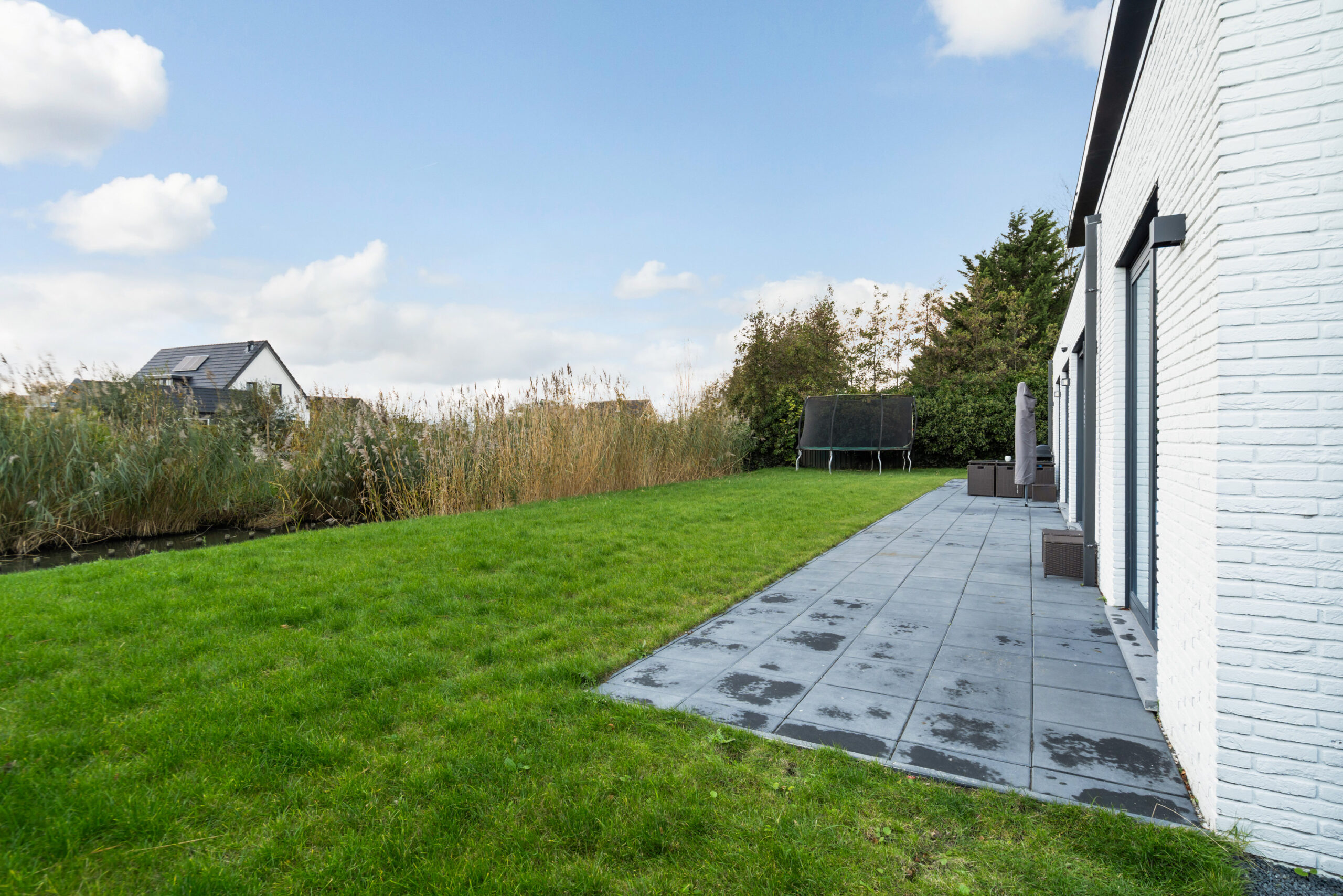 De vrije en royale achtertuin is zeer fraai aangelegd met mogelijkheid voor meerdere terrassen, en zelfs een eigen aanlegsteiger kan gerealiseerd worden. De tuin is ideaal gesitueerd op Zuidwesten, zodat de gehele dag van de zon genoten kan worden.