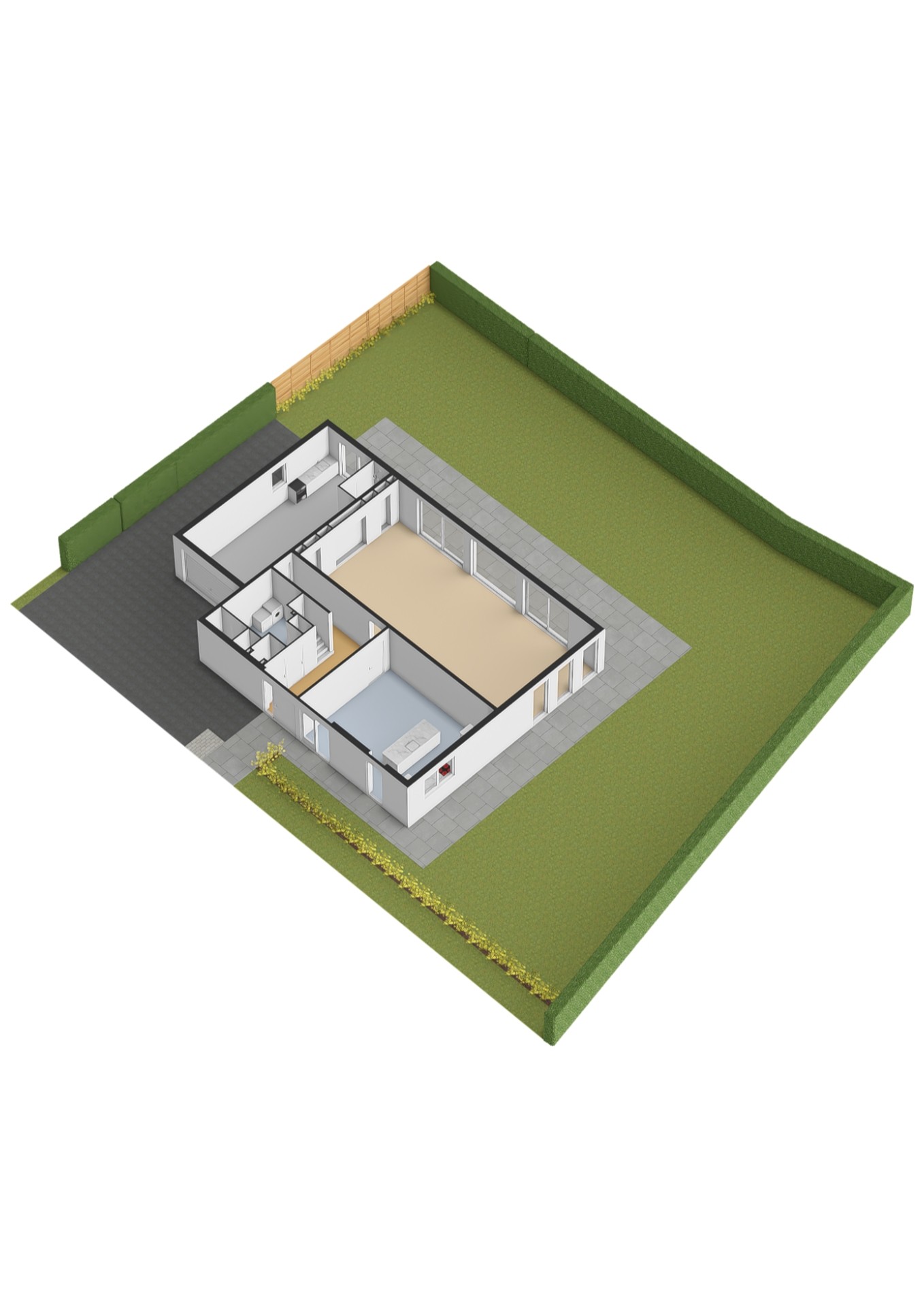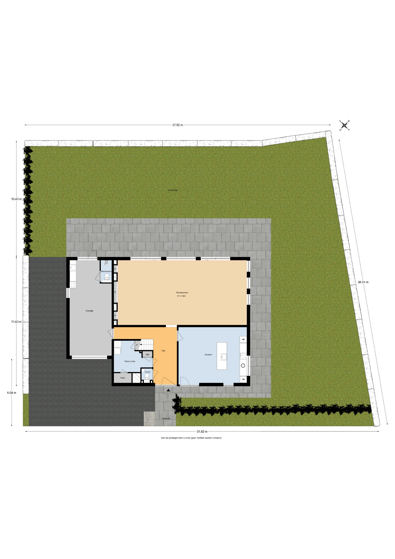 De woning is gelegen op een riante kavel van 755 m² eigen grond. De tuin is aan drie zijden van de woning gelegen.