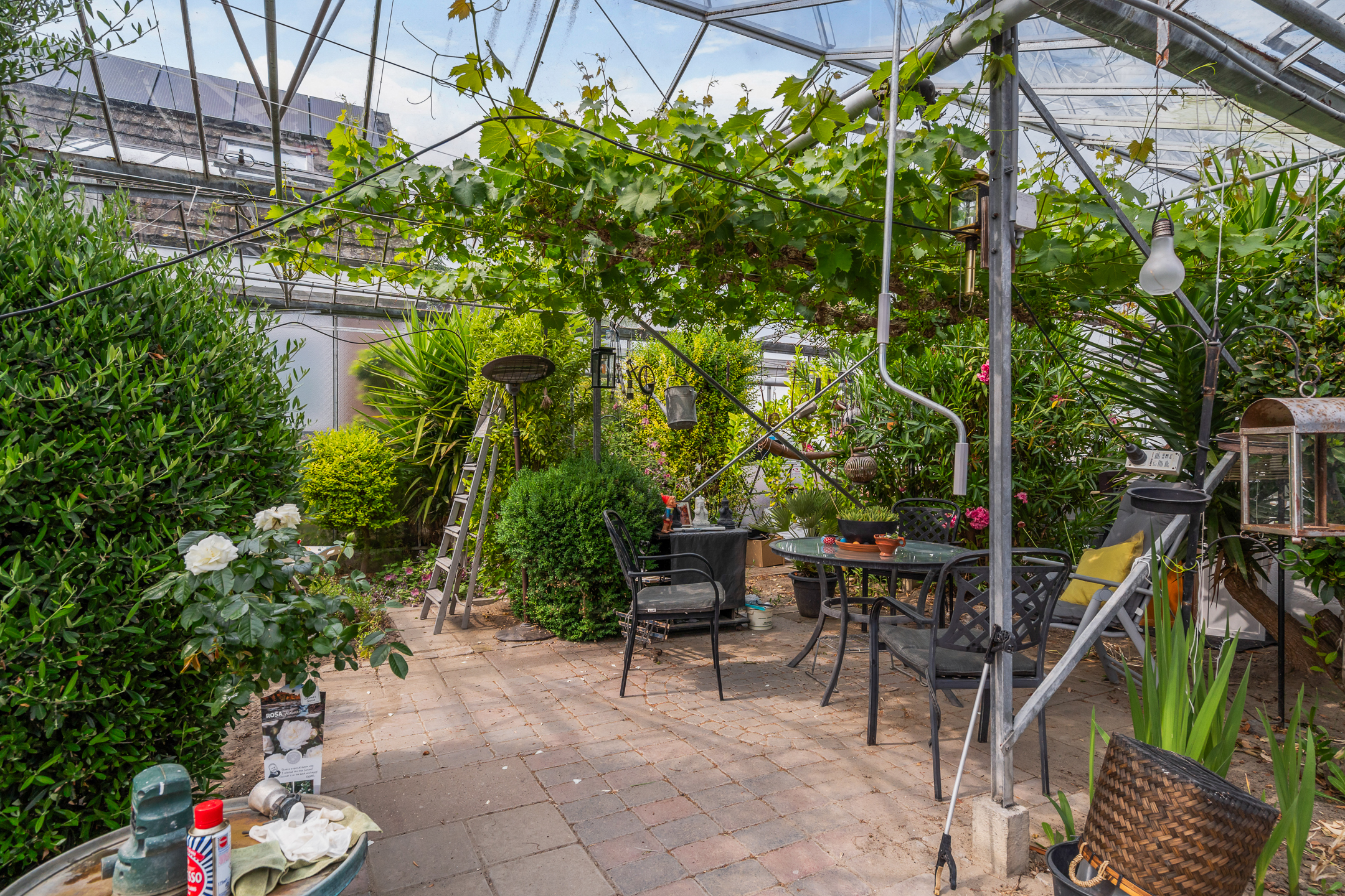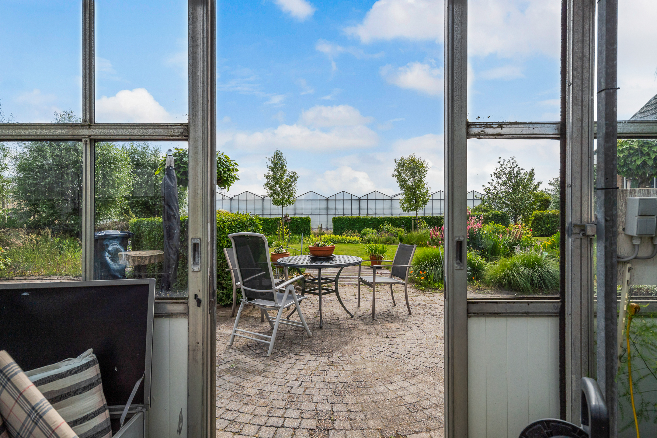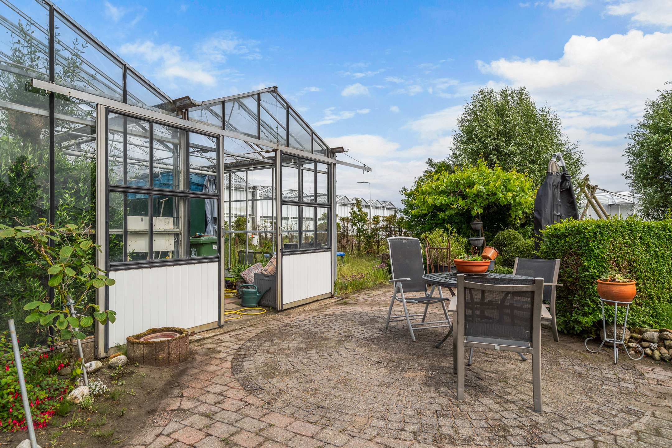 - Zeer royale achtertuin waar u op elk moment van de dag wel van het zonnetje kunt genieten. De tuin is verzorgd aangelegd en is voorzien van sierbestrating, diverse gazons, veel mooie groenborders, diverse gezellige zitjes, een moestuin en een ruime hobbykas die ook als garage kan worden gebruikt. De tuin is gelegen aan vaarwater en heeft een grote steiger.