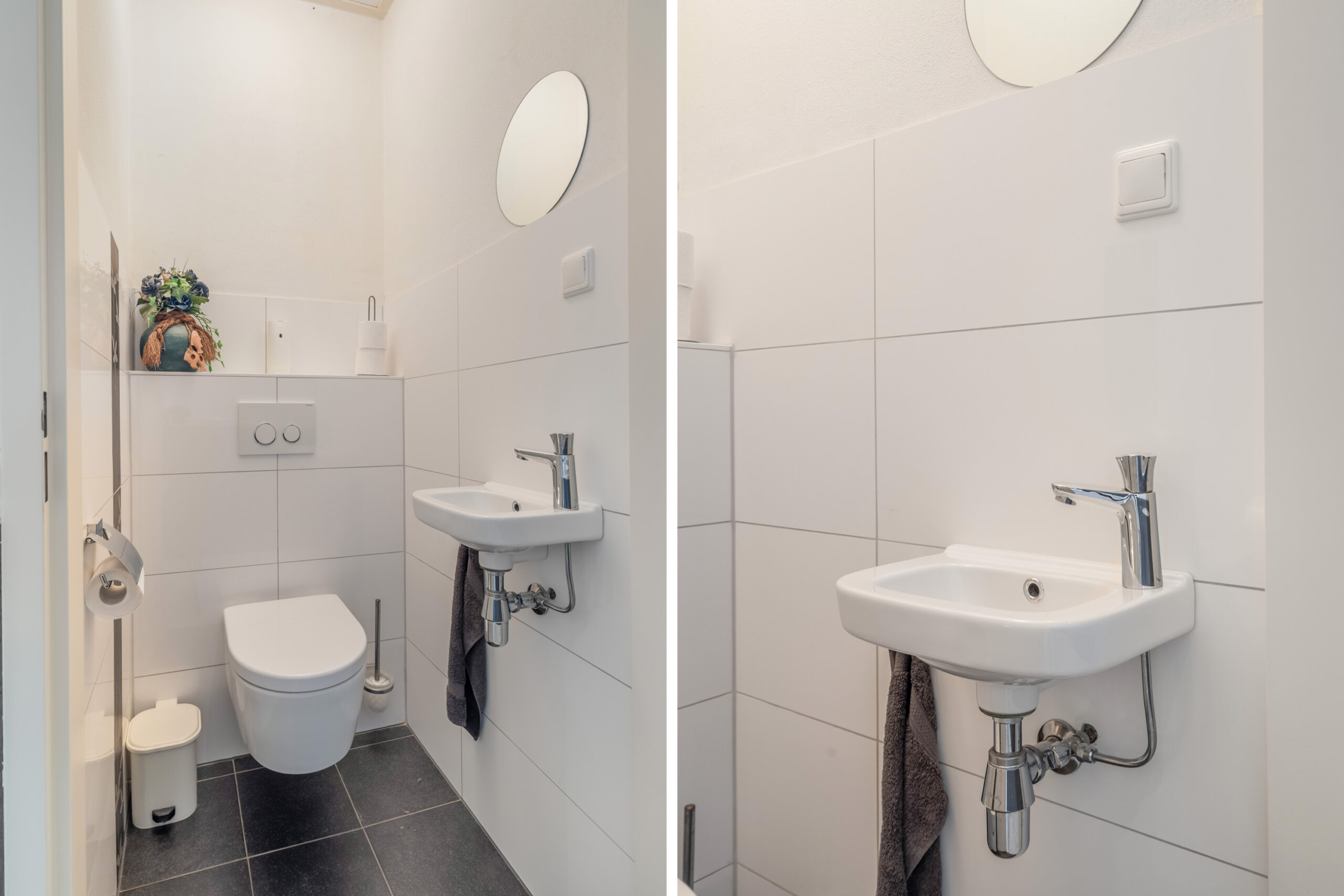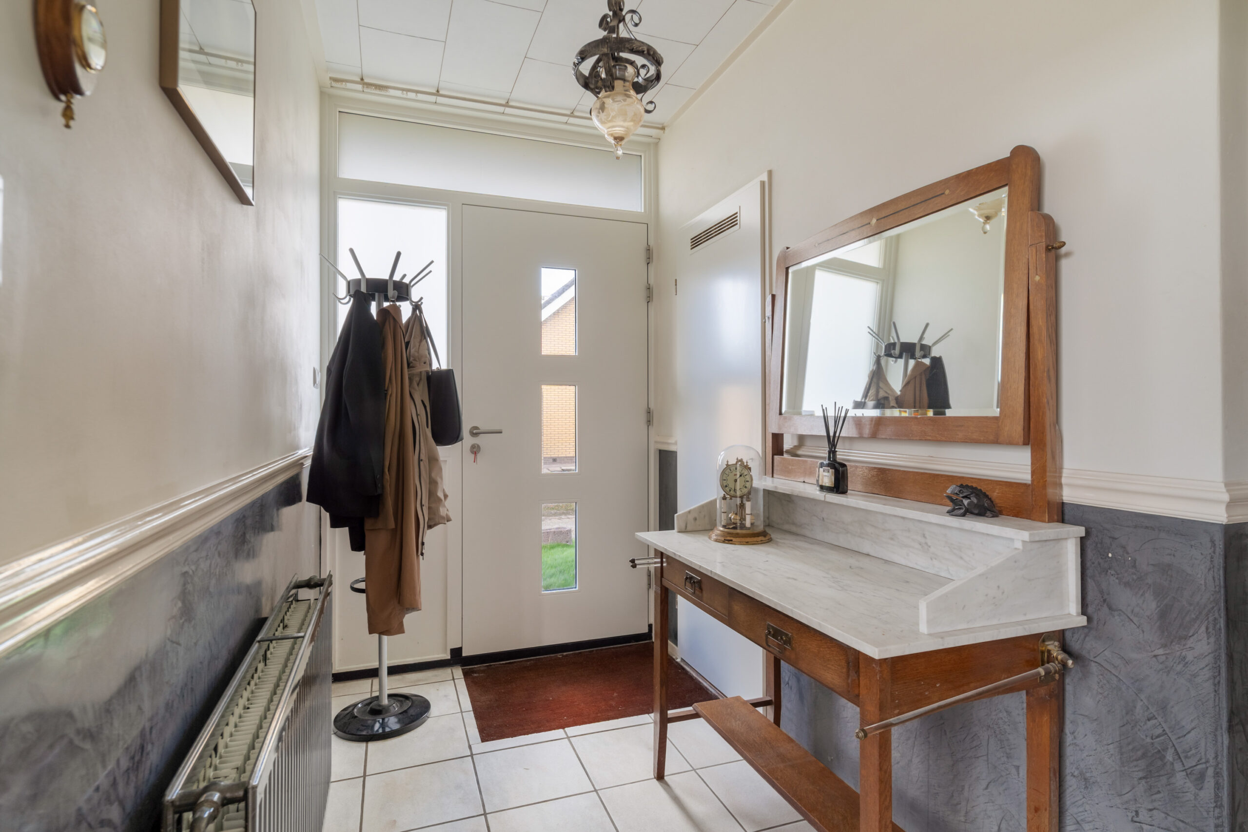 - Entree, hal met meterkast en toiletruimte met fonteintje.