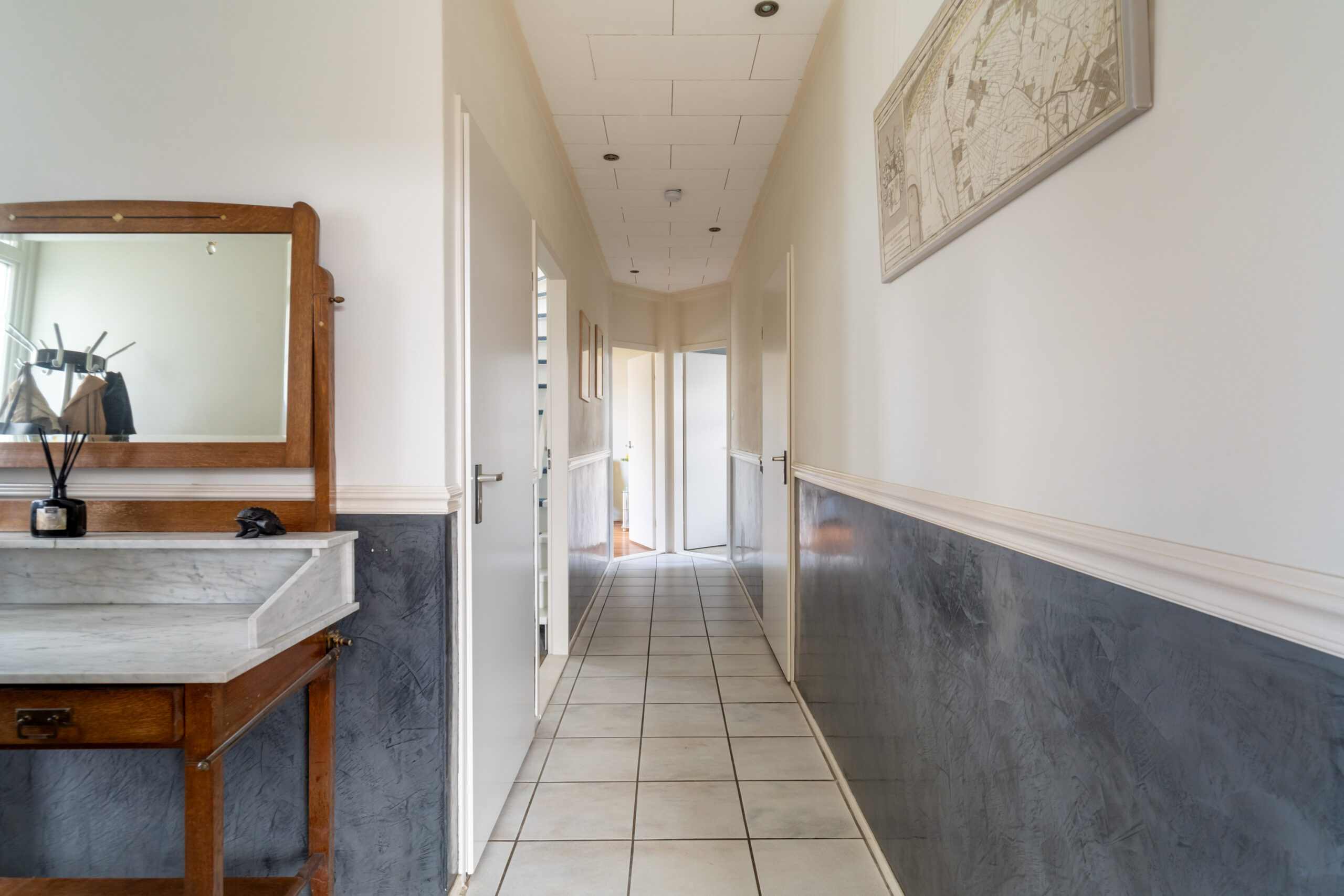 - Via de hal bereik je de slaapkamers en badkamer.