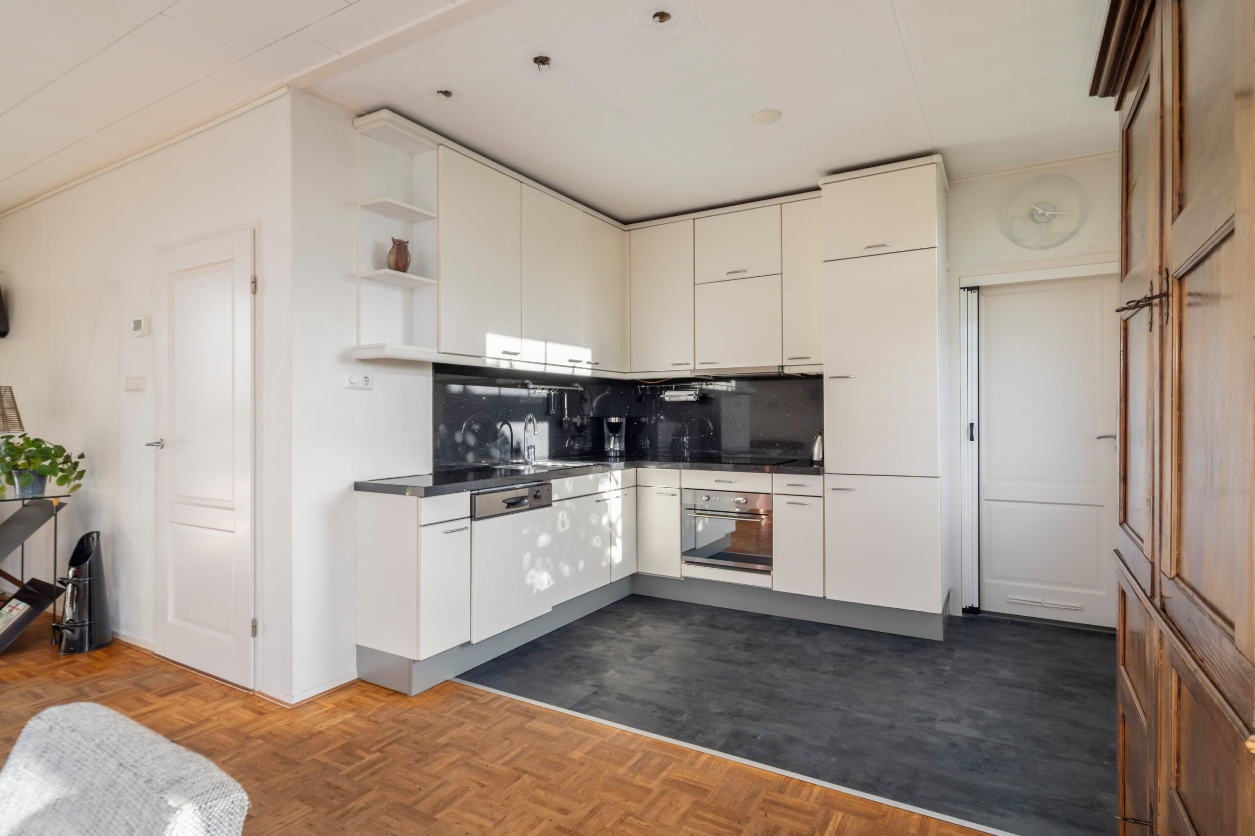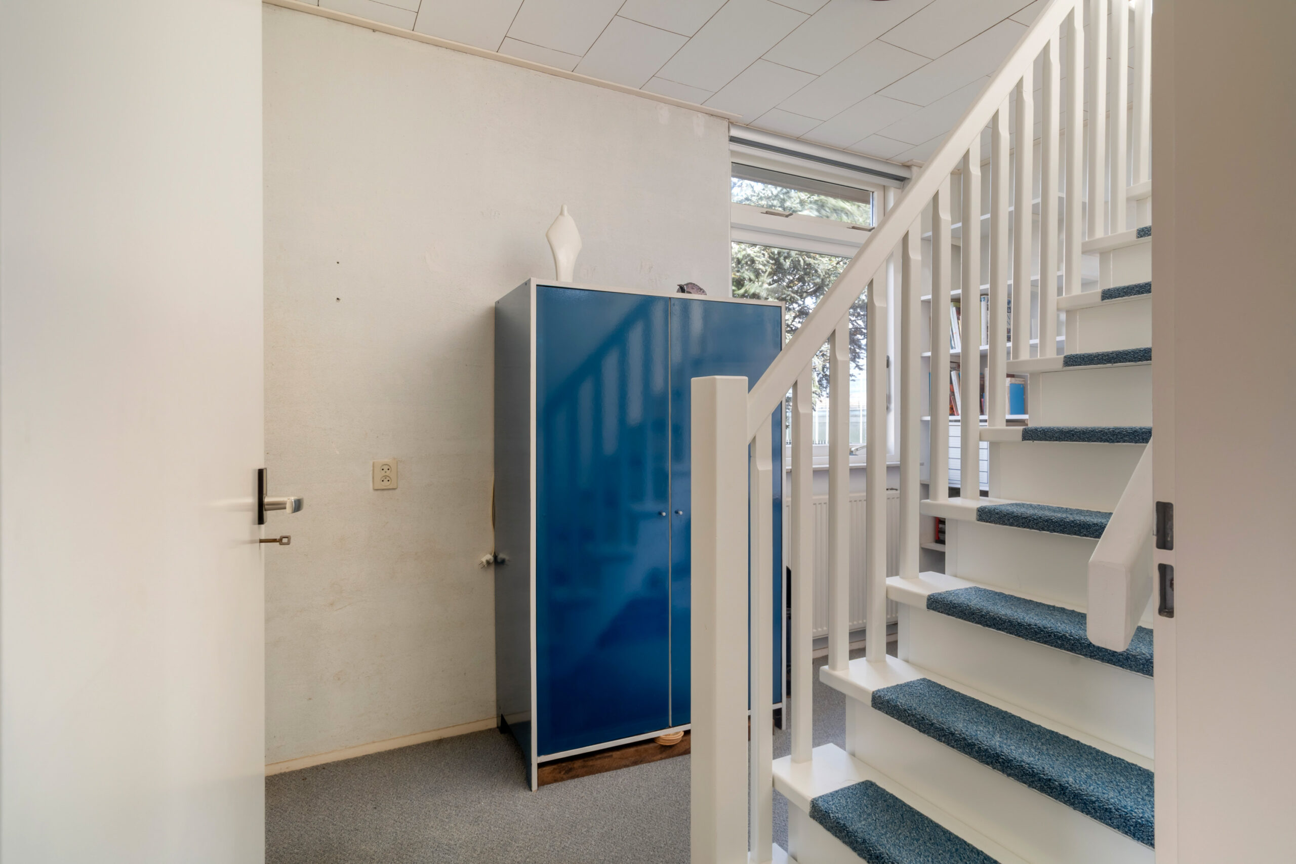 - Tussenkamer met vaste kast en trapopgang naar de 1e etage.