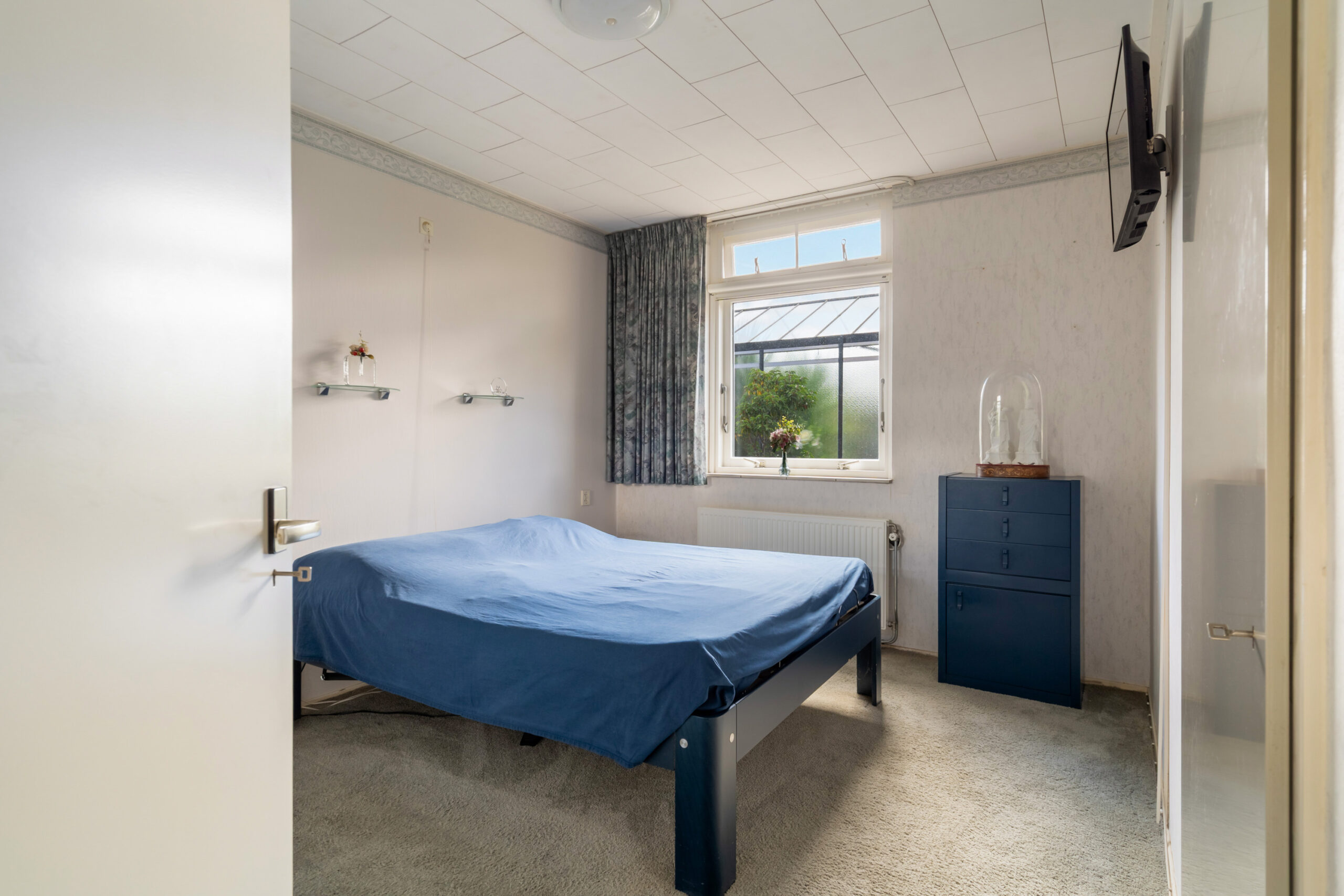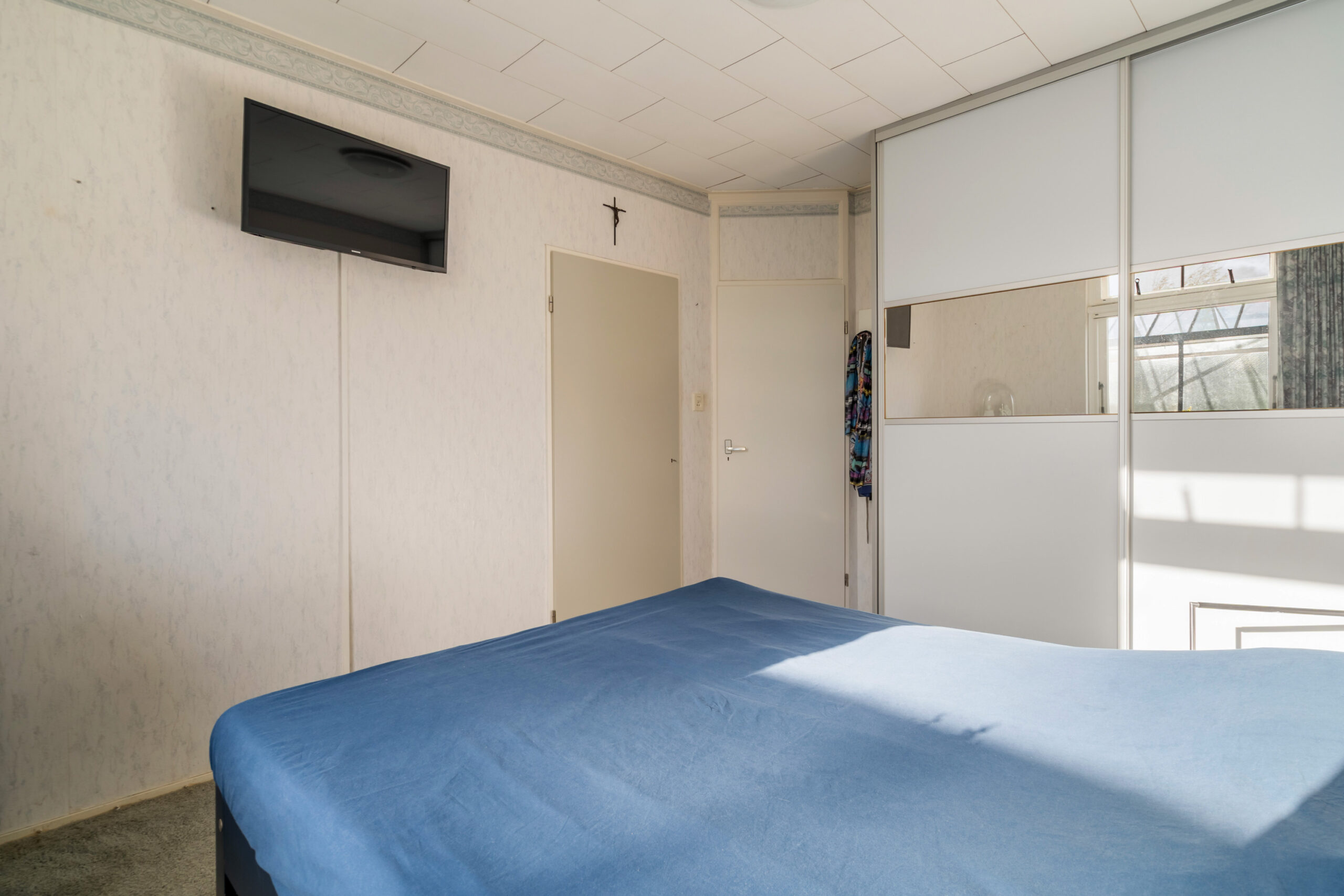 - Ruime slaapkamer gelegen aan de achterzijde van de woning, voorzien van een vaste kast en schuifkastenwand.