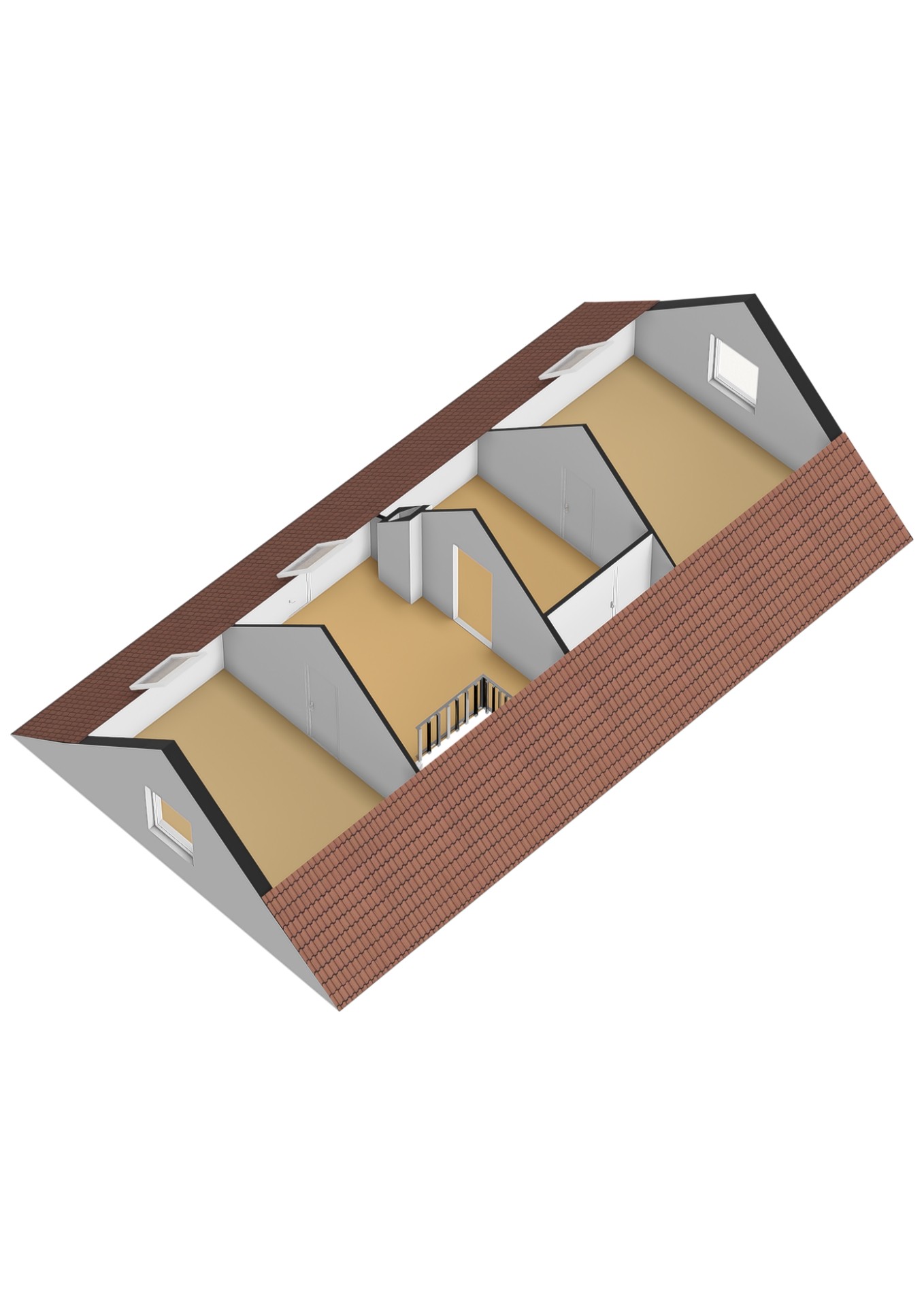 - Grote overloop met veel mogelijkheden voorzien van een dakraam en veel bergruimte.