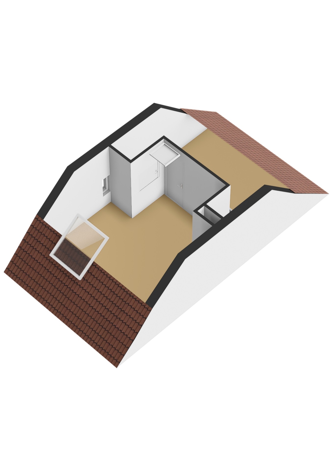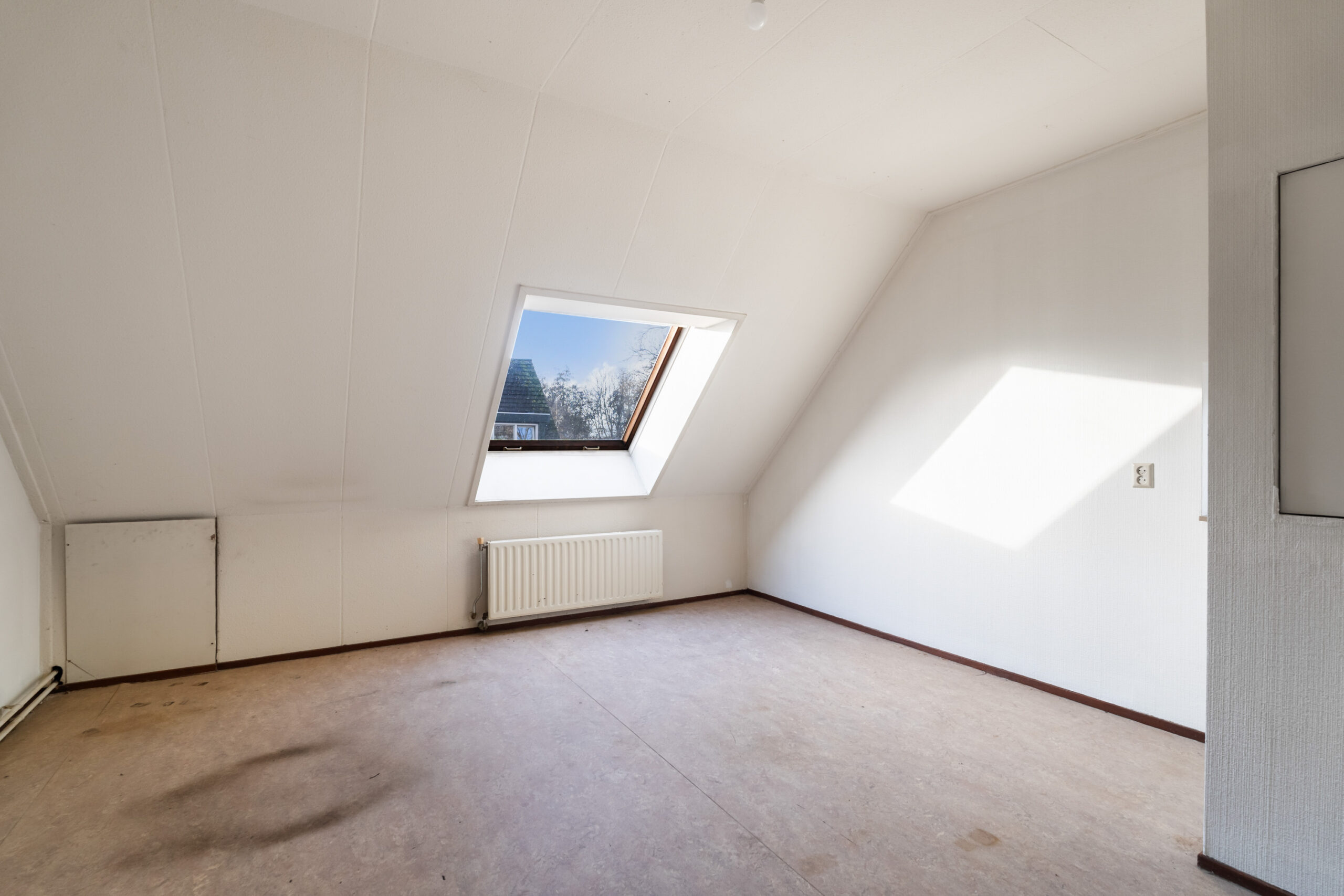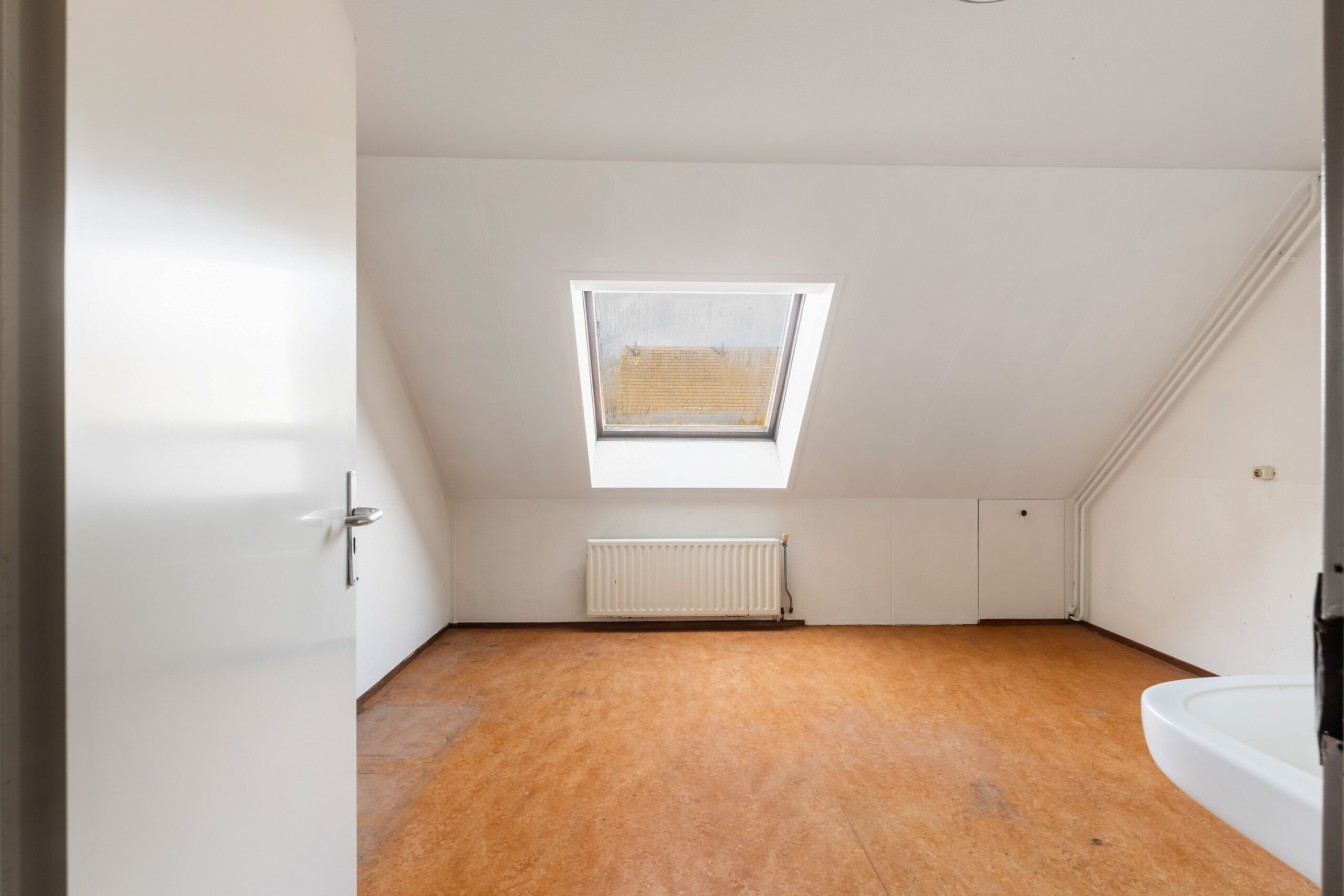 - Derde slaapkamer (ca. 4,82 x 4,32 m) met dakraam.