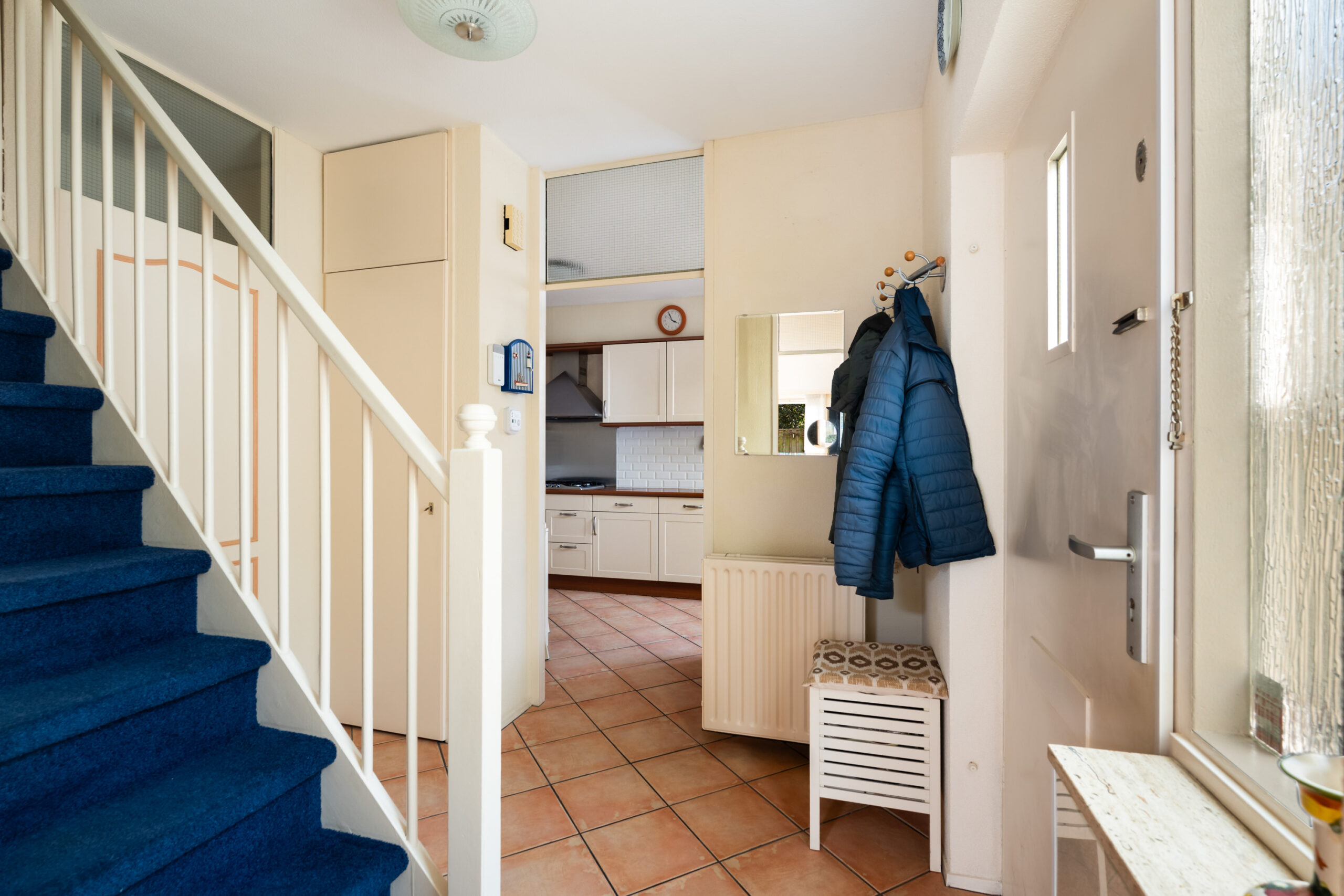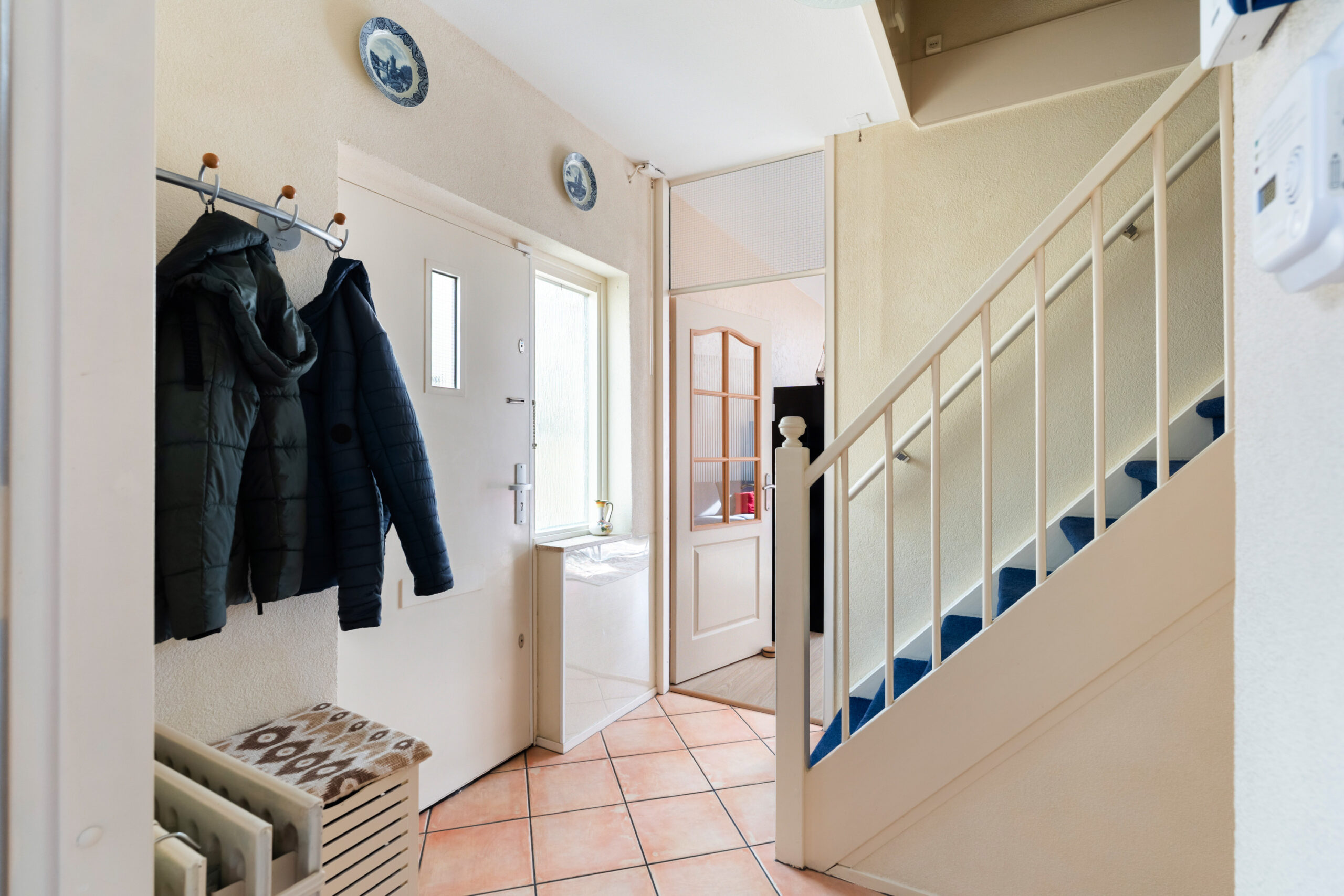 - Entree van de woning, ruime hal met meterkast, toilet en trap naar de 1e verdieping;