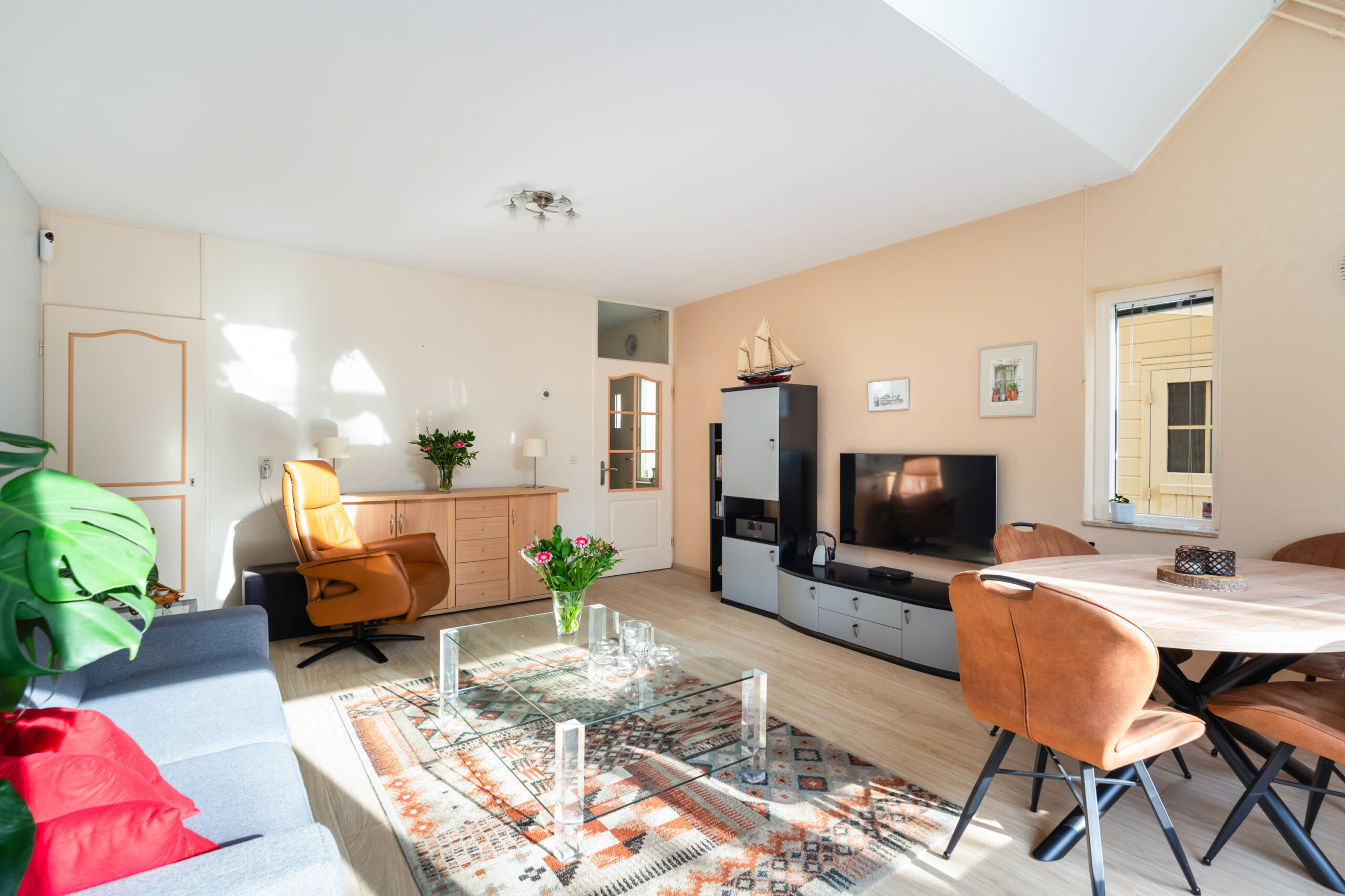 - Zeer lichte woonkamer (ca. 5,53 x 4,54 m) met riante vaste kast, welke ook kan worden opgebroken voor een directe doorgang naar de keuken;