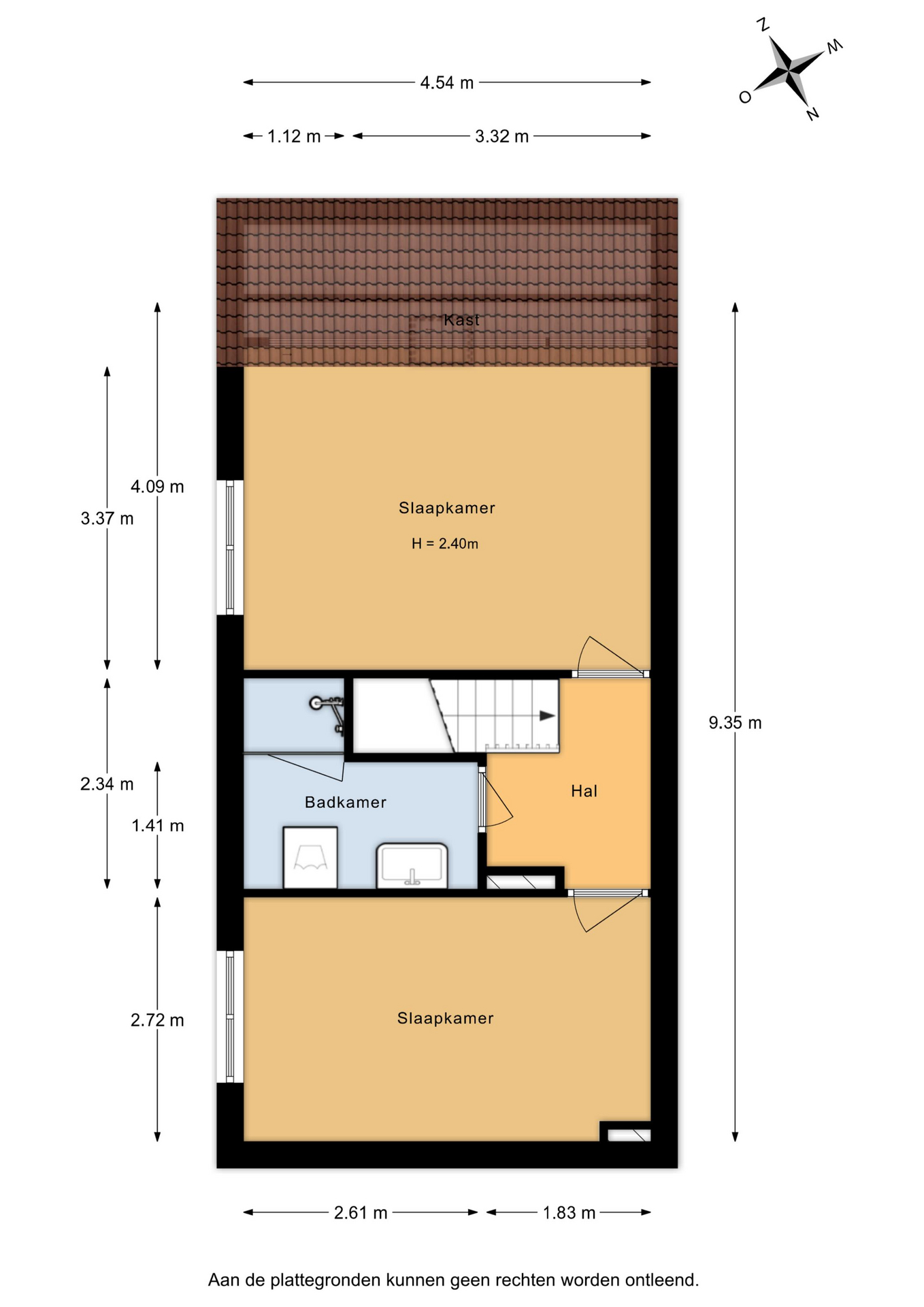 - De 2e slaapkamer (ca. 2,72 x 4,54 m;
