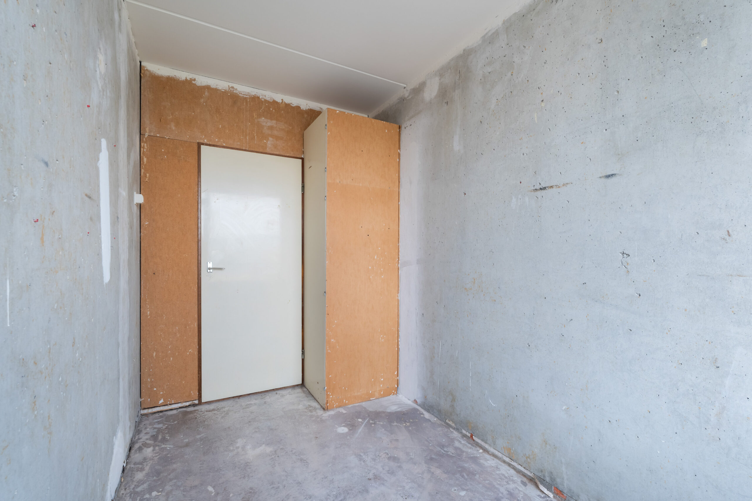 - Entree, tochtportaal met toegang tot de ruime slaapkamer aan de voorzijde, voorzien van inloopkast en grote raampartij gelegen aan de galerijzijde.