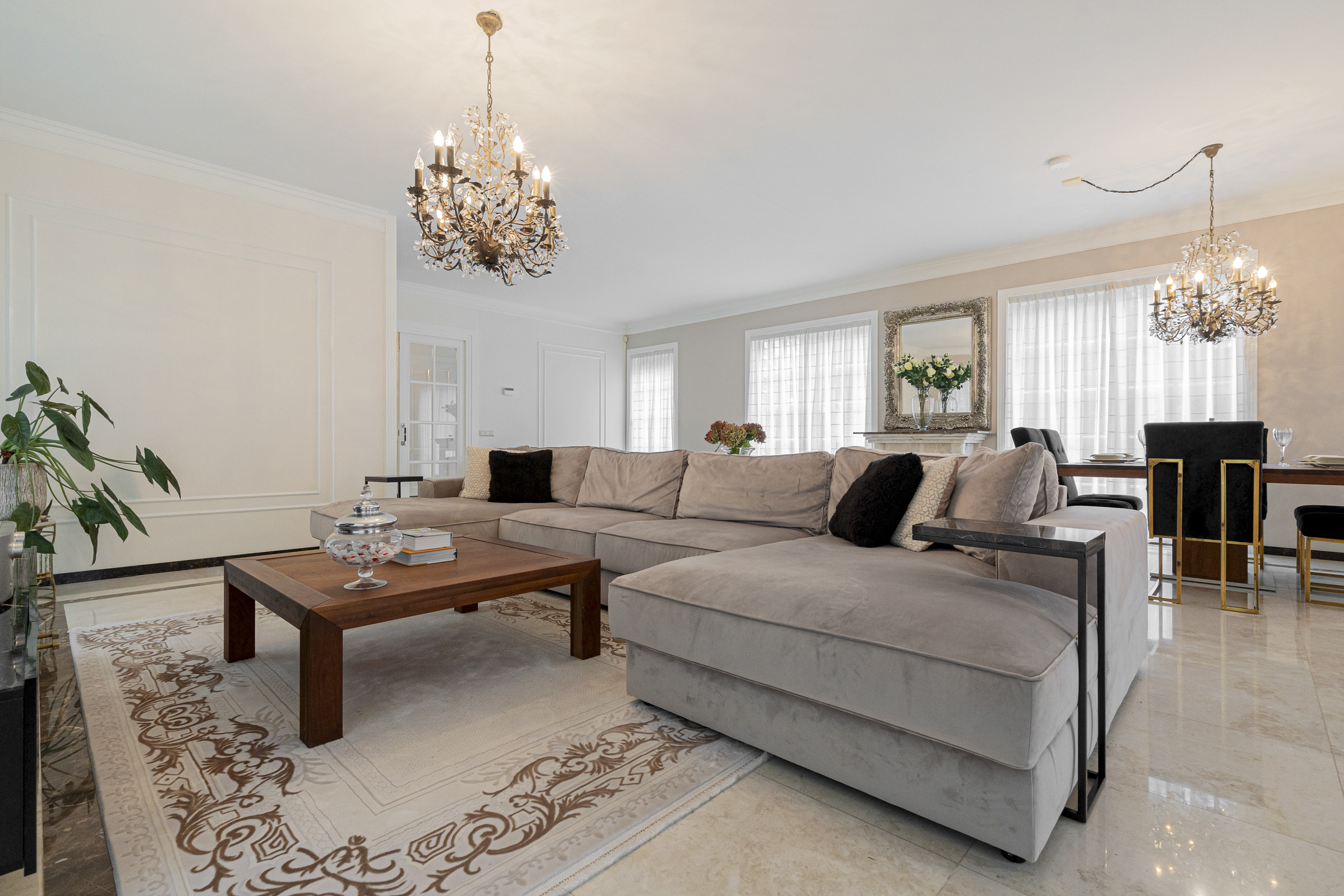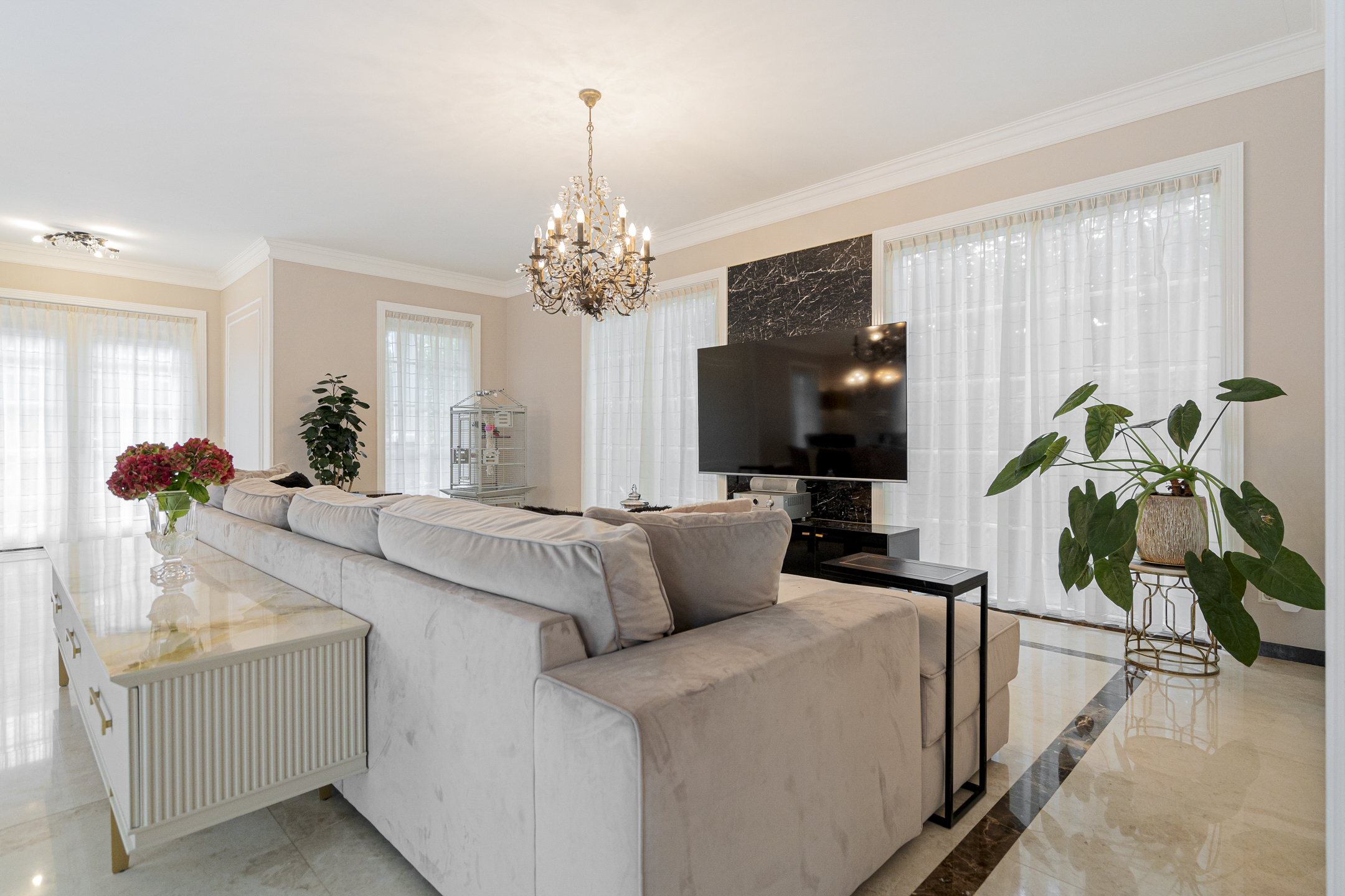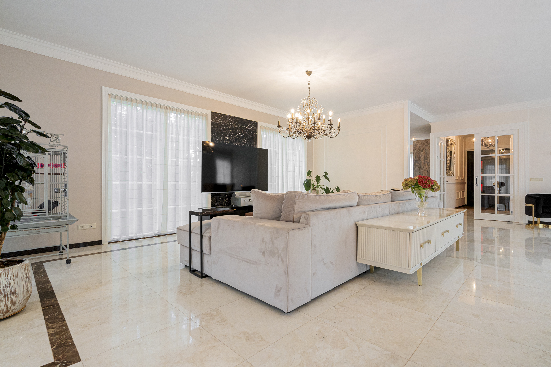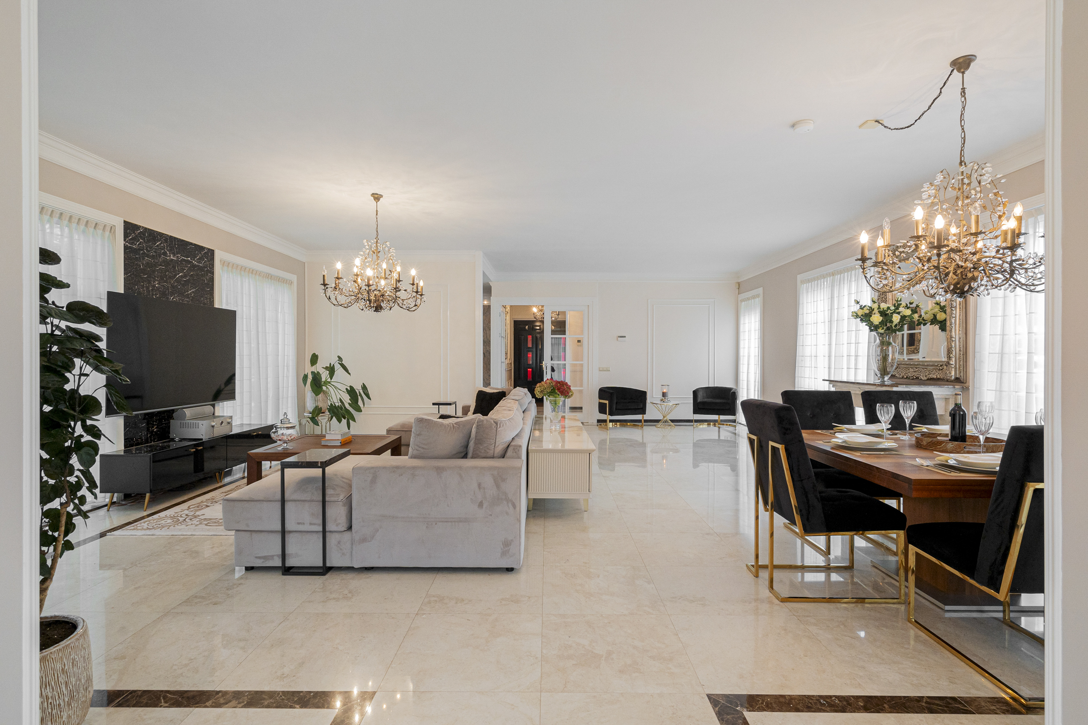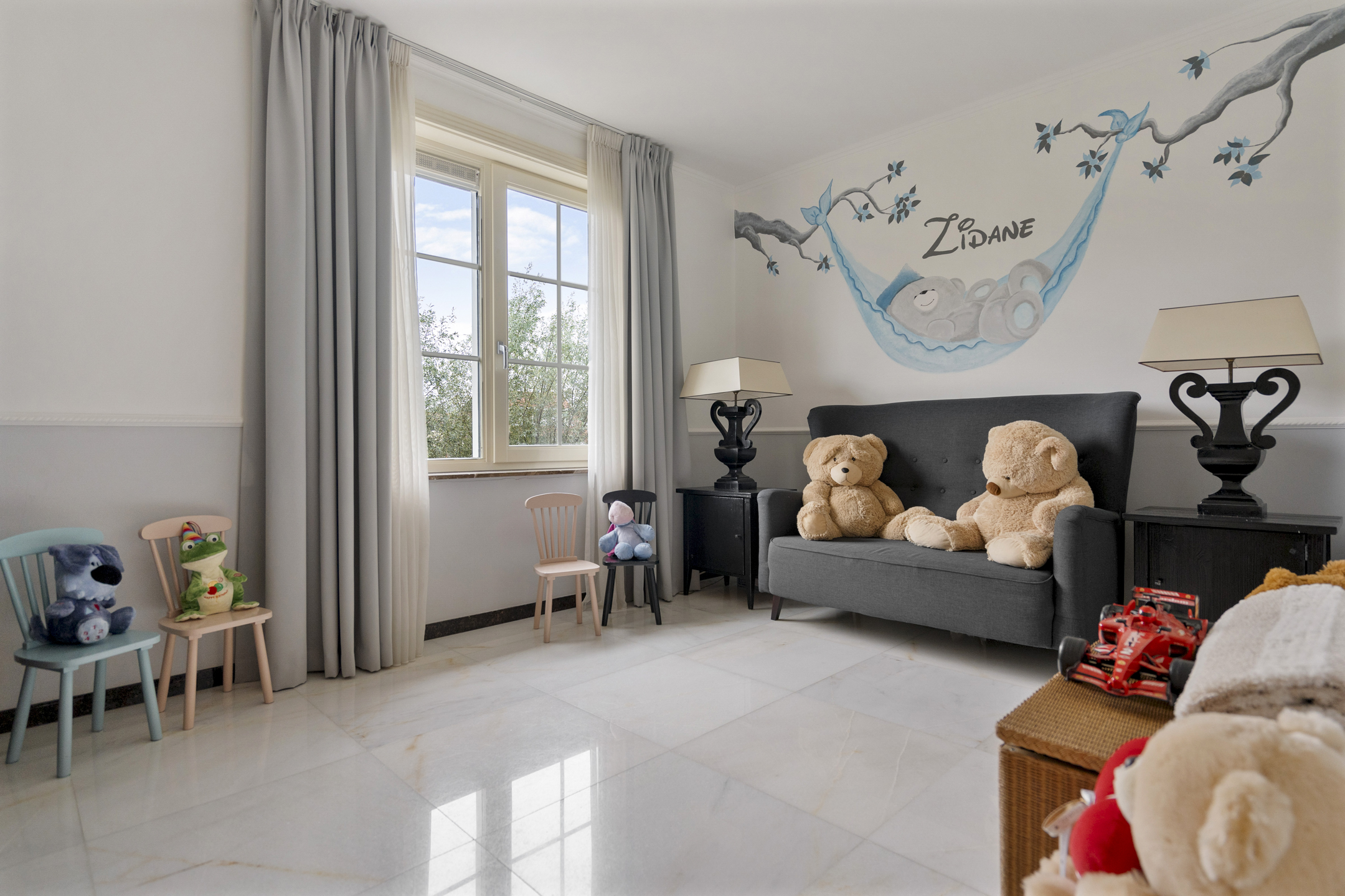 - De meeste vloeren op de begane grond en de eerste etage zijn uitgevoerd in luxe wit en bruin “Crèma Marvil” marmer van 2,5 cm dik;