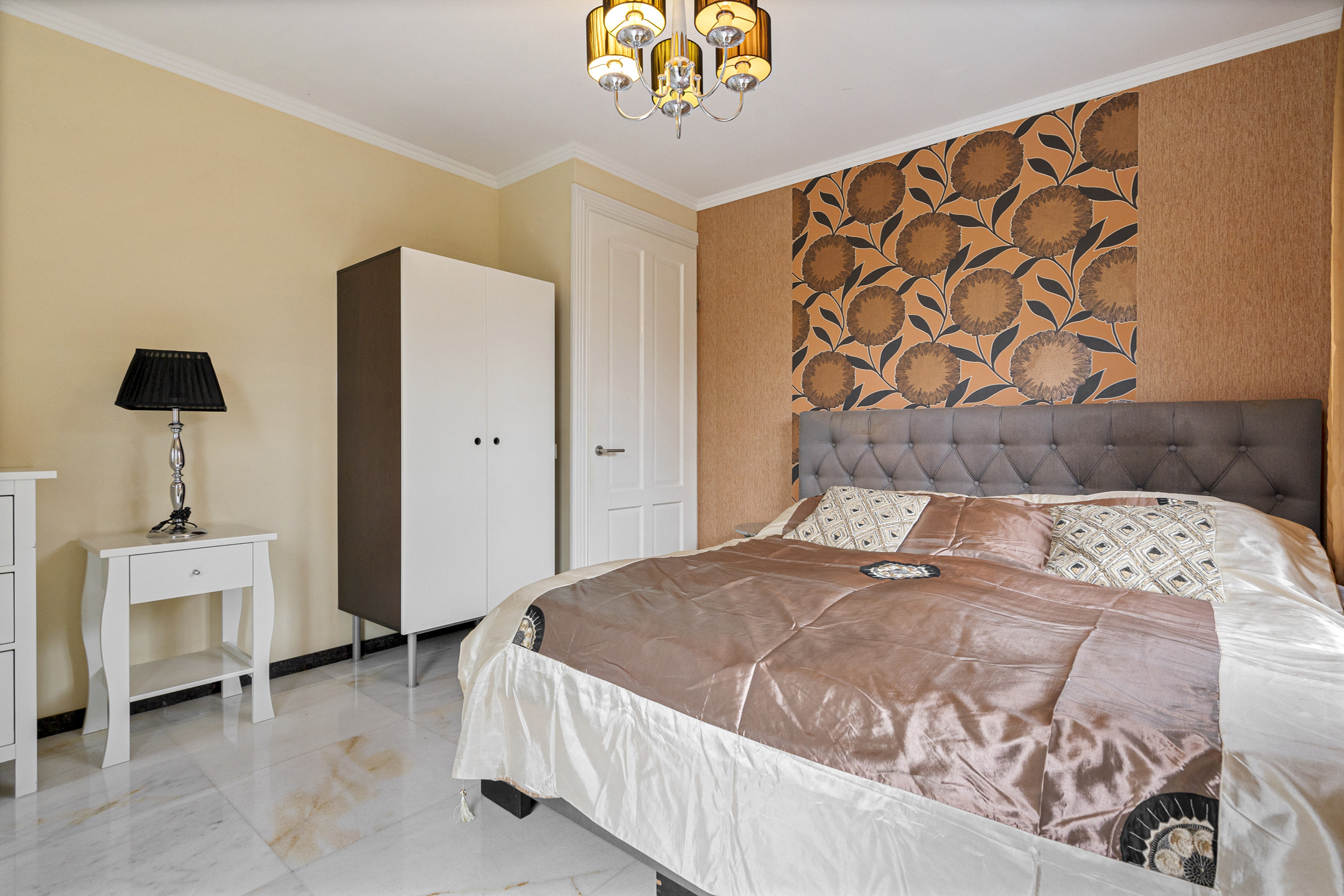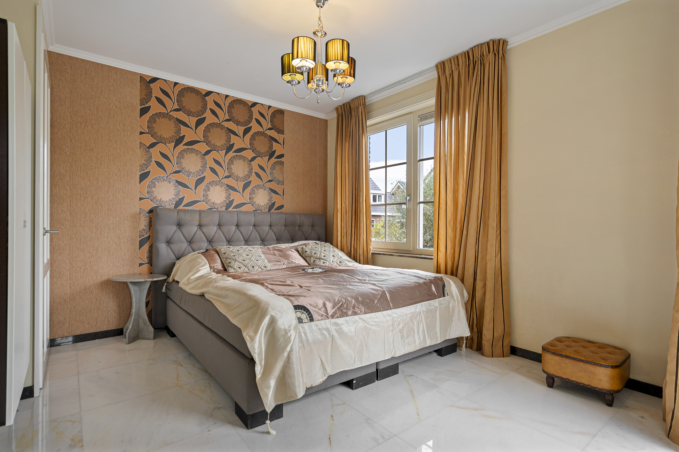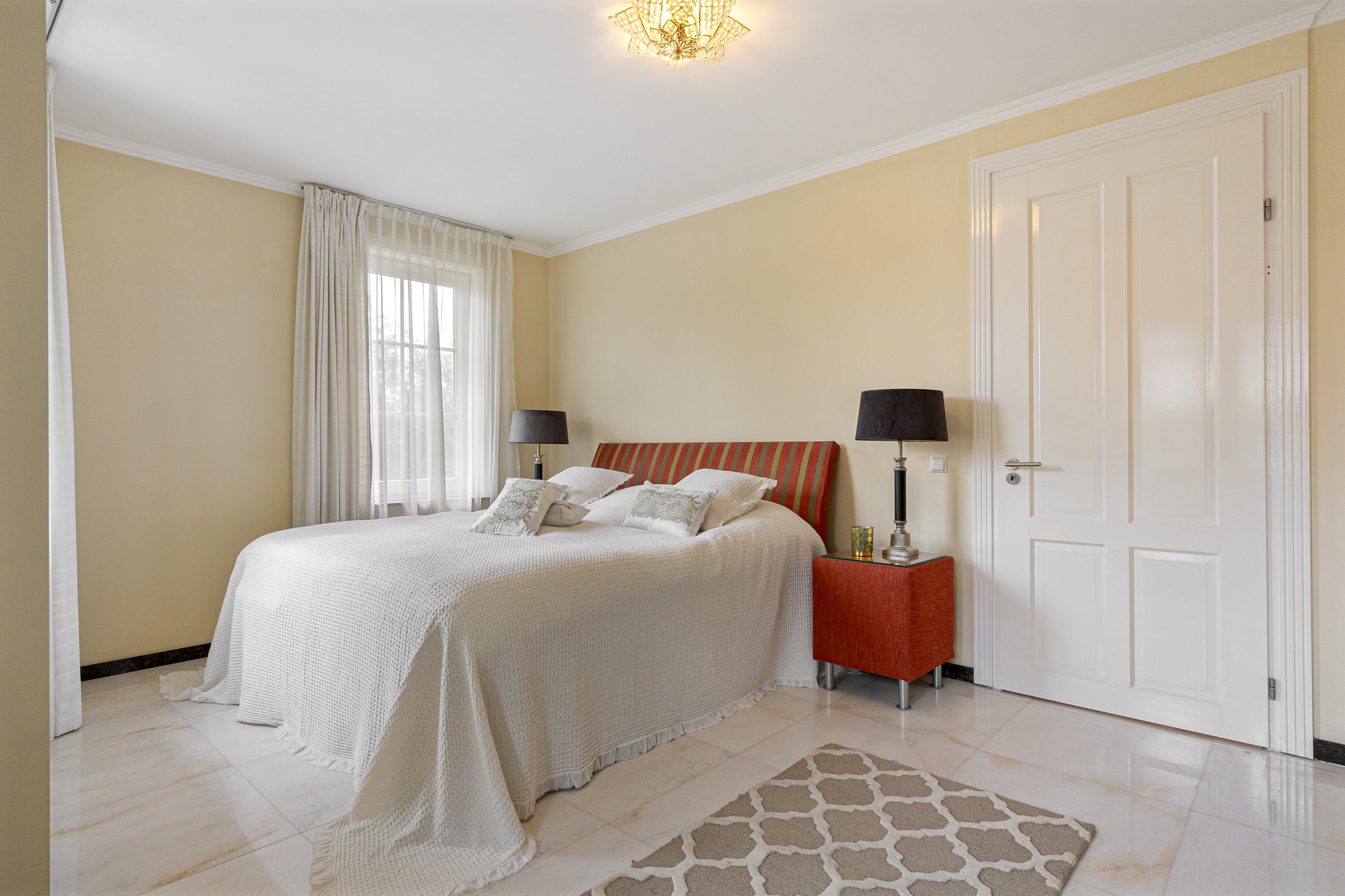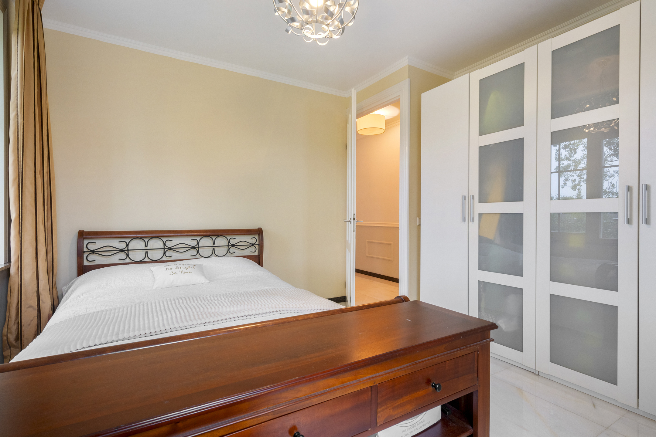 - Aan de voorzijde is de hoofdslaapkamer gesitueerd. Deze beschikt over een balkon, inloop-kleedruimte en een eigen badkamer met ligbad, inloopdouche, wandcloset en wastafel. De badkamer is voorzien van exclusief Emperador marmer;