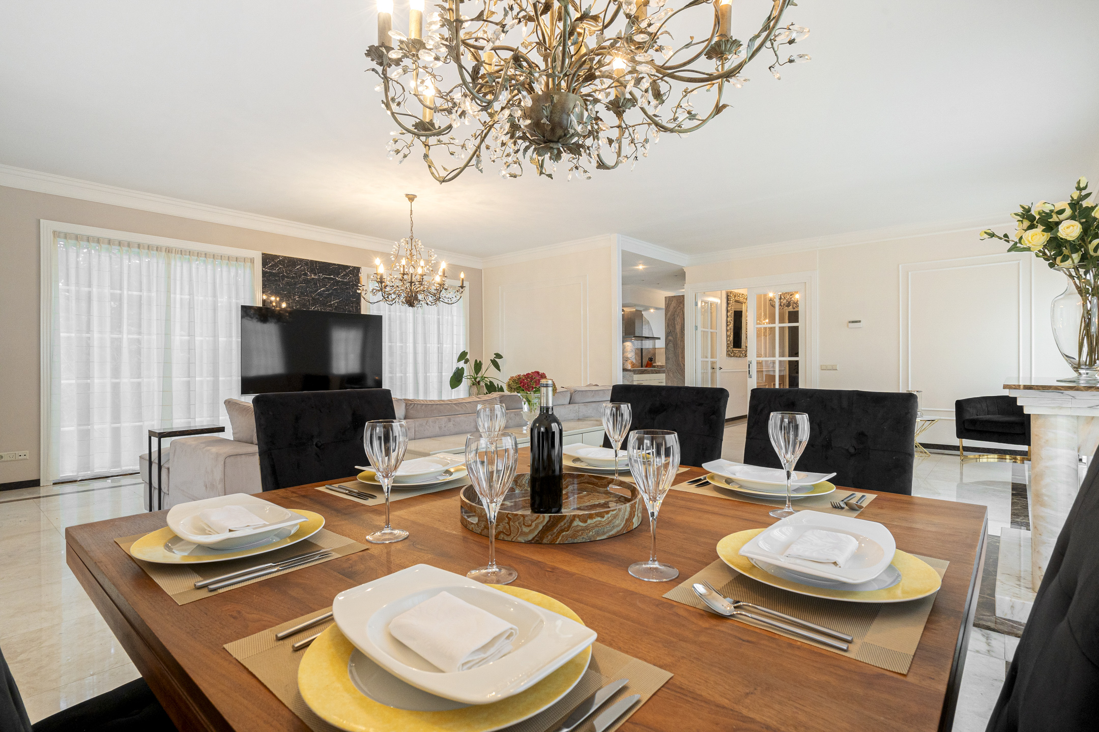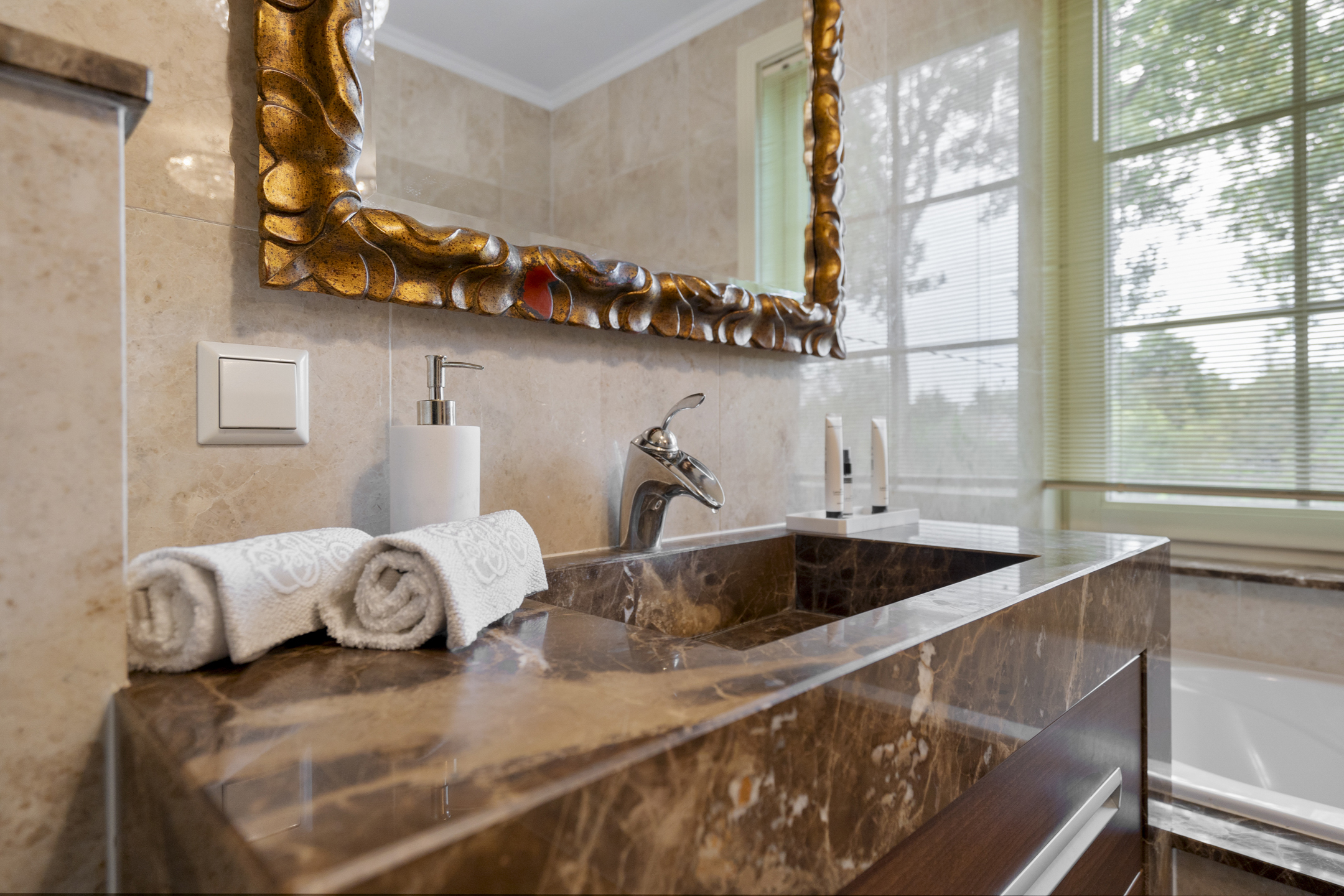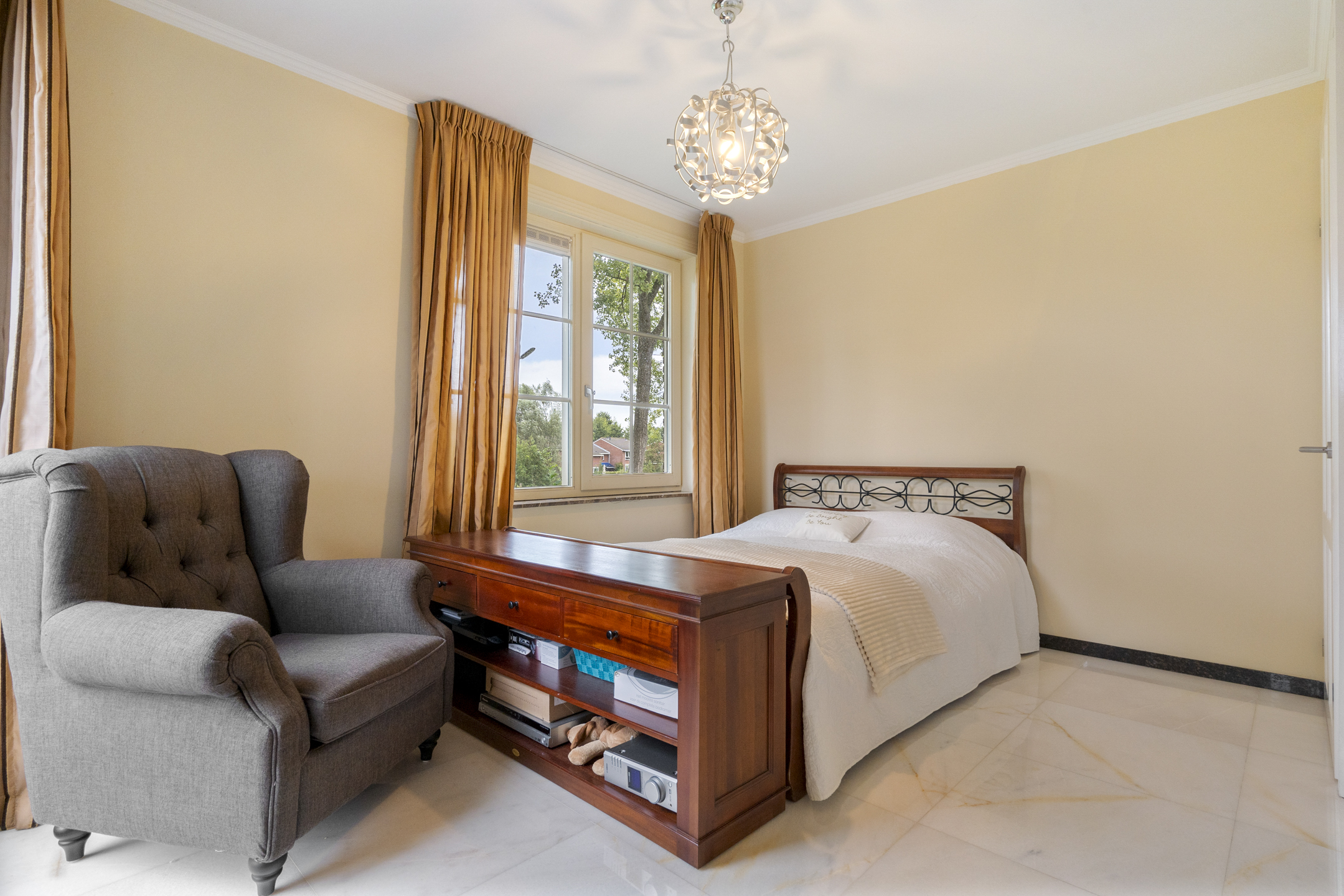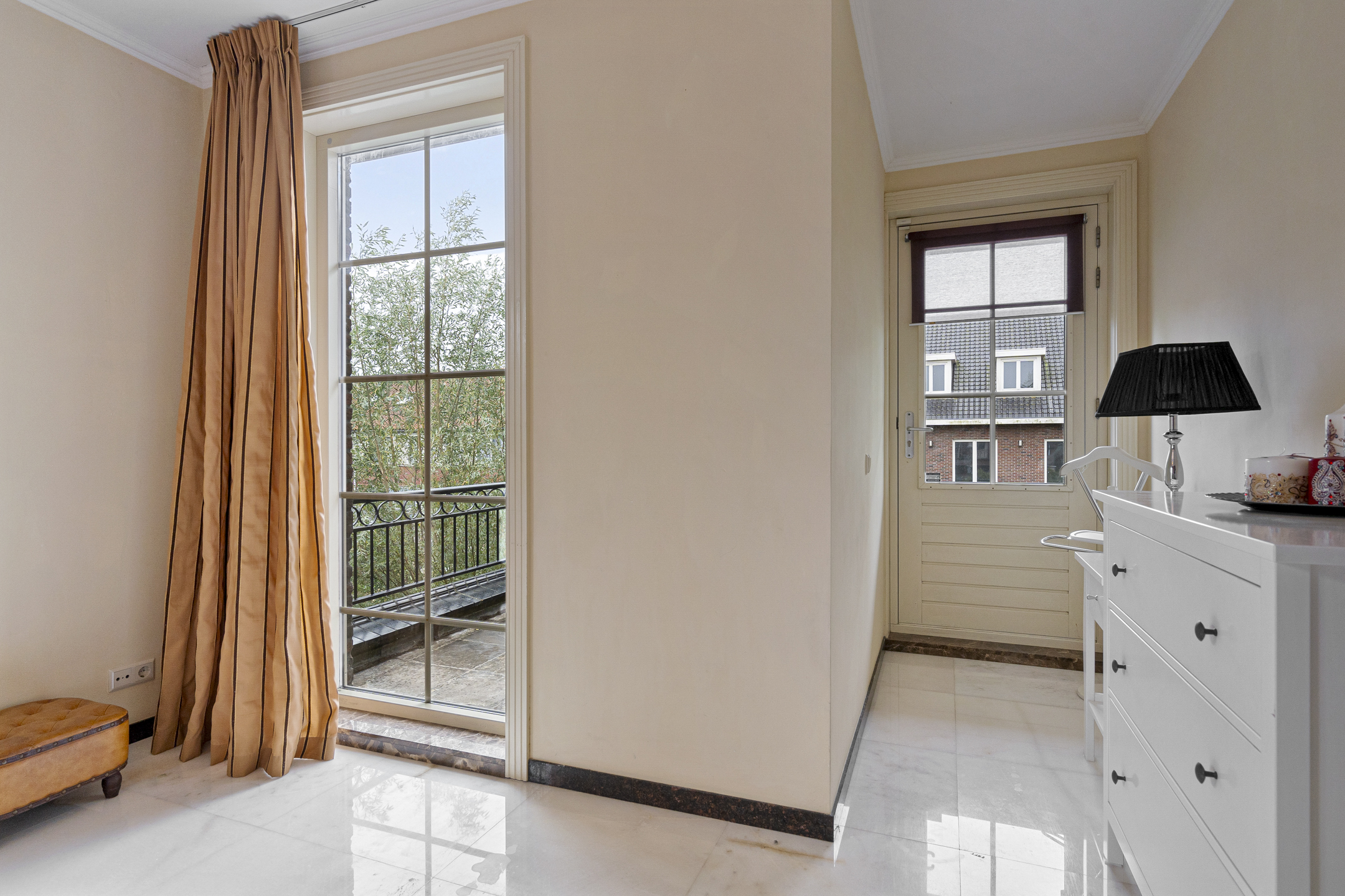 - Aan de voorzijde is de hoofdslaapkamer gesitueerd. Deze beschikt over een balkon, inloop-kleedruimte en een eigen badkamer met ligbad, inloopdouche, wandcloset en wastafel. De badkamer is voorzien van exclusief Emperador marmer;