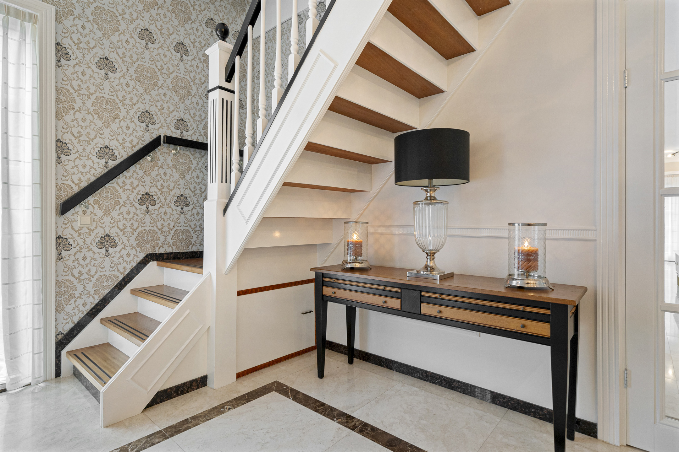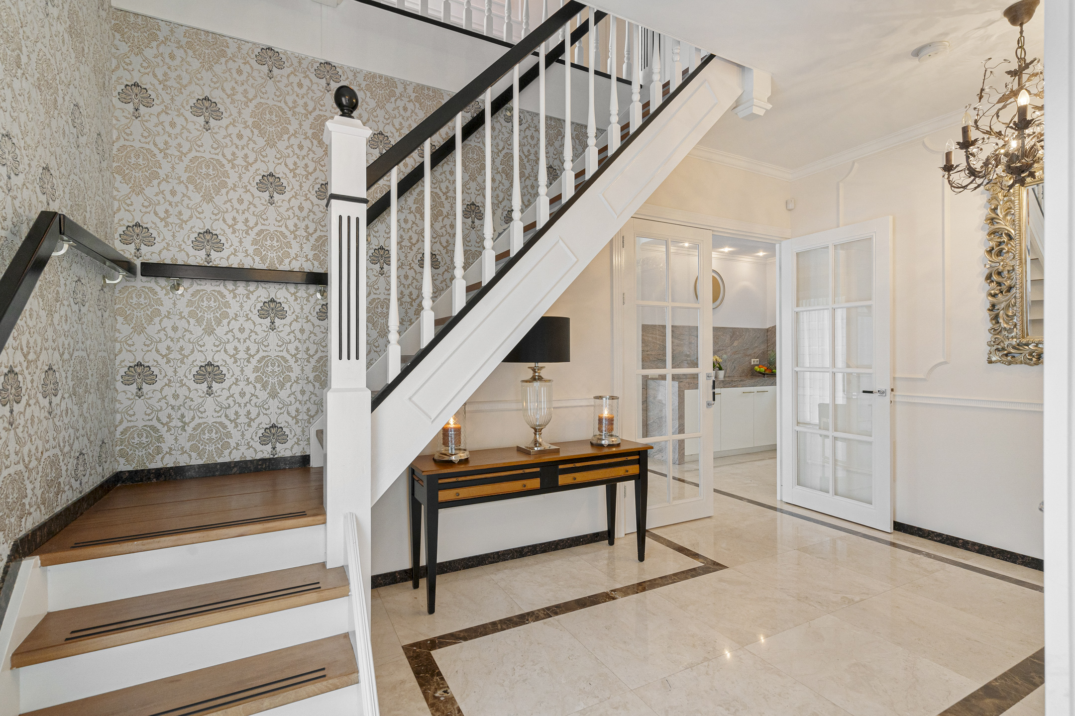 - Via de stijlvolle hal en trappenhuis op de begane grond bereikt u de eerste etage;