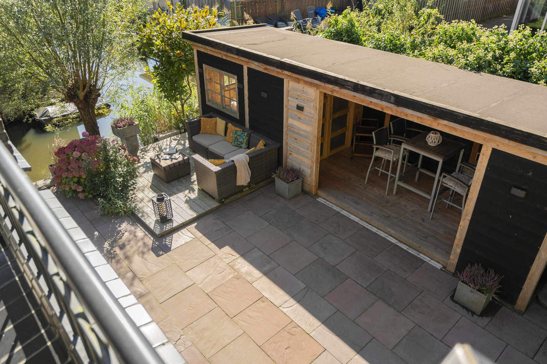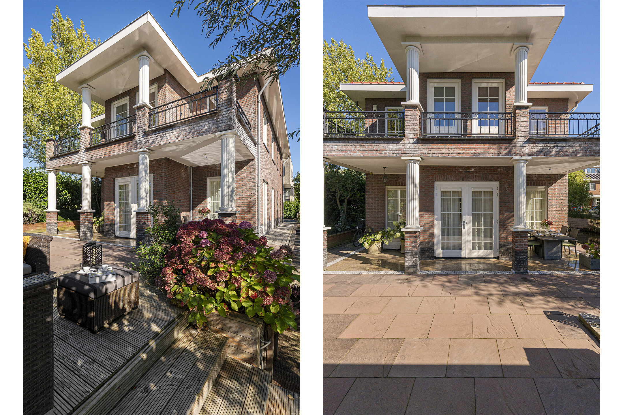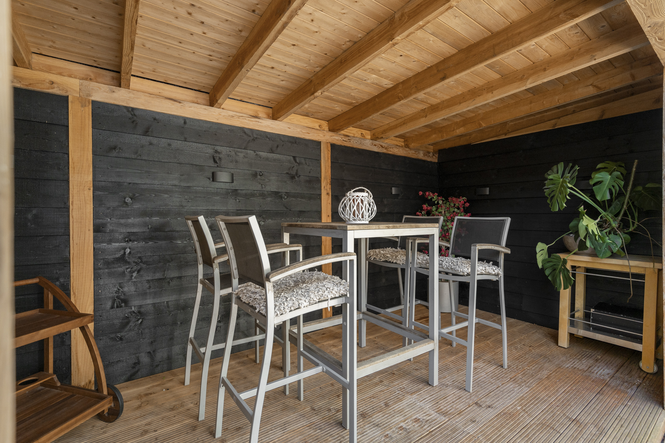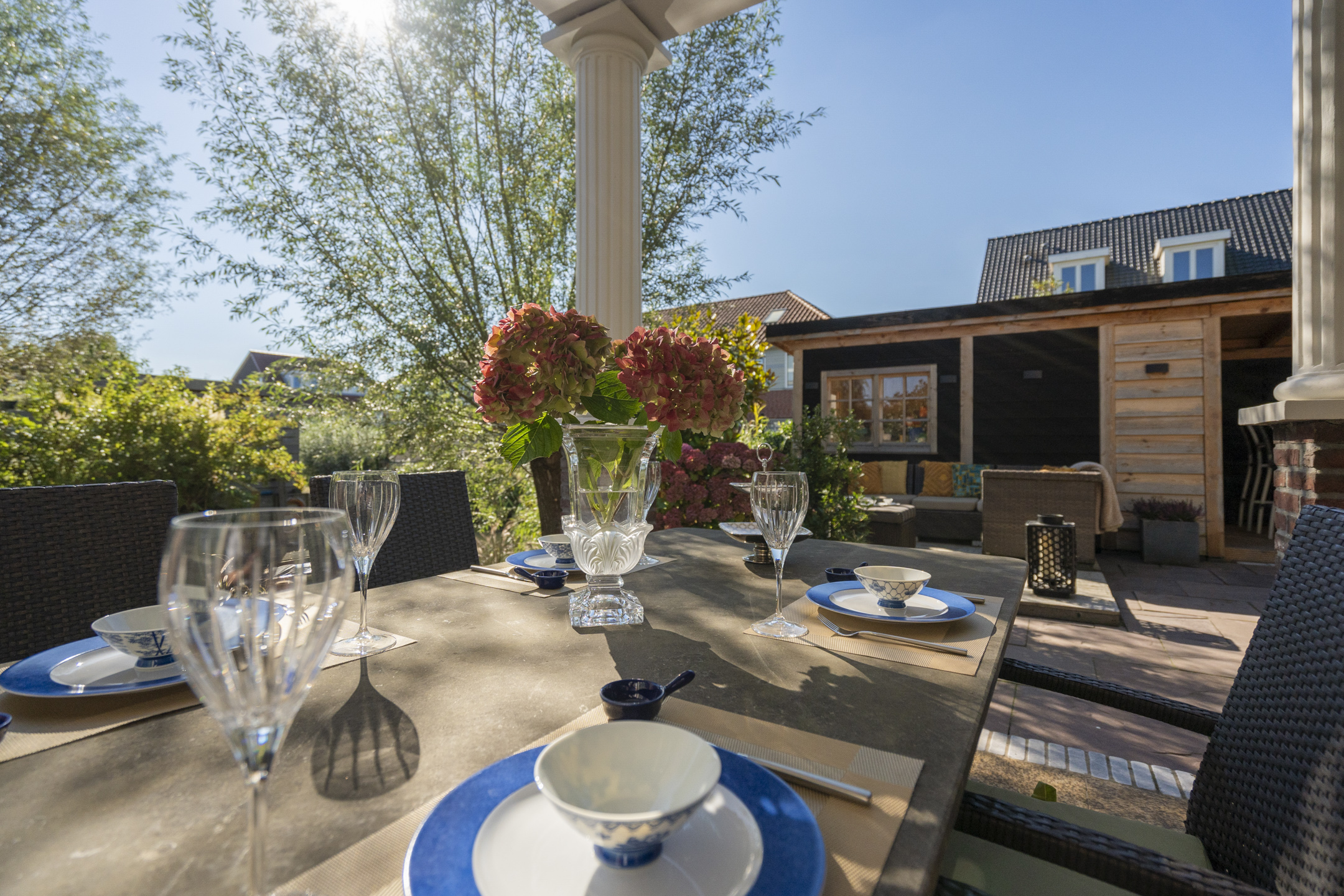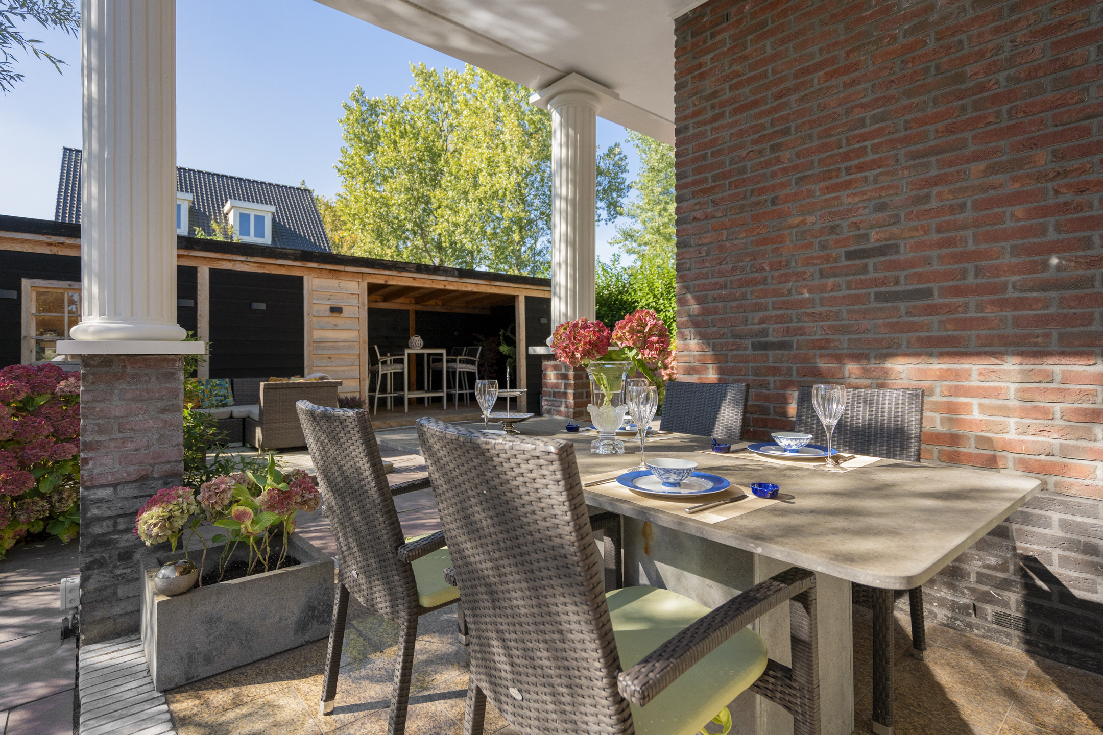 - De achtertuin ligt op het zuidwesten. Deze beschikt over diverse leuke zithoekjes en overkappingen met verlichting, waaronder een fraaie veranda.