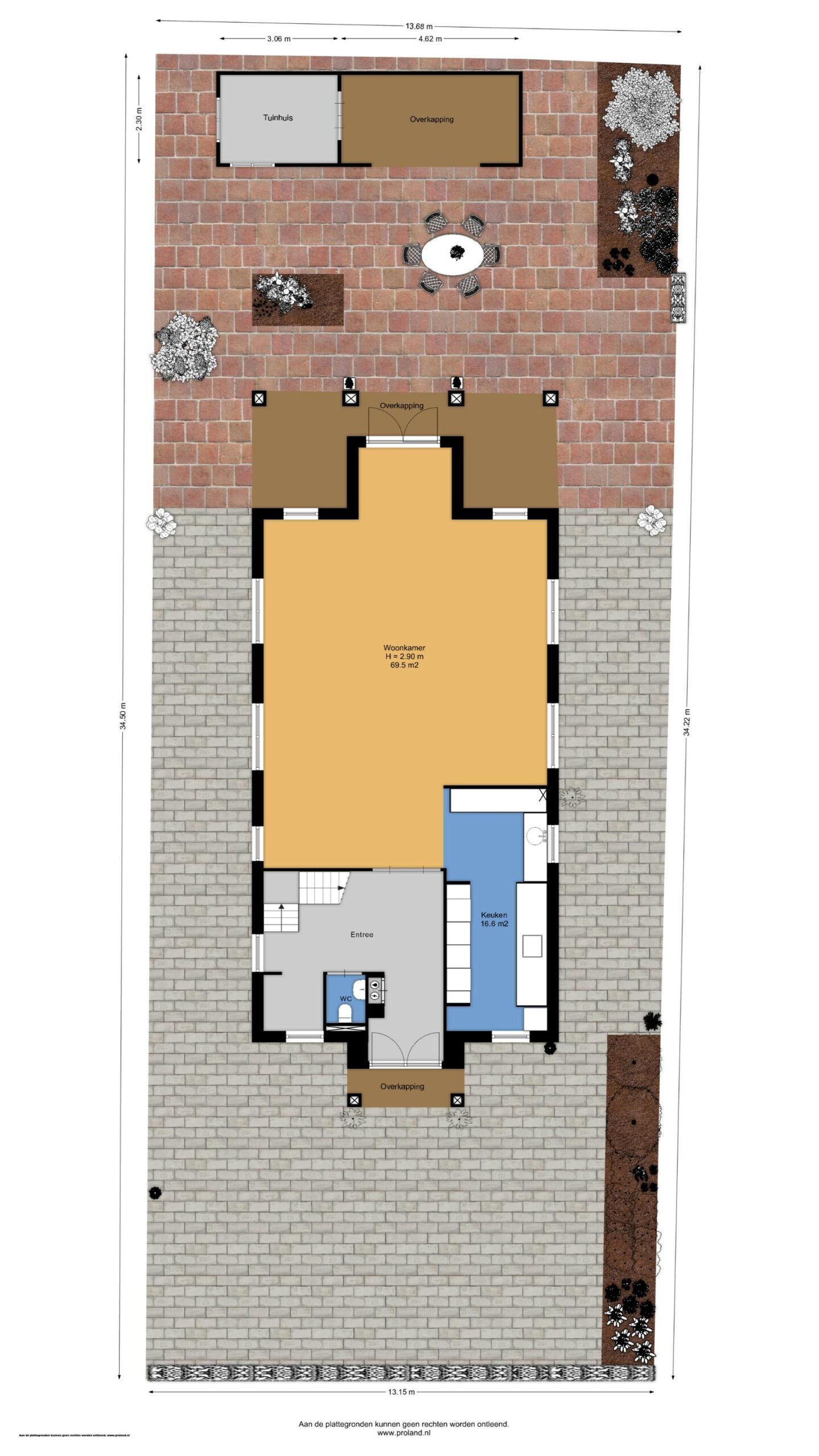 - Via de voortuin en het privéparkeerterrein bereikt u de entree van de woning;