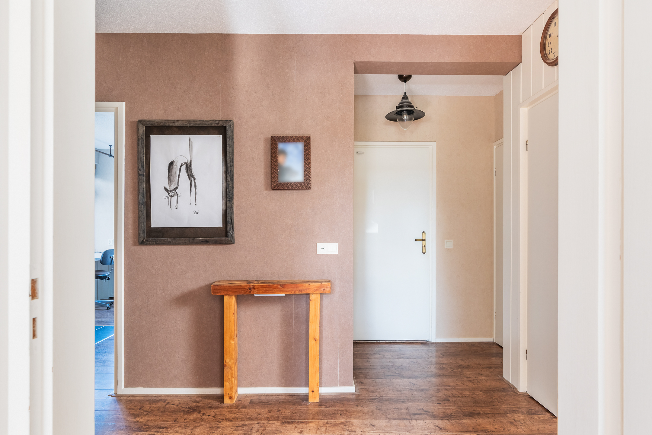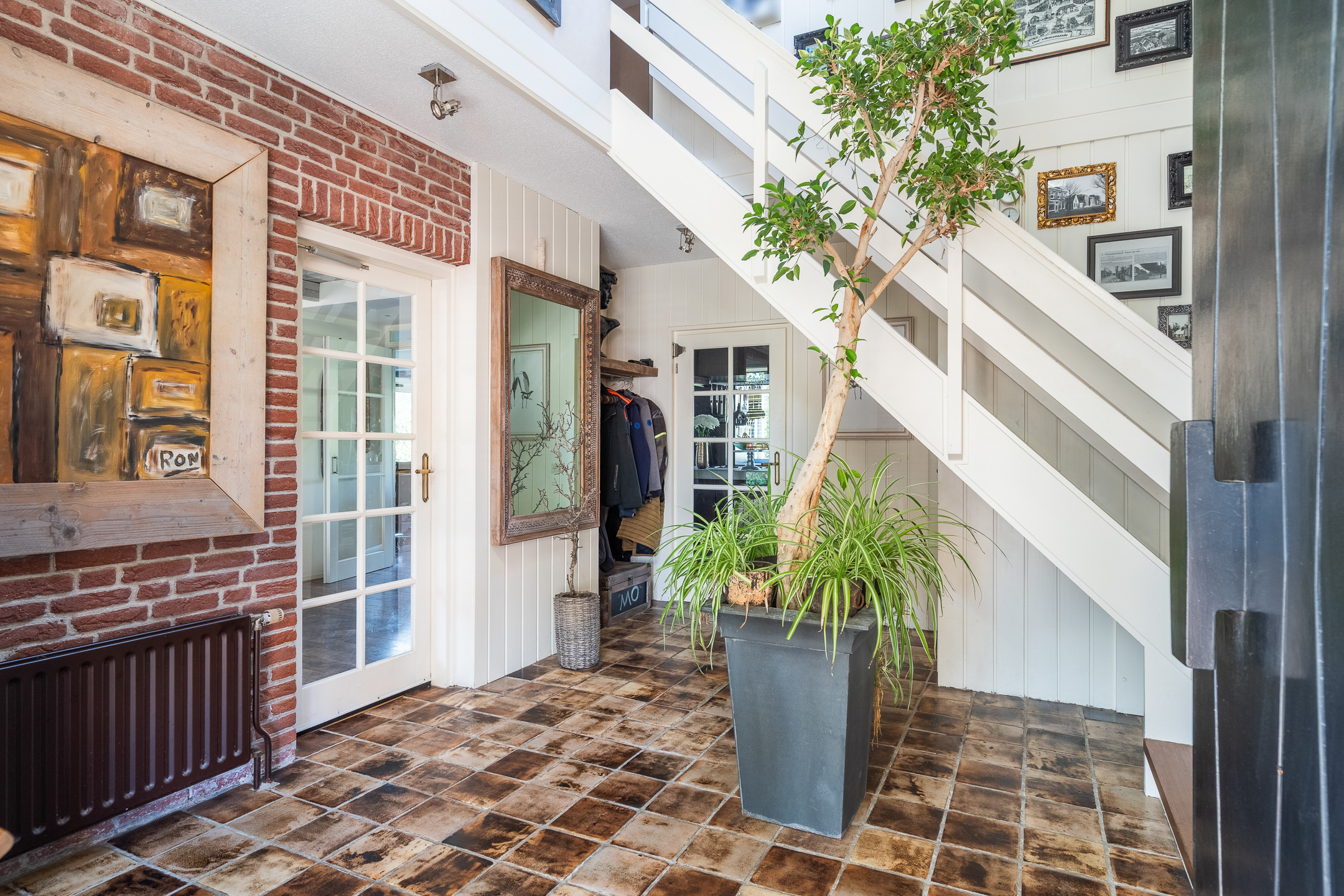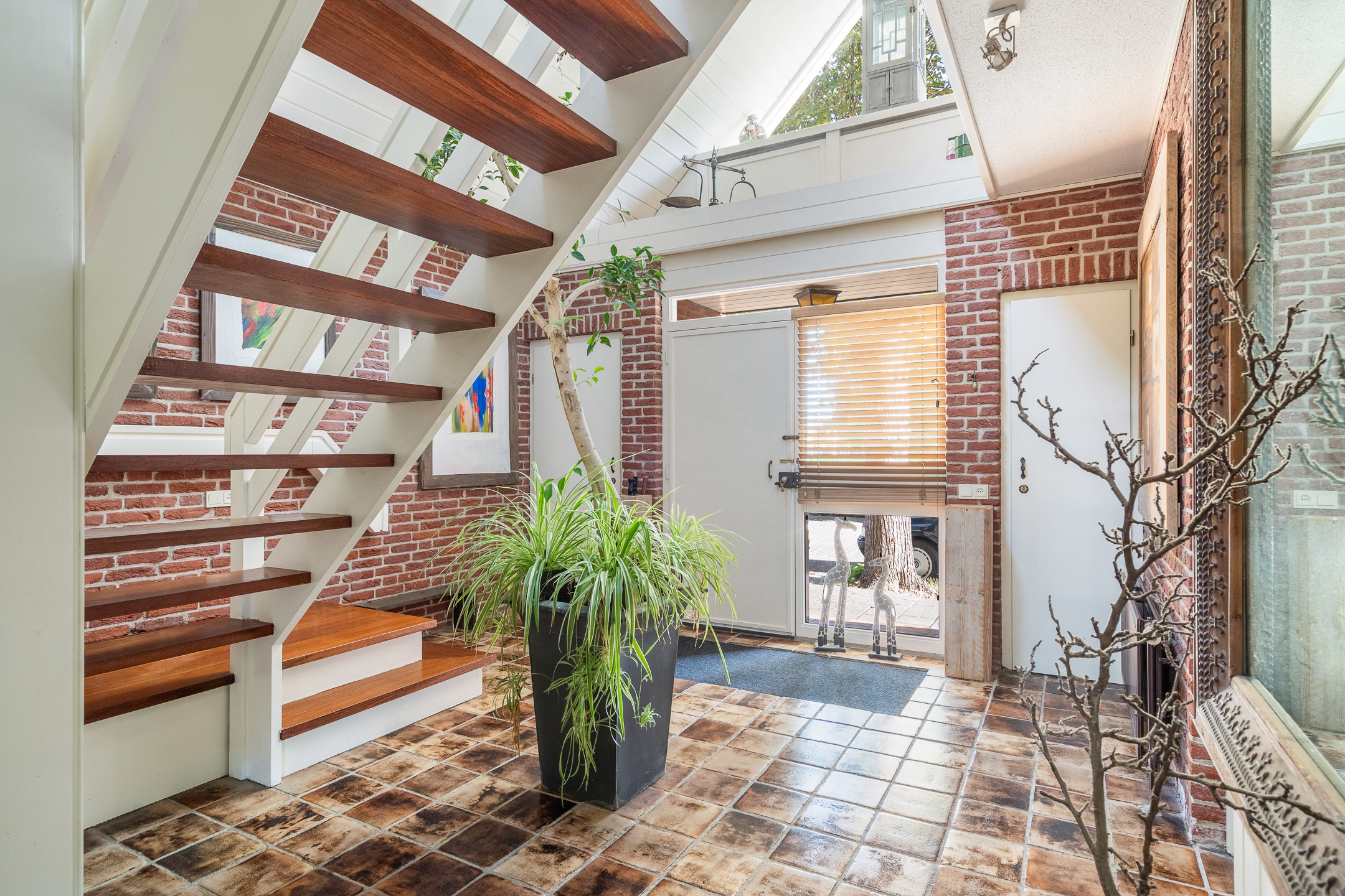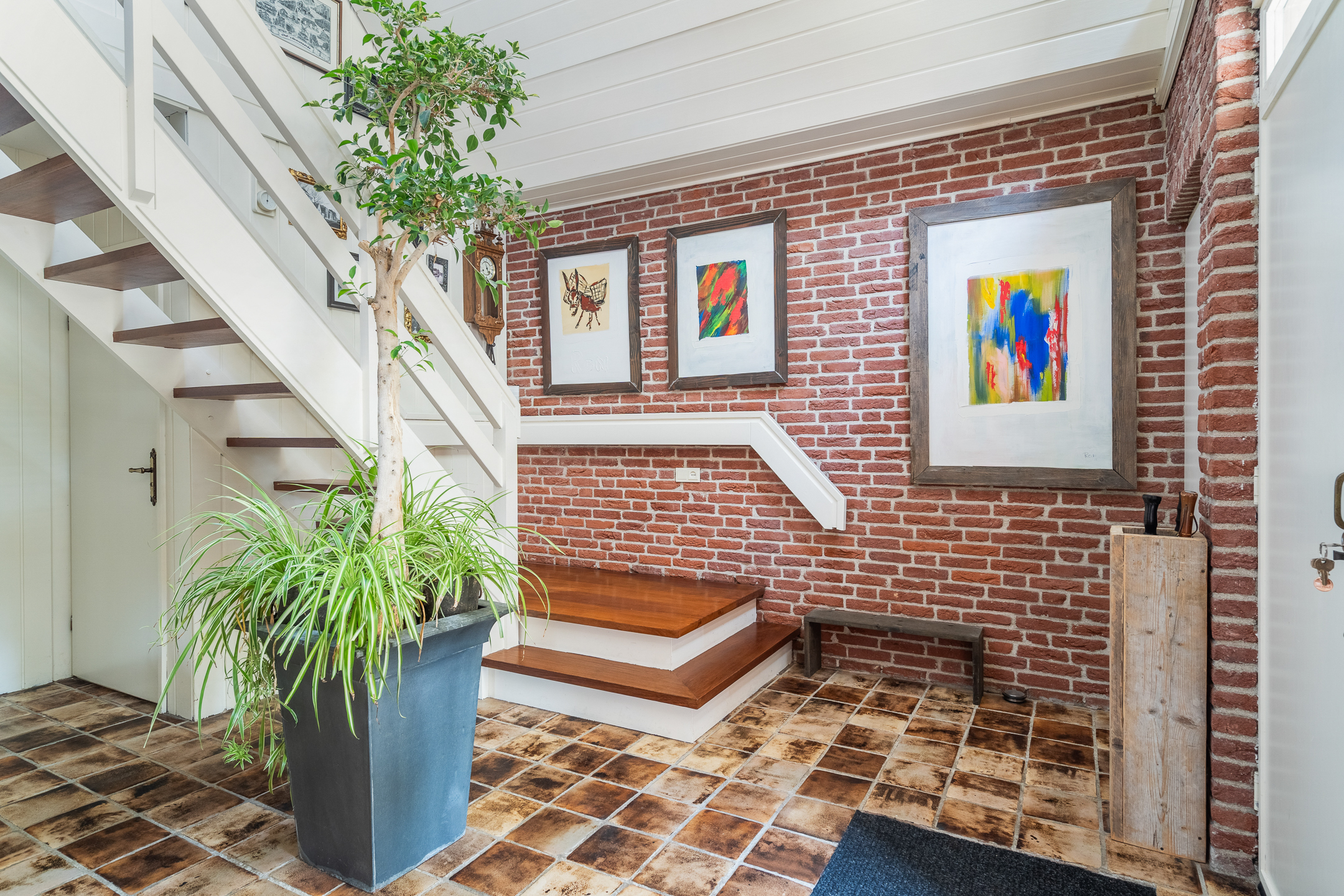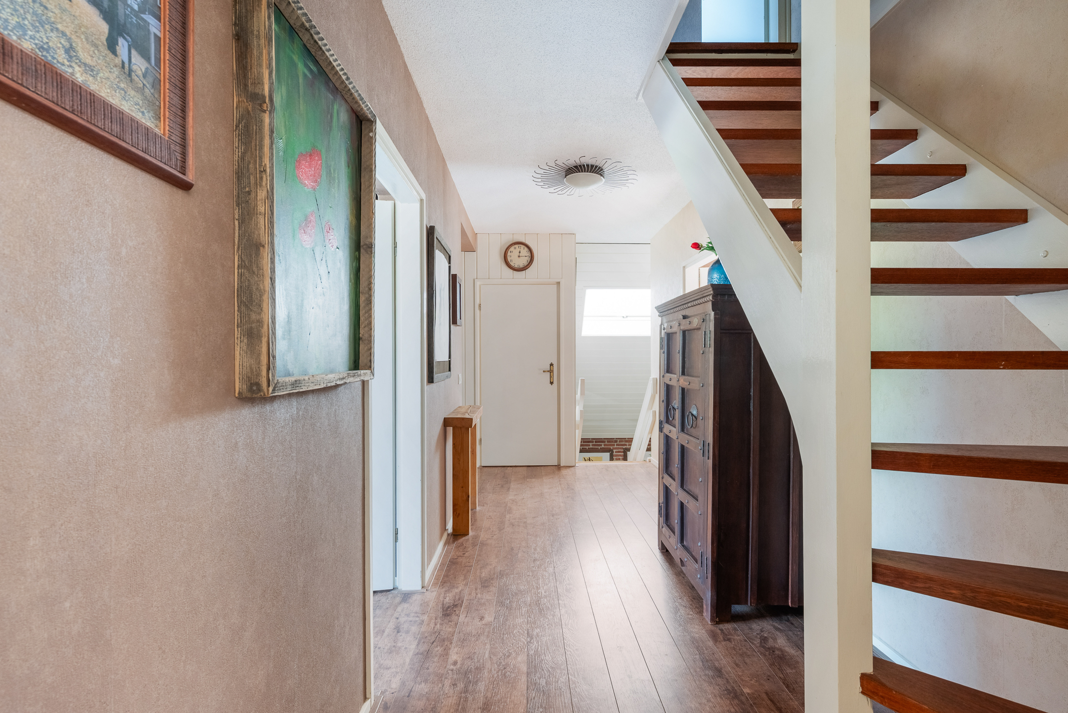 - Entree met royale hal, meterkast, vaste kast, moderne toiletruimte op trapopgang naar de 1e etage.