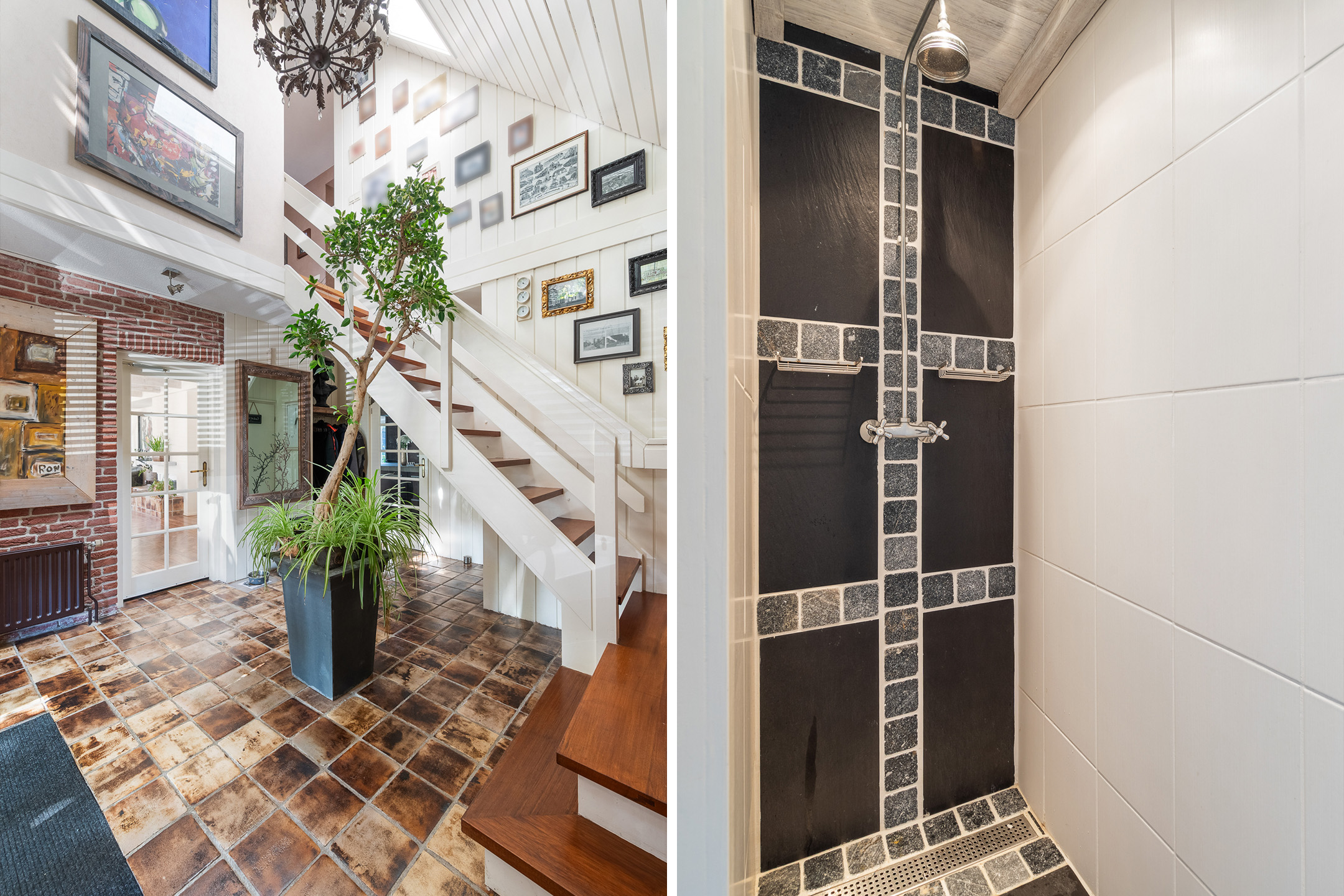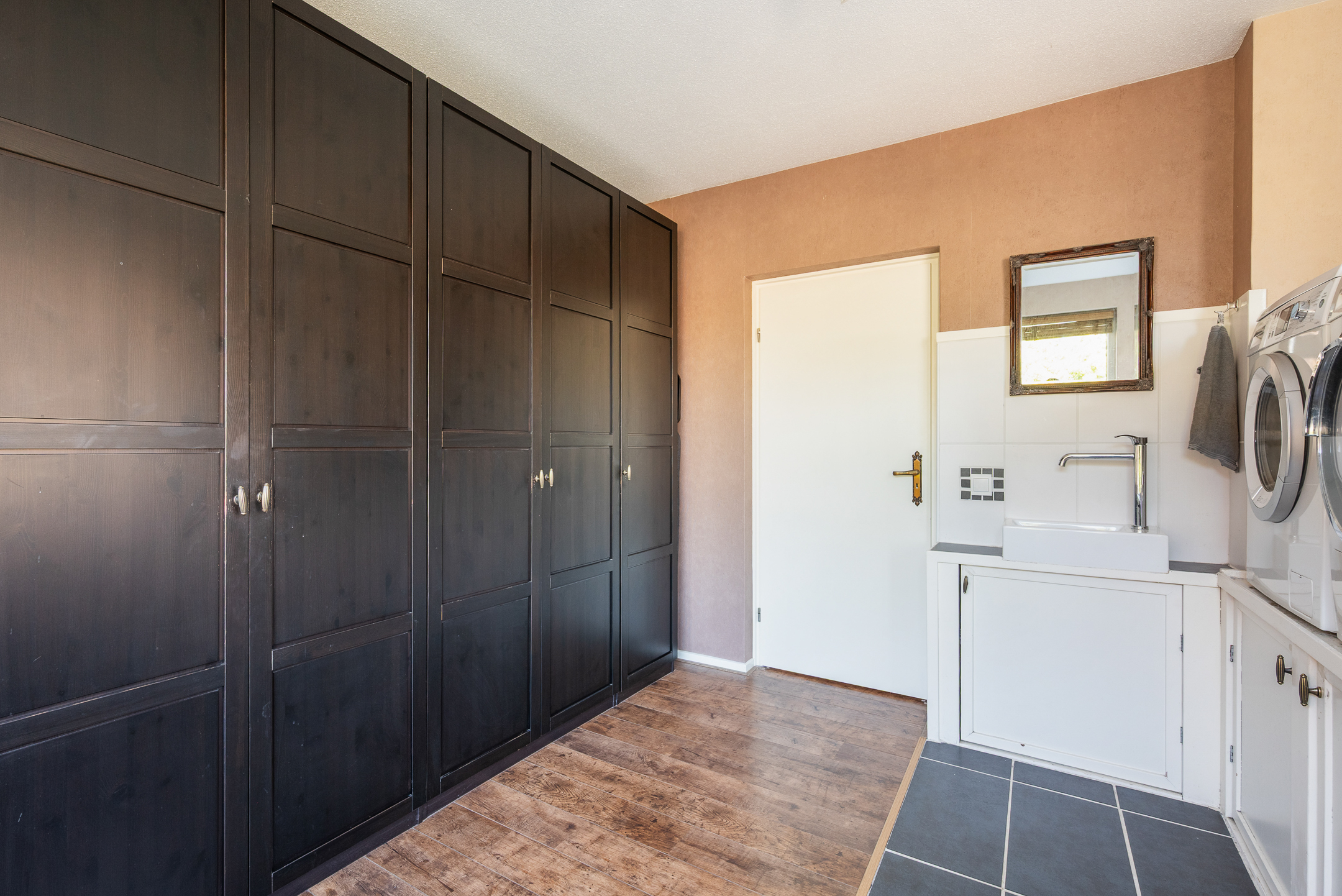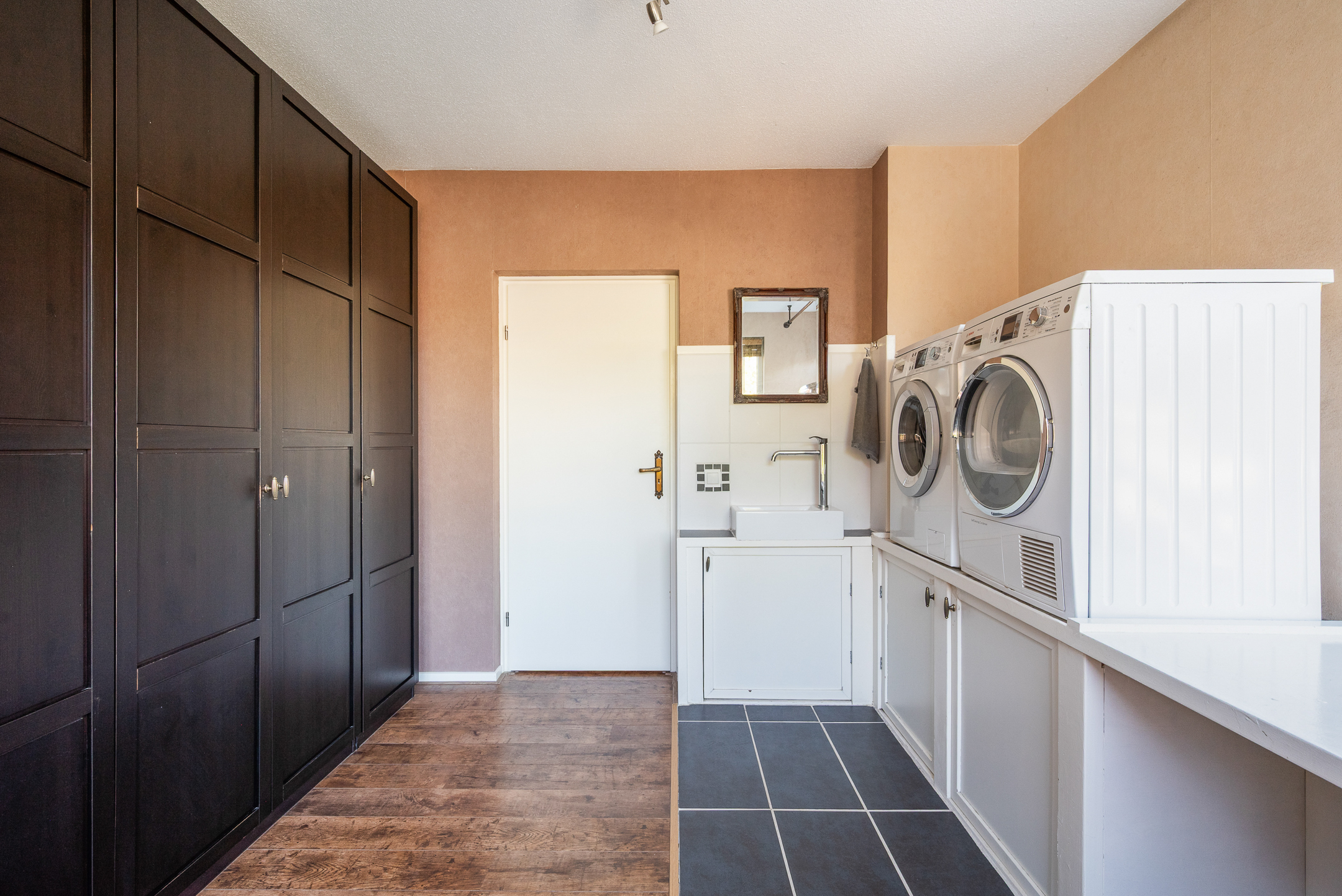 - Praktische bijkeuken met voorraadkast, douche en deur naar de tuin.
