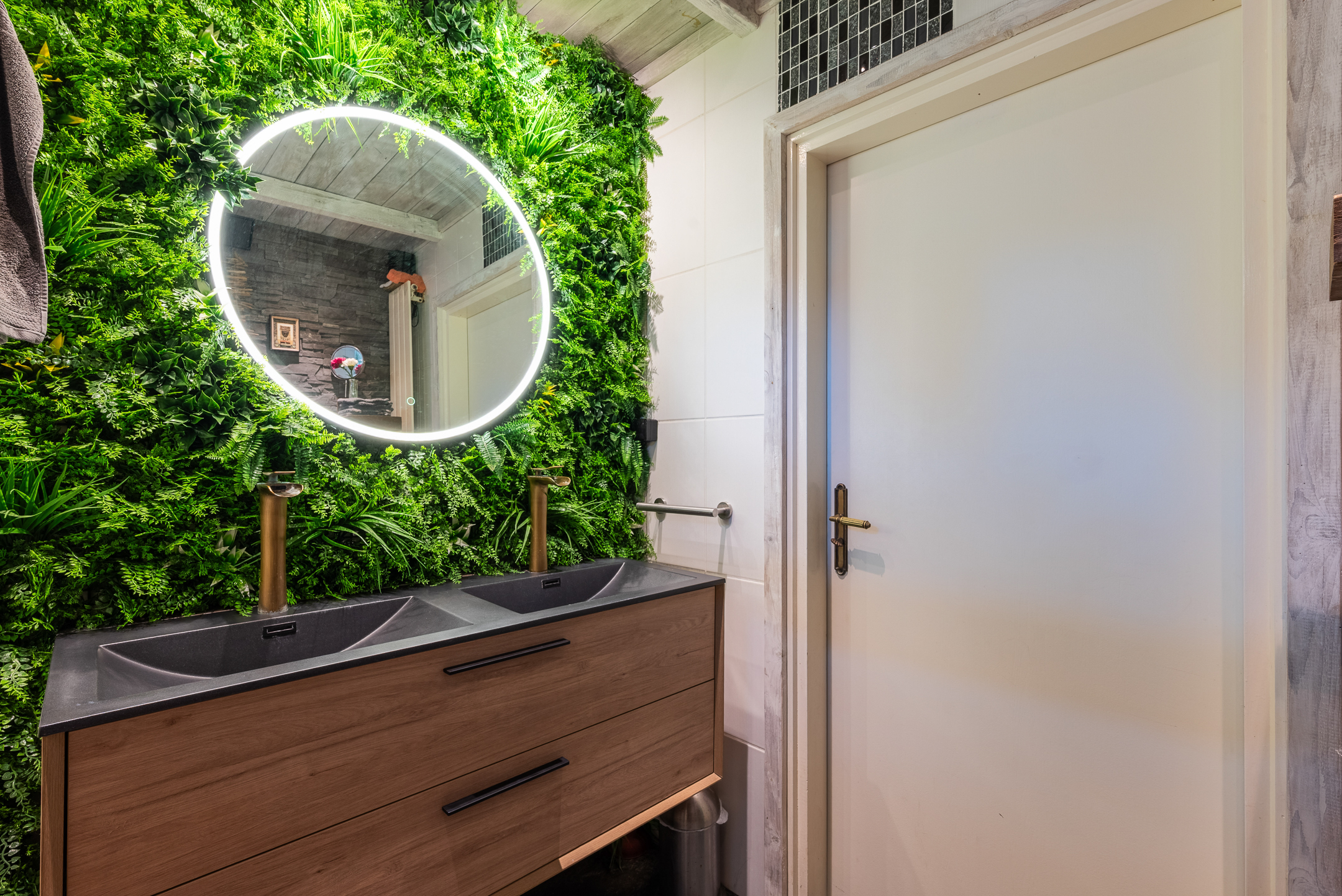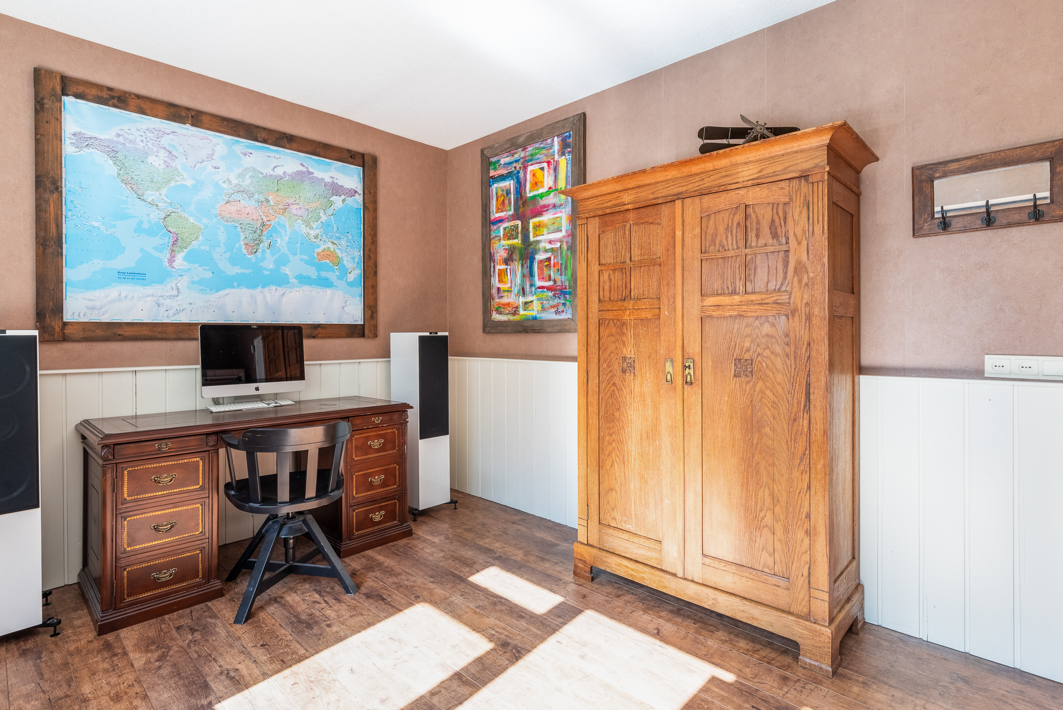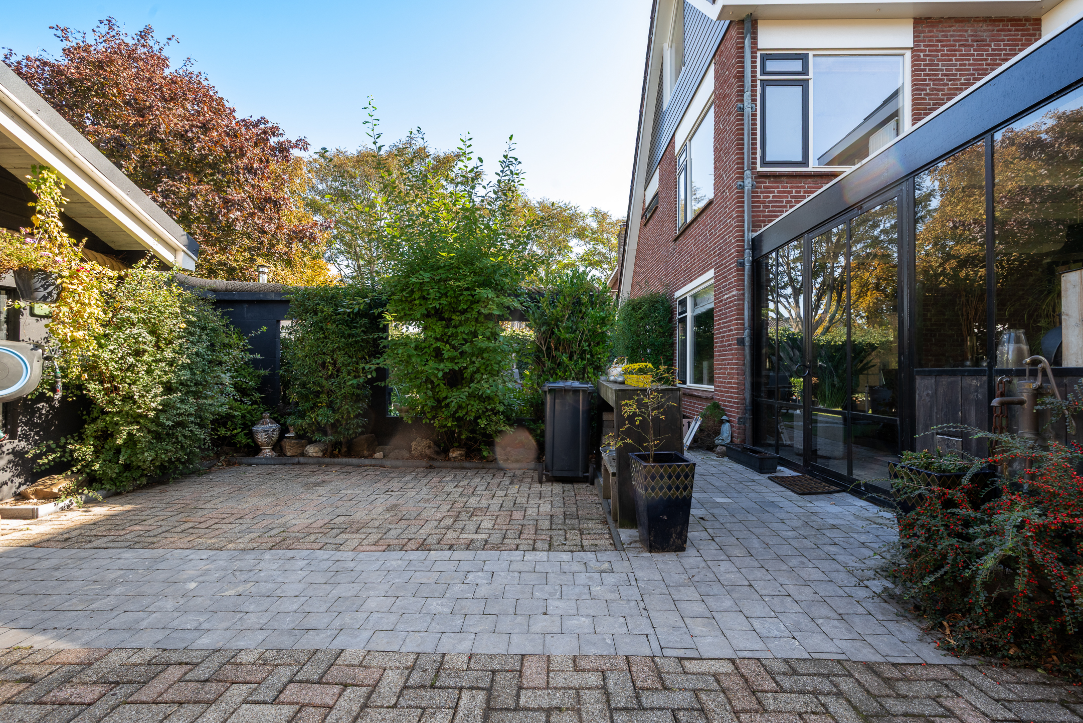 - Praktische bijkeuken met voorraadkast, douche en deur naar de tuin.