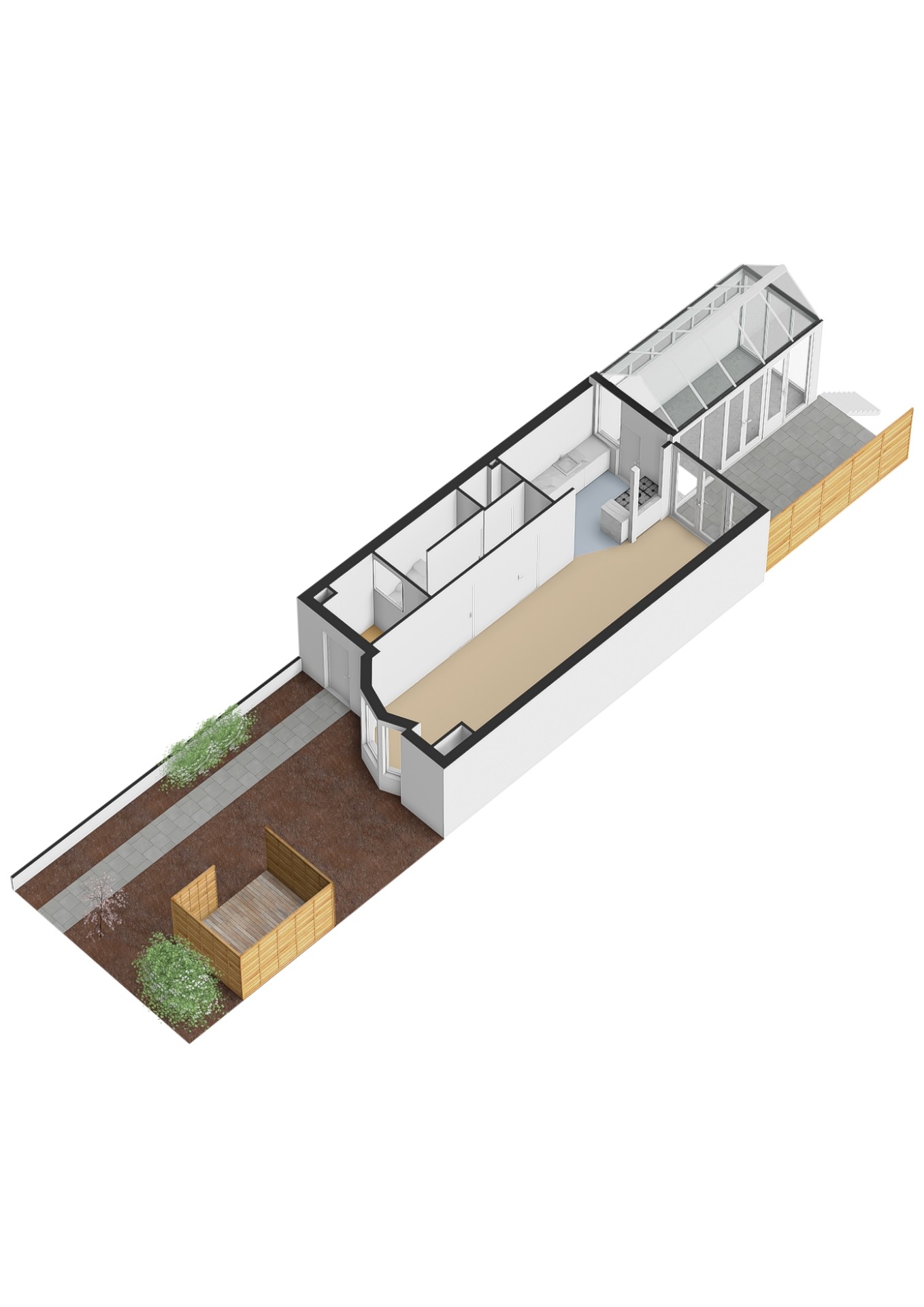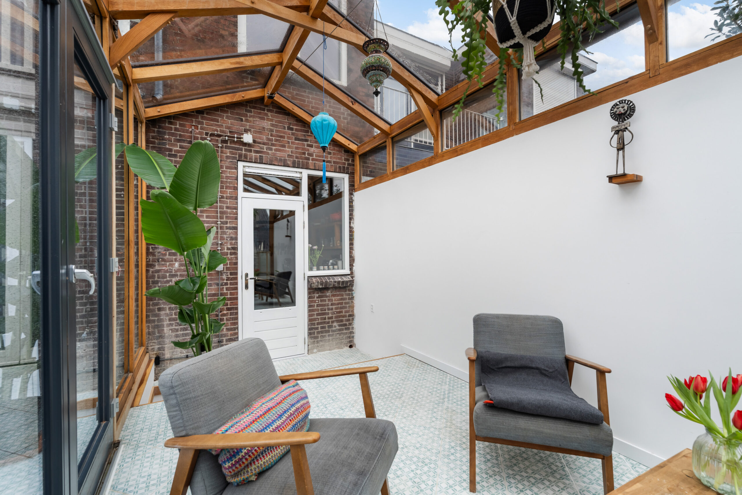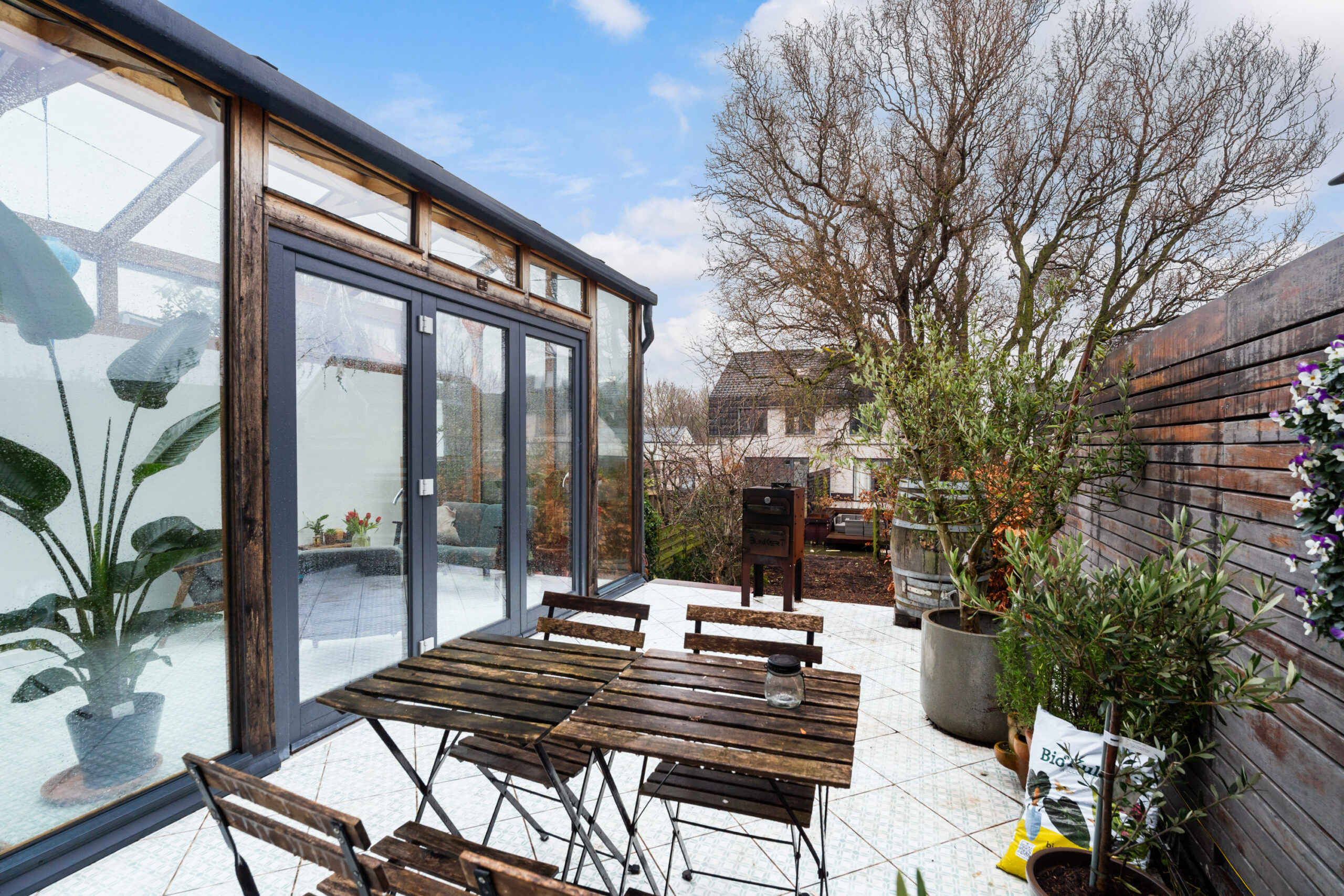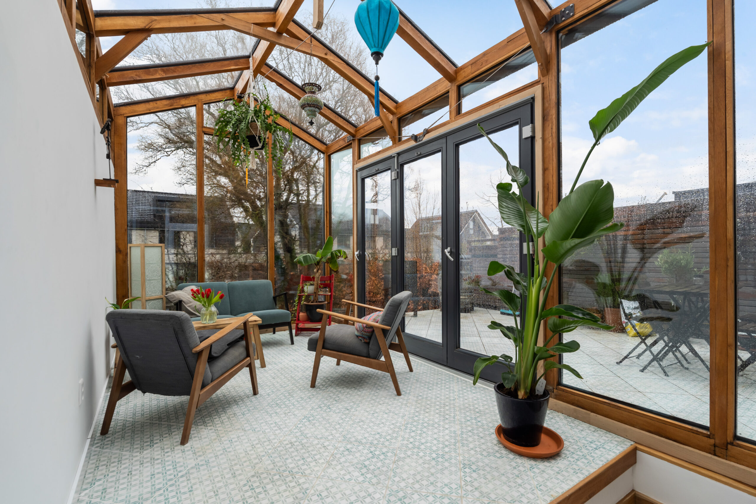 – Luxe serre (2023), qua vorm een knipoog naar de Westlandse kassen, uitgevoerd met eiken delen, harmonicadeuren met een vrije opening van ruim 2 meter en vloertegels. Een lichte en aangename ruimte om het hele jaar door te gebruiken. Trap naar het souterrain