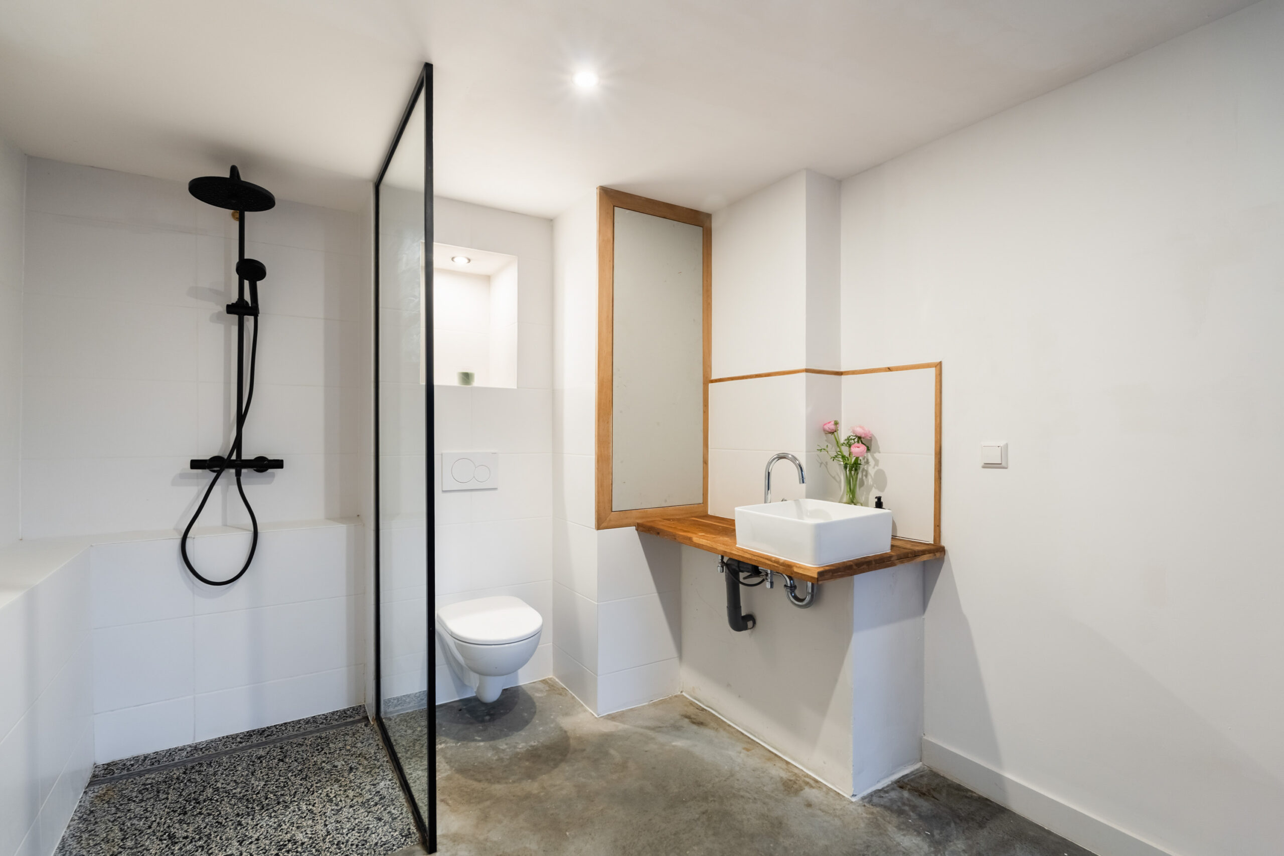 - Badkamervoorzieningen Toilet, douche, wastafel, toilet, douche, wastafel, wasmachineaansluiting