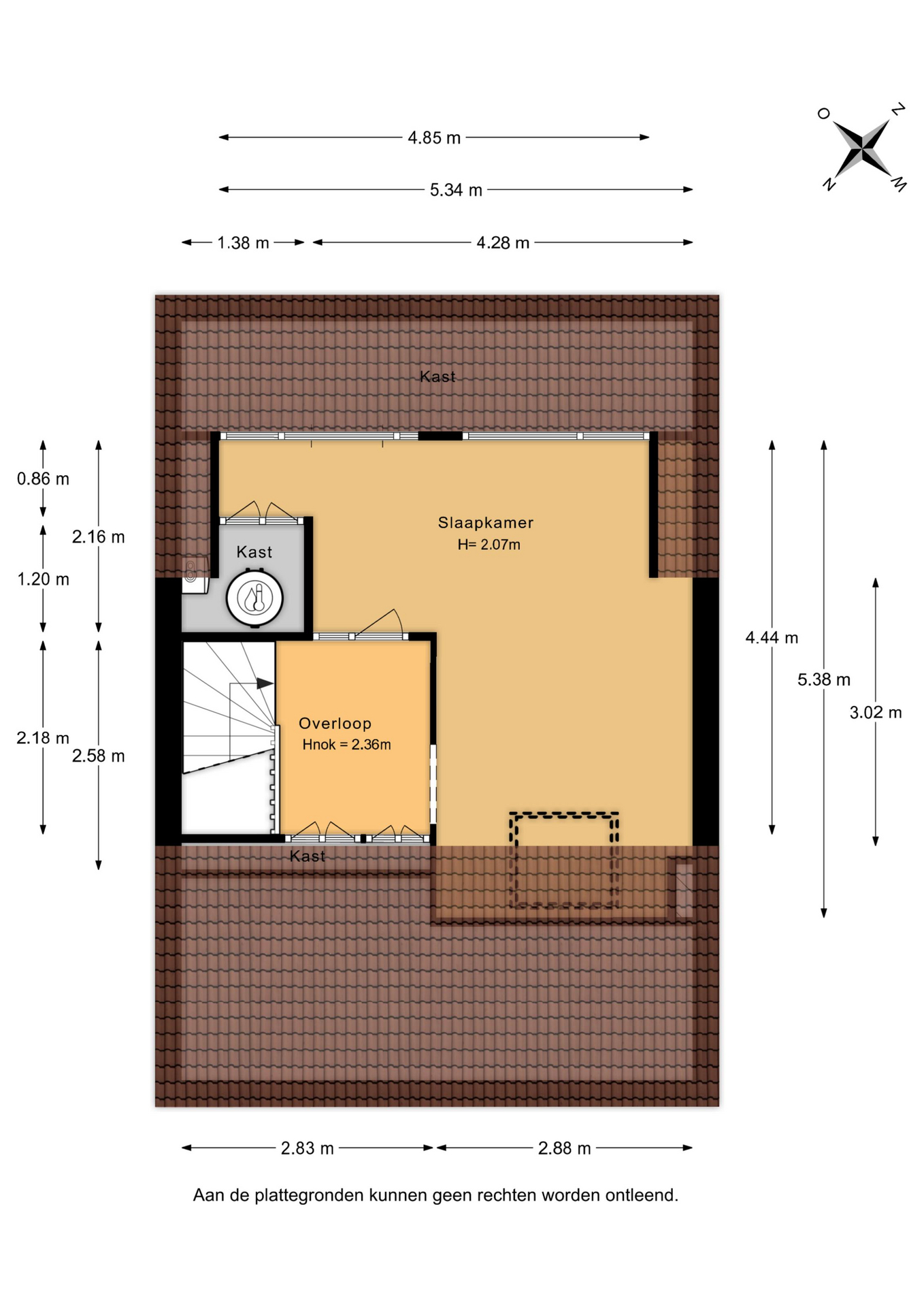 – Ruime kapverdieping met grote zolderkamer, dakkapel, inbouwkasten en een kantel-kiepraam aan de voorzijde