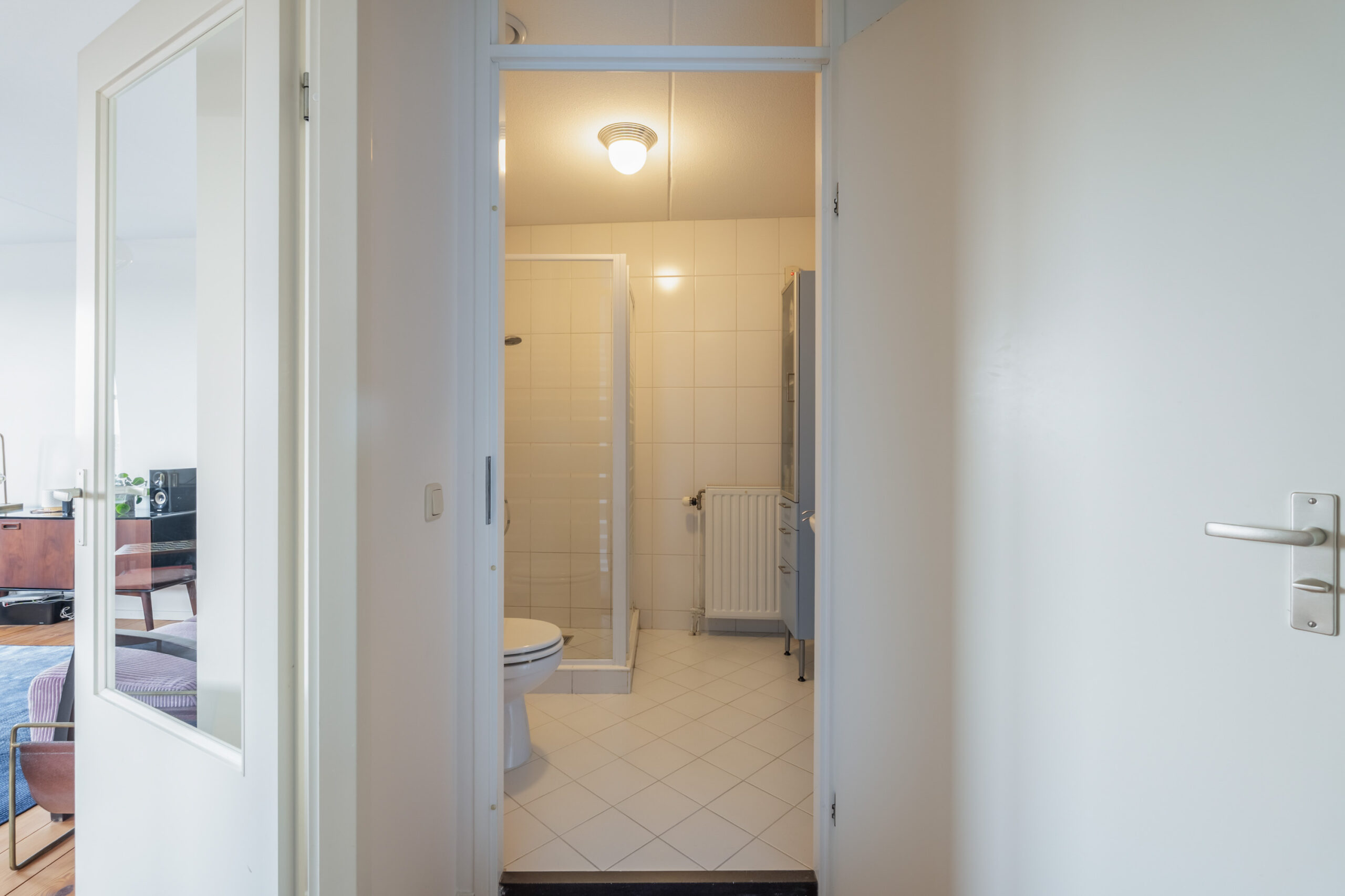 -Vanuit de hal heeft u toegang tot de slaapkamer en de badkamer.