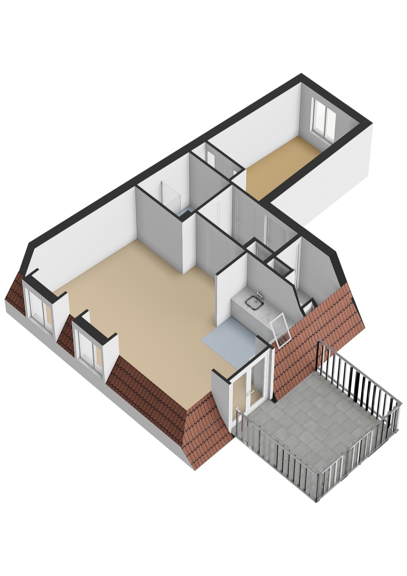 -Het dakterras is ca. 12 m2 groot en gelegen op het zuiden, waardoor u hier de hele dag van de zon kunt genieten.
