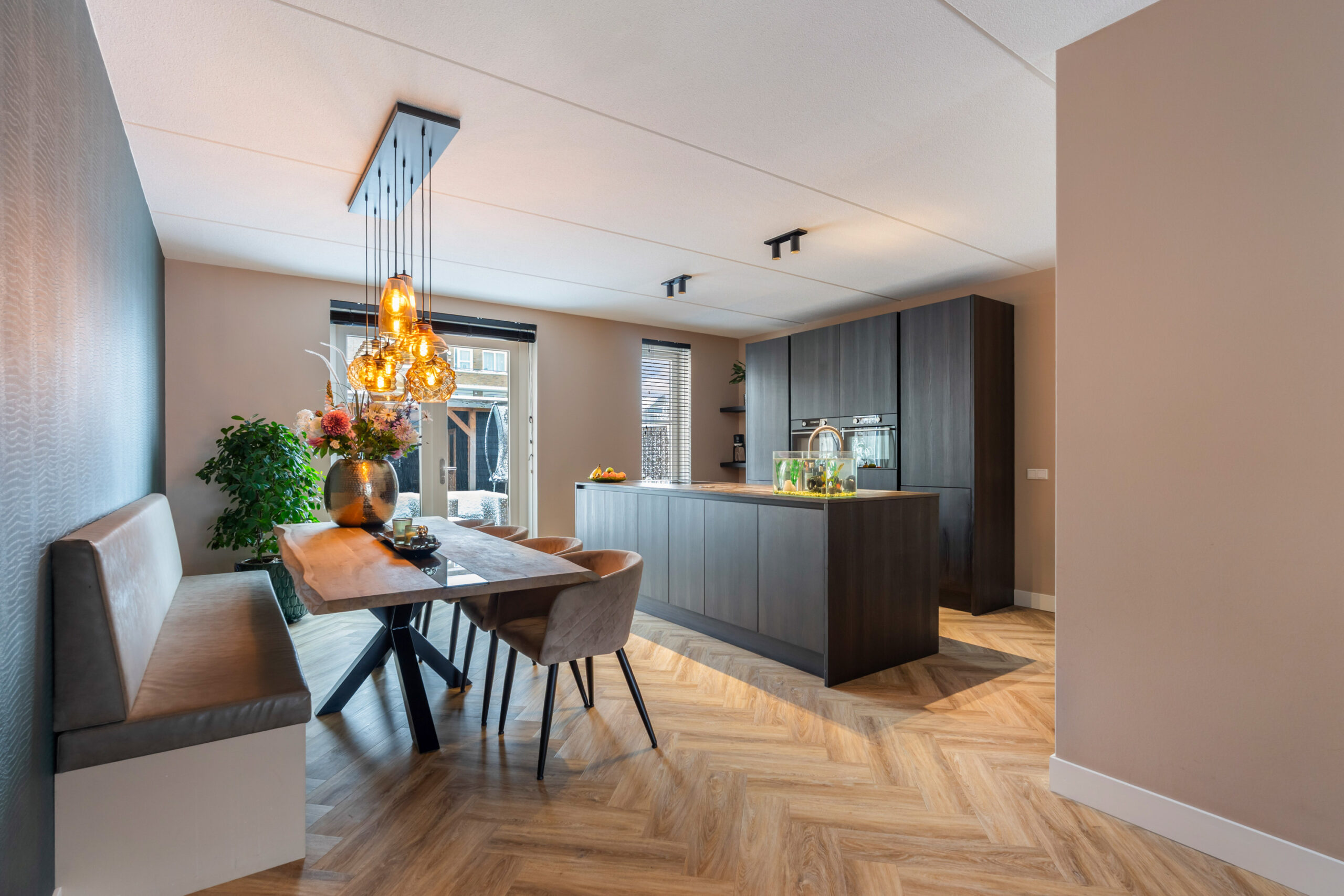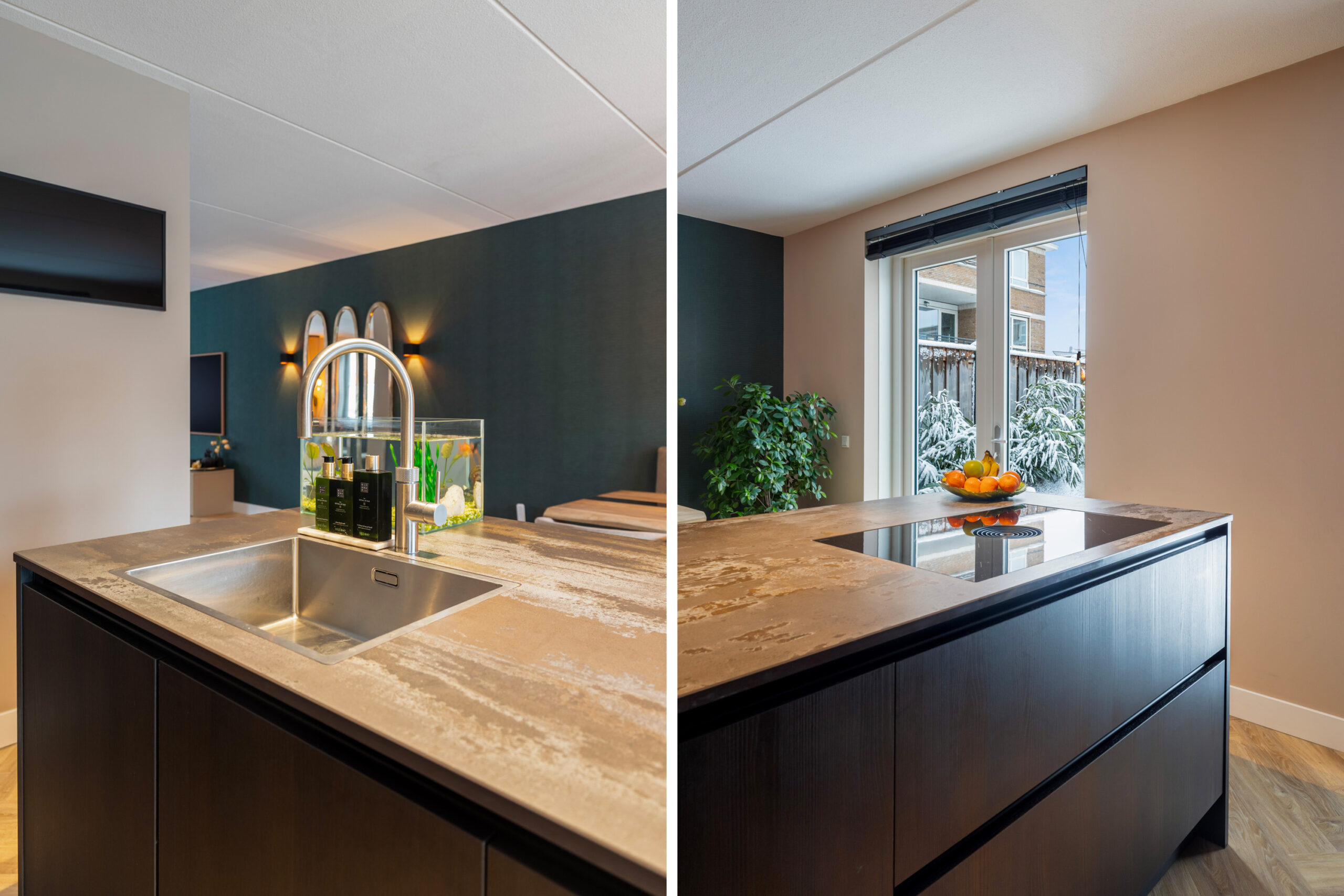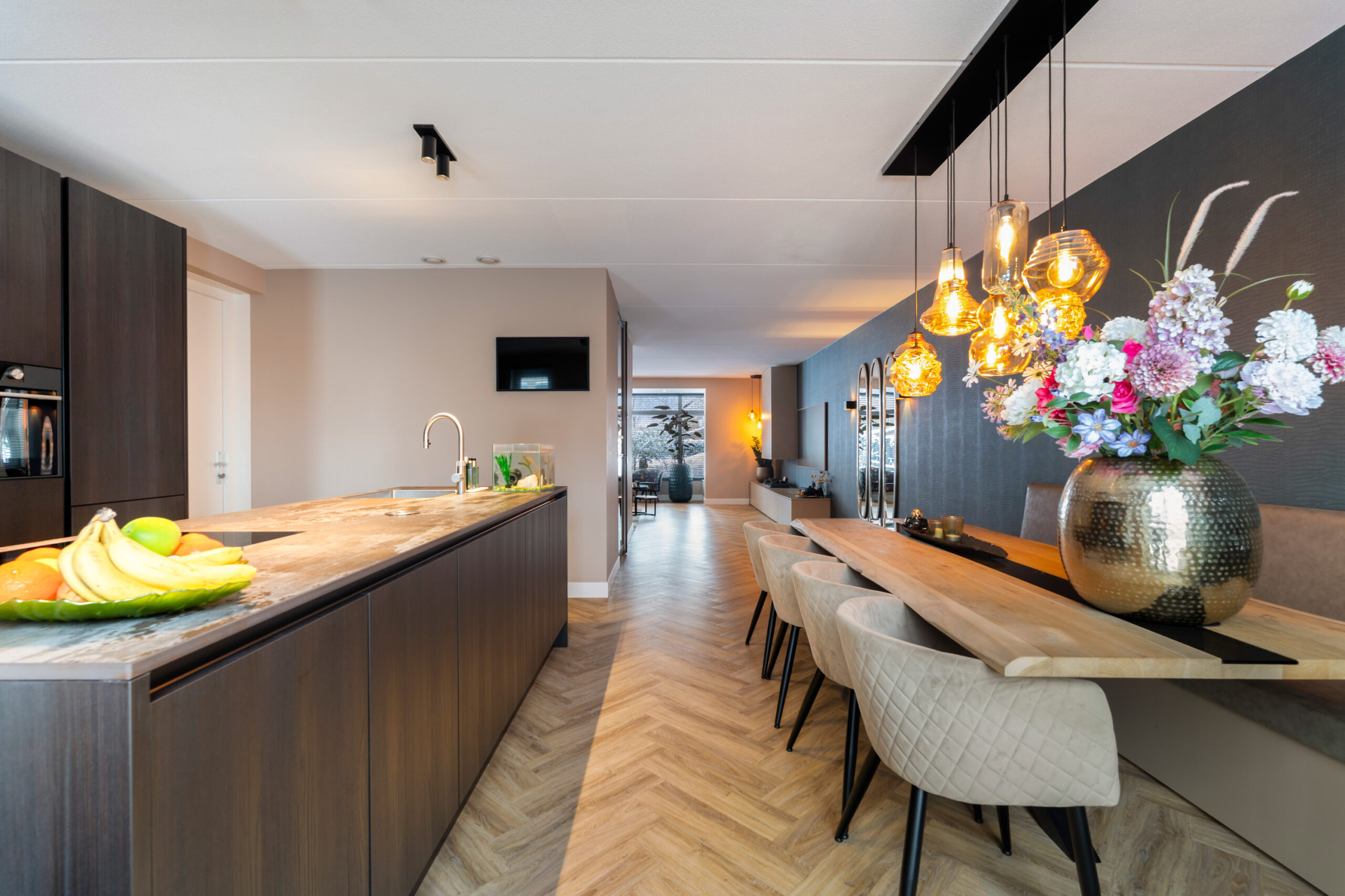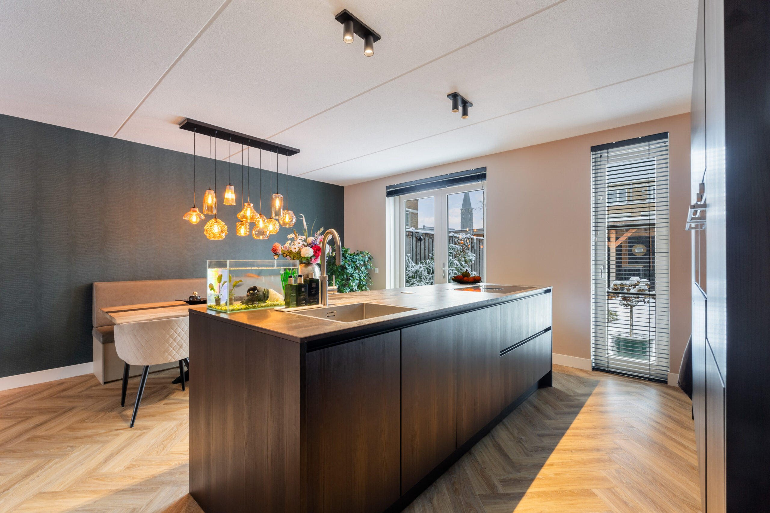 - De luxe woonkeuken vormt het hart van de woning en is een heerlijke plek om samen te komen. Het kook- en spoeleiland is voorzien van diverse hoogwaardige inbouwapparatuur en nodigt uit tot uitgebreid koken en gezellig samenzijn. Dankzij de openslaande deuren staat de keuken in directe verbinding met de zonnige achtertuin, waardoor binnen en buiten moeiteloos in elkaar overlopen. Daarnaast biedt de directe toegang tot de garage extra gemak.