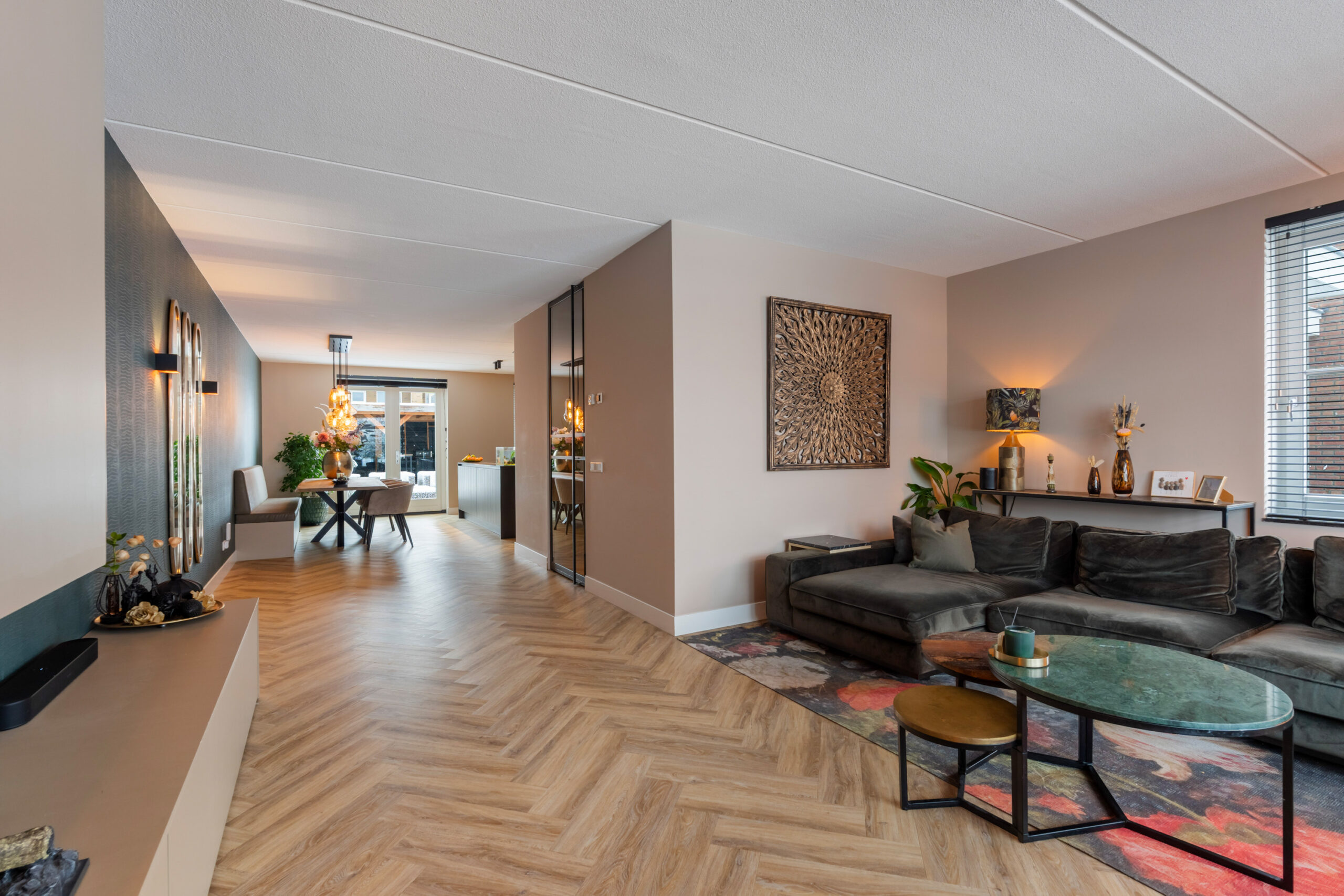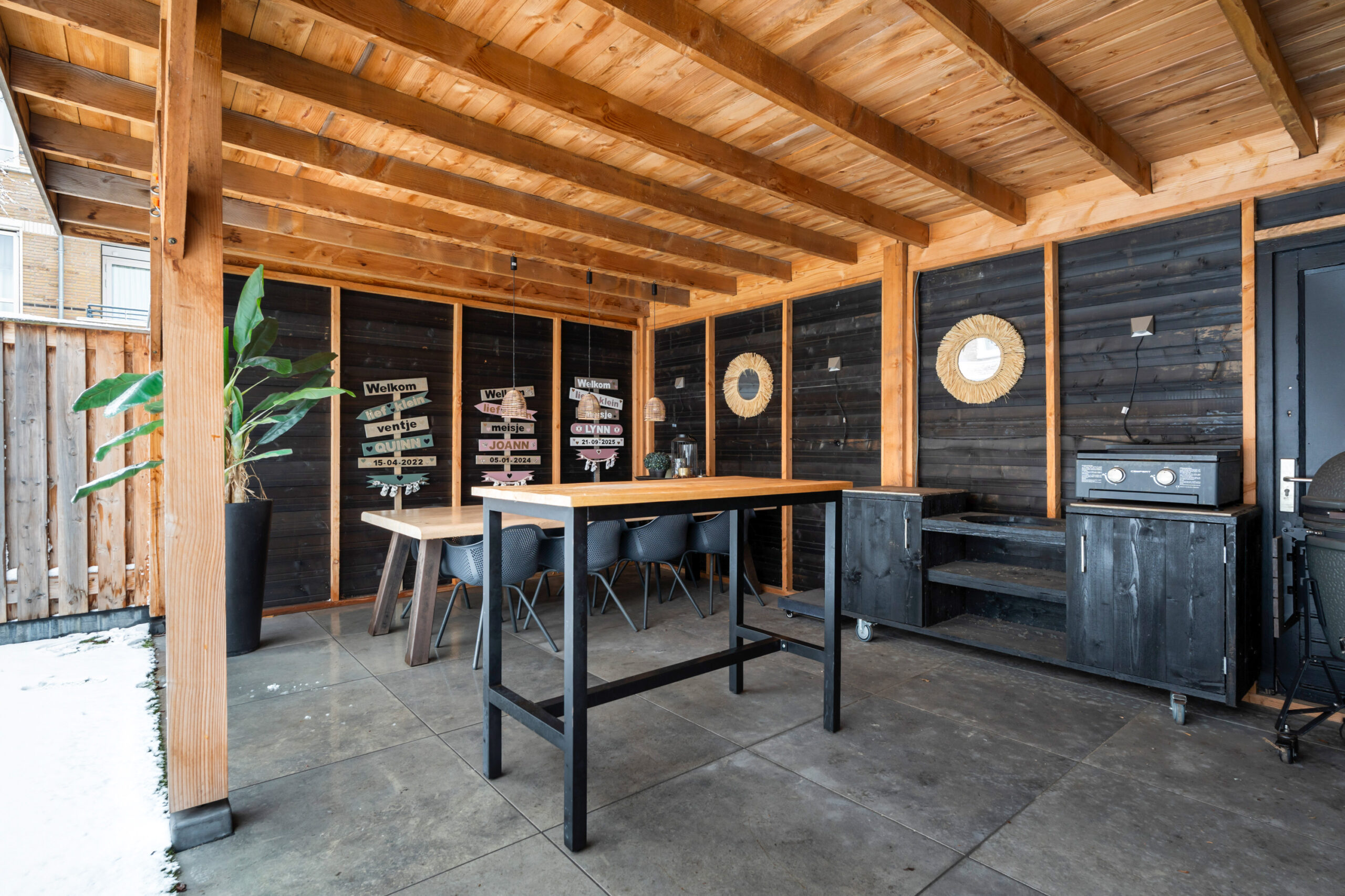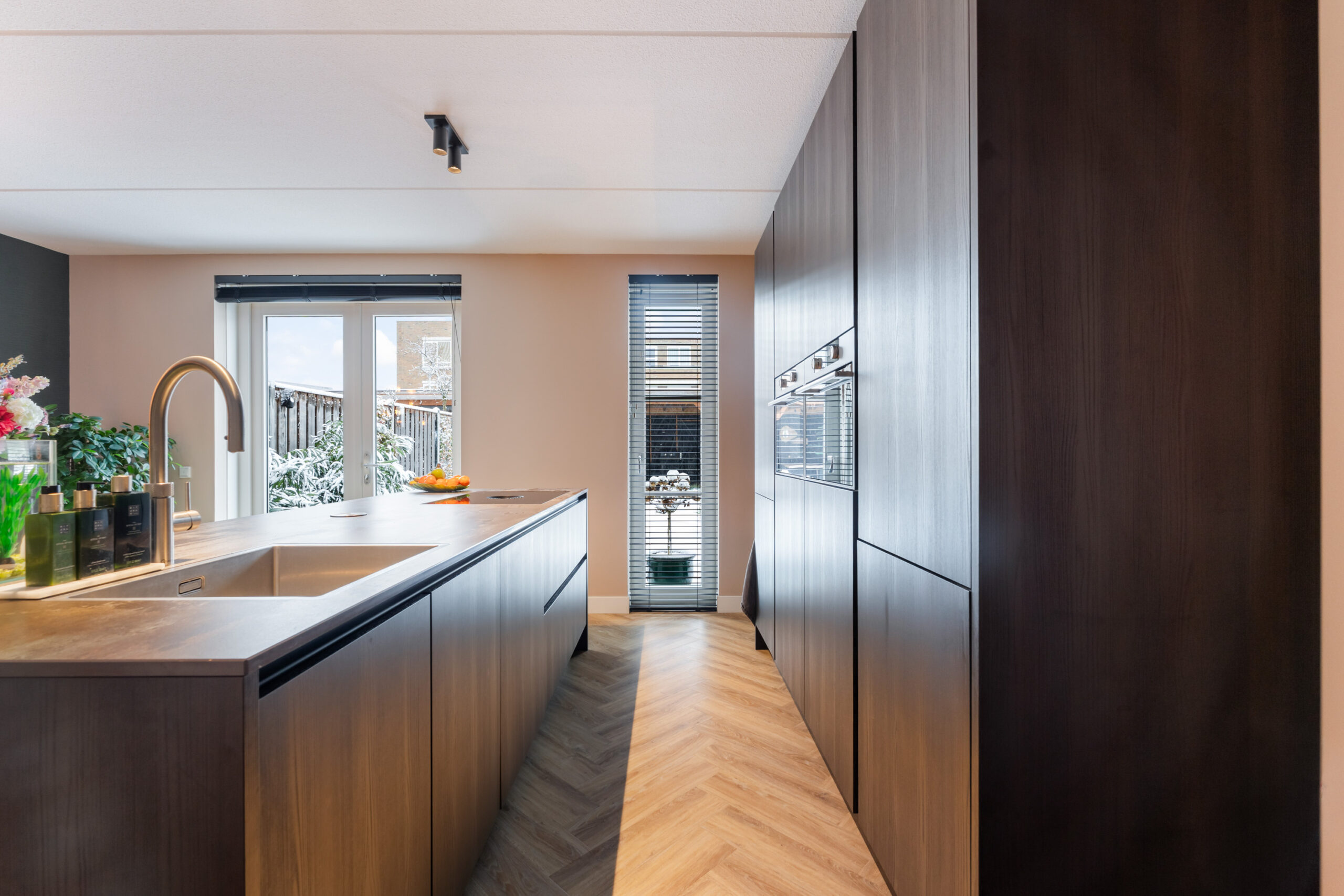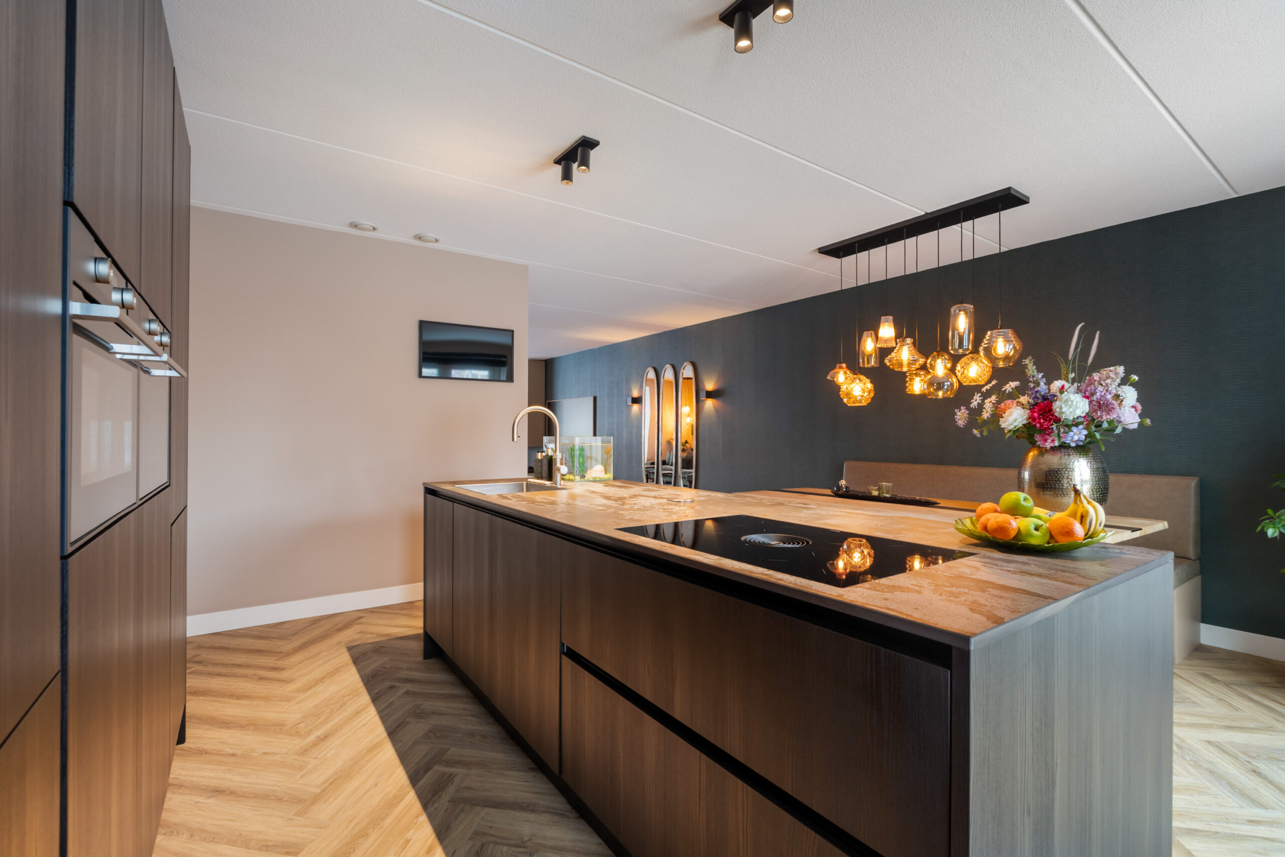 - De luxe woonkeuken vormt het hart van de woning en is een heerlijke plek om samen te komen. Het kook- en spoeleiland is voorzien van diverse hoogwaardige inbouwapparatuur en nodigt uit tot uitgebreid koken en gezellig samenzijn. Dankzij de openslaande deuren staat de keuken in directe verbinding met de zonnige achtertuin, waardoor binnen en buiten moeiteloos in elkaar overlopen. Daarnaast biedt de directe toegang tot de garage extra gemak.
