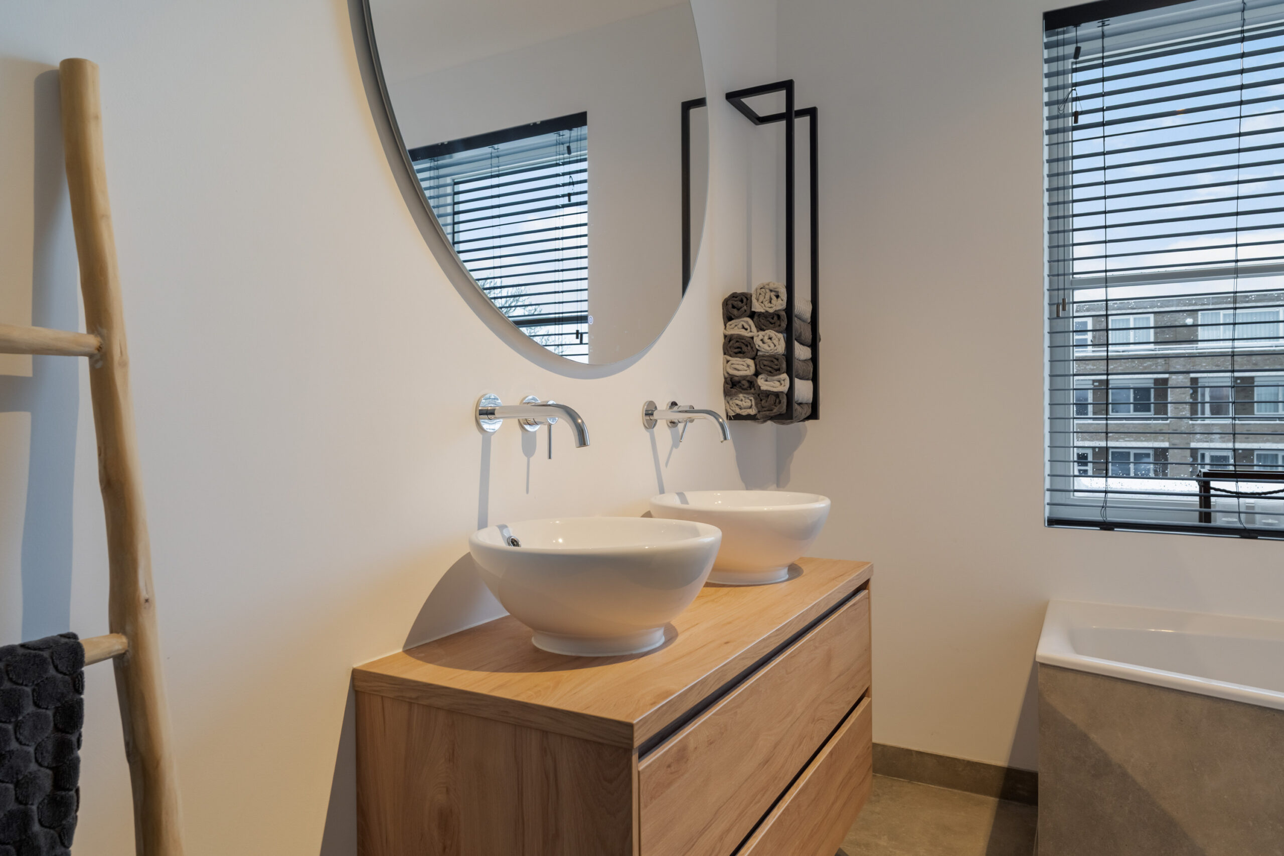 - Badkamervoorzieningen Ligbad, wastafelmeubel, inloopdouche, vloerverwarming