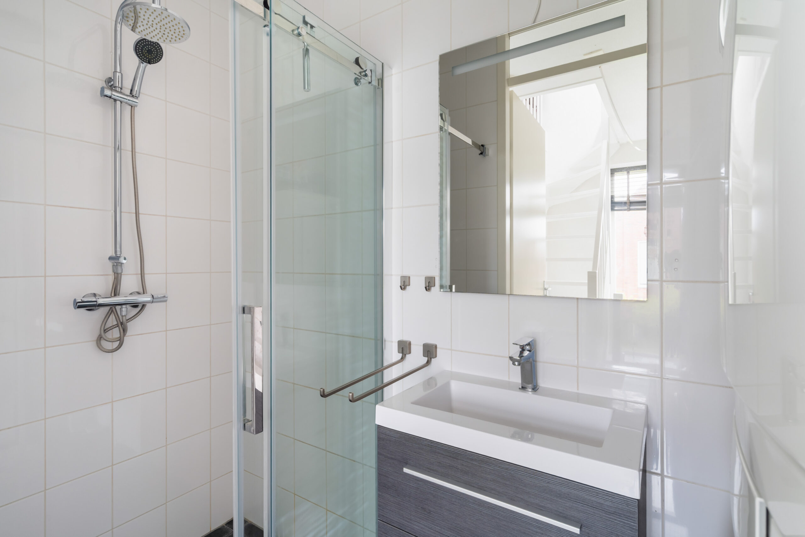 - Geheel betegelde badkamer voorzien van inloopdouche, wastafelmeubel en opstelplaats wasmachine en droger;