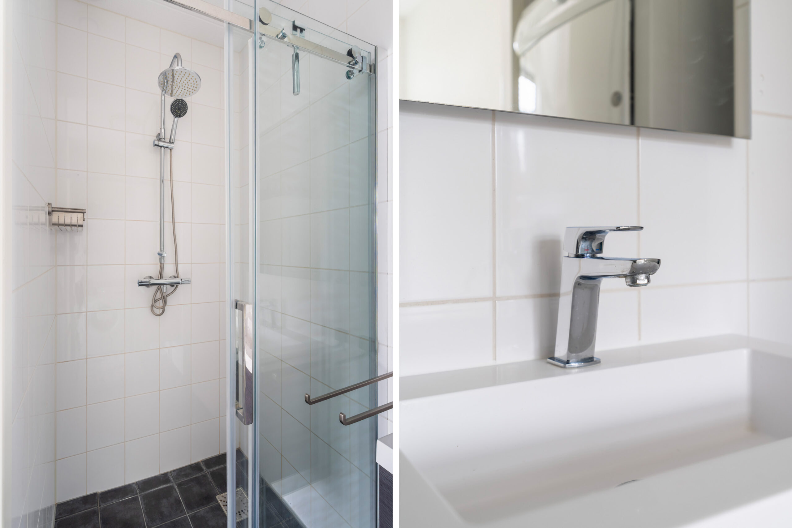 - Badkamervoorzieningen Douche, wastafelmeubel, wasmachineaansluiting