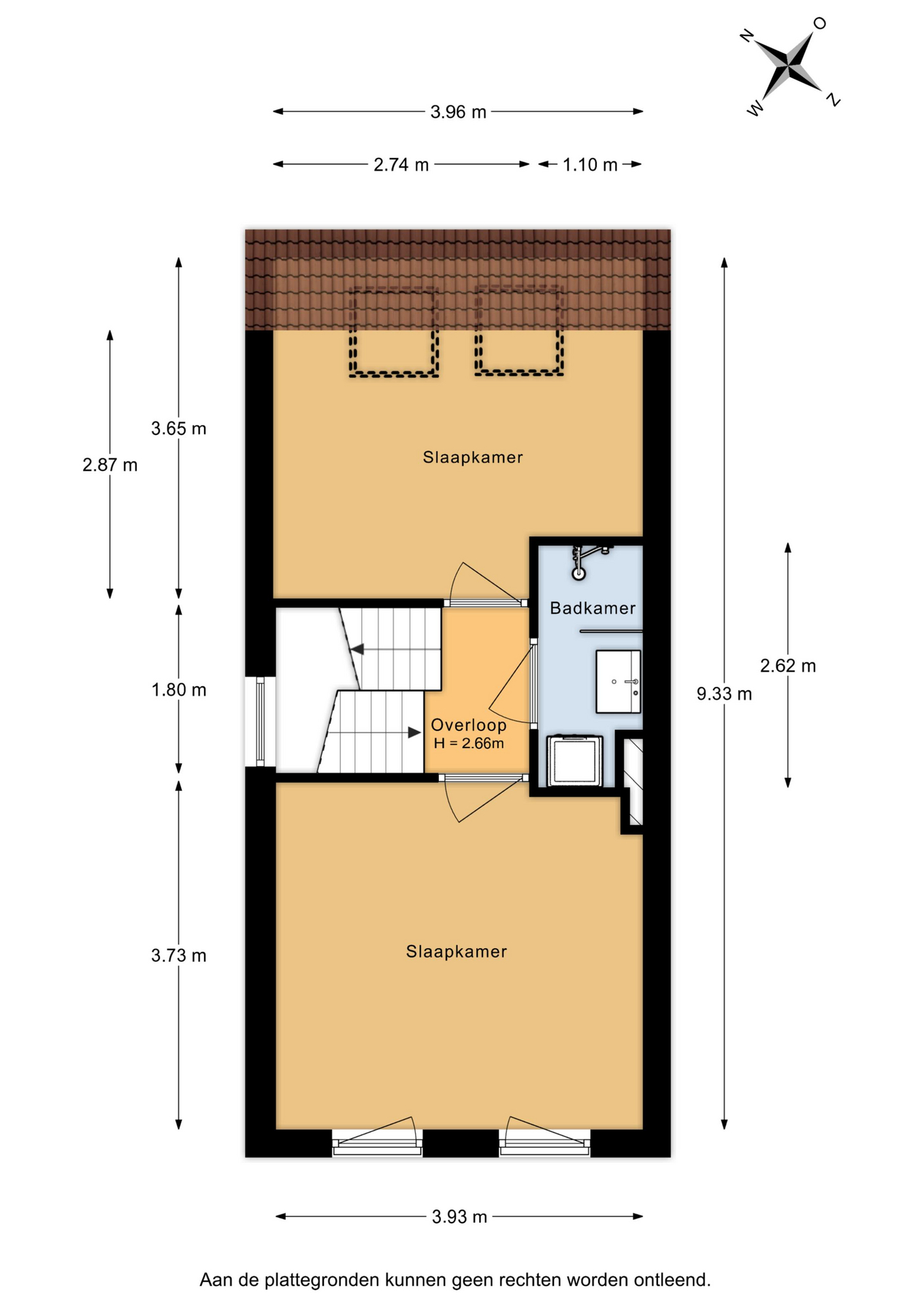 - Slaapkamer aan de achterzijde (ca. 3,95 m x 3,71/3,05 m);