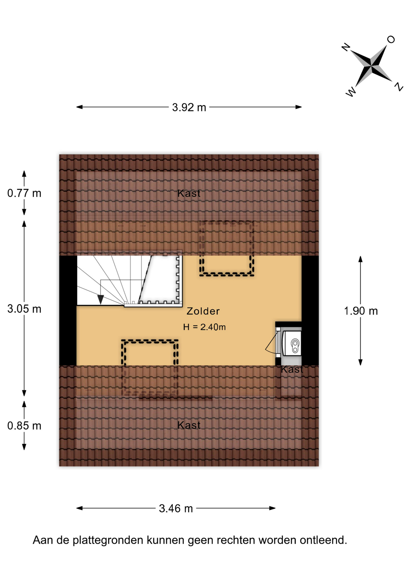 - Ruime zolder/kamer met twee dakramen, veel bergruimte, opstelplaats CV-ketel.